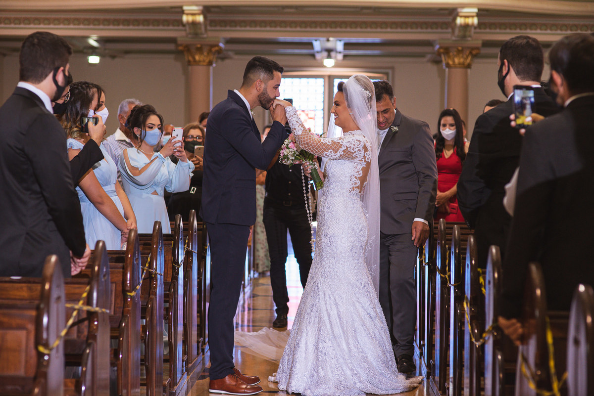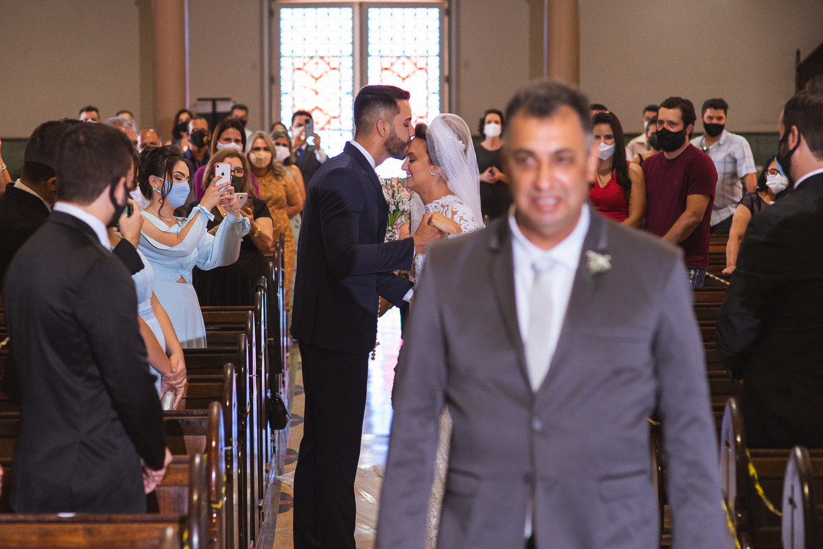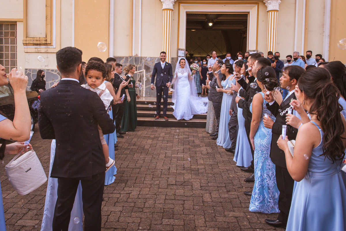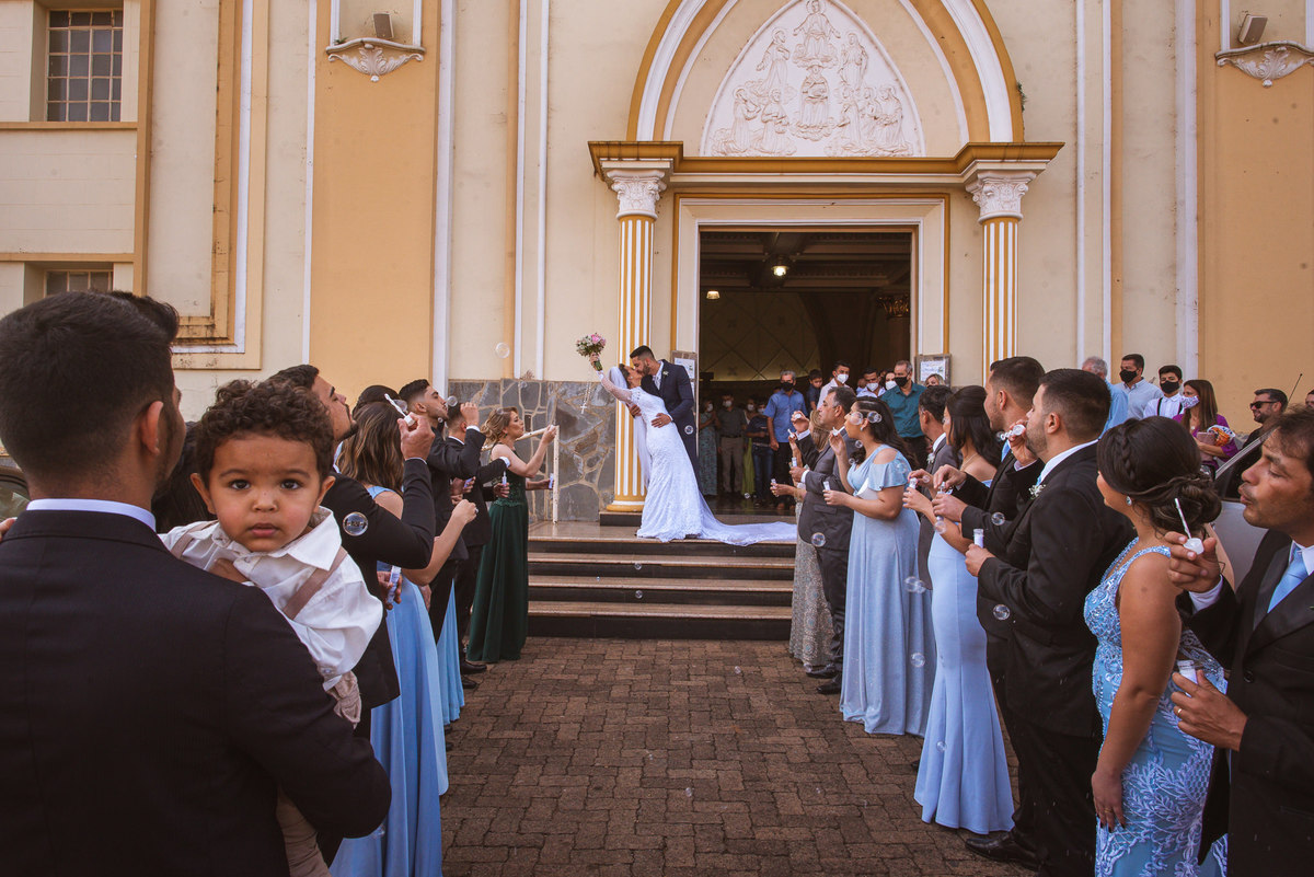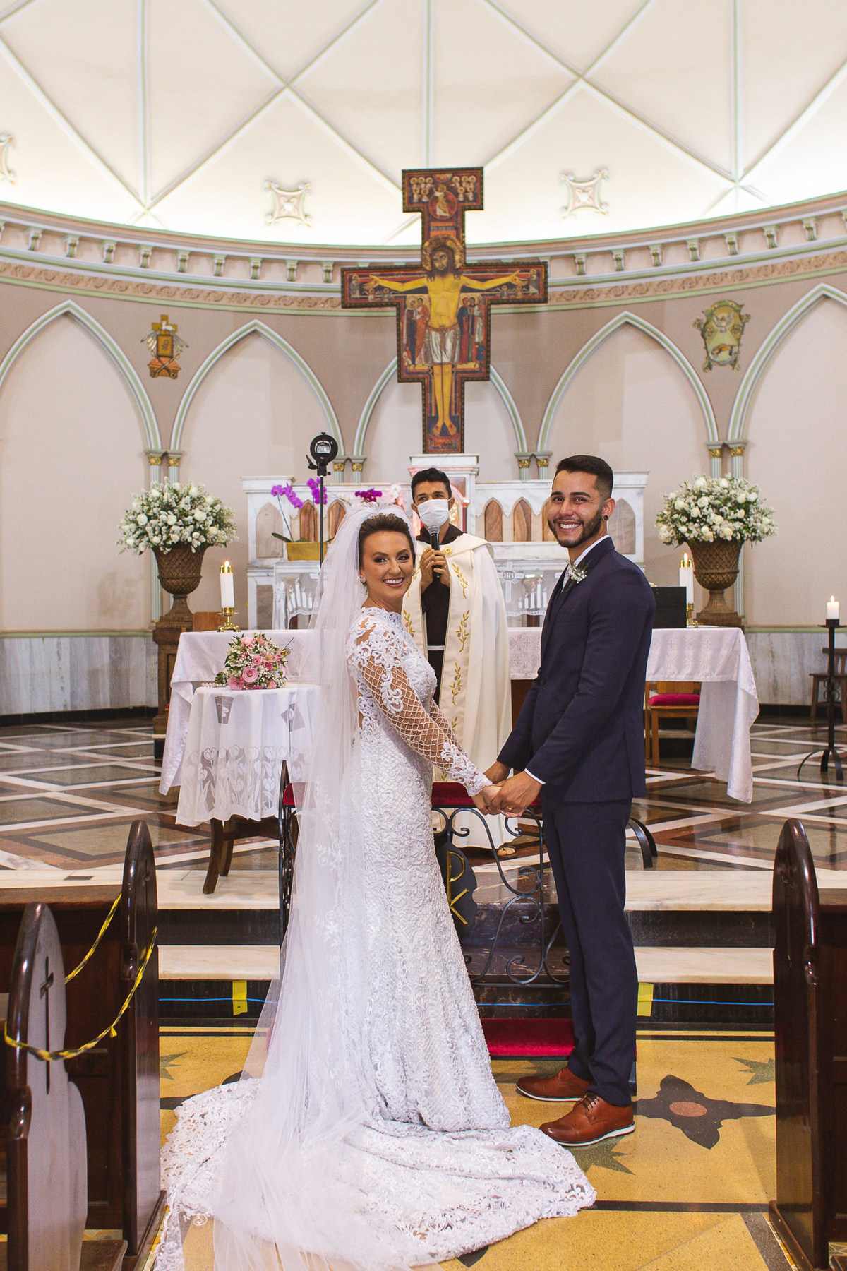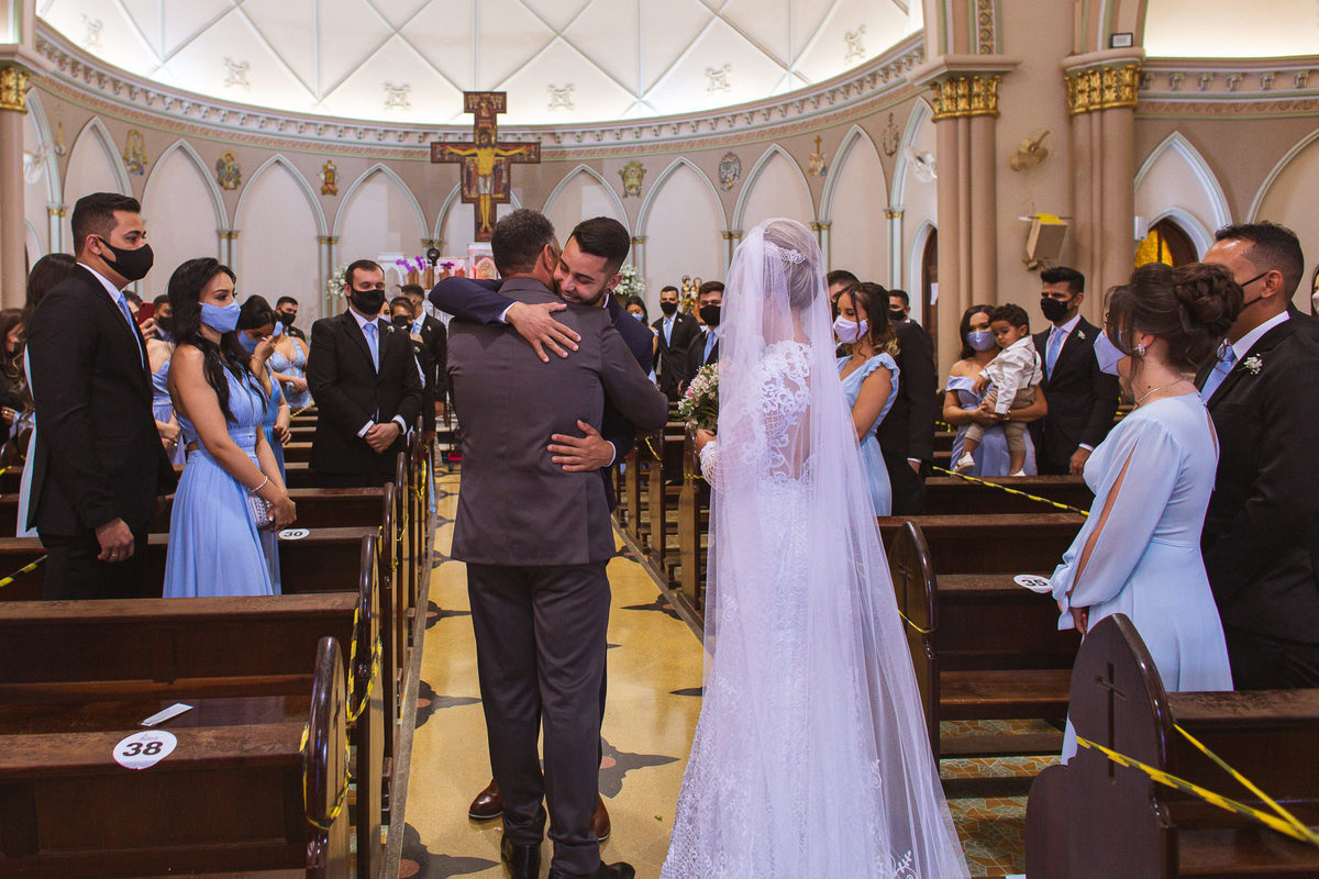 Em um encontro memorável, Fernanda despediu de seu pai que imediatamente entregou a mão de sua filha ao noivo. Fernanda e Erivelto trocaram olhares e sorrisos, o noivo beijou respeitosamente sua mão e posteriormente sua testa. Assim, agora juntinhos eles caminharam para a bênção religiosa. A leitura do versículo e a homilia foi linda. Com a equipe de Rejane Siqueira e banda, a cerimônia deu prosseguimento. Os dois trocaram as alianças e foram abençoados. Mediante o Padre, eles foram declarados casados diante da lei de Deus e também dos homens. Fizemos as fotografias de praxe e a cerimônia foi finalizada. Na saída, os padrinhos assopraram bolinhas de sabão enquanto aguardavam os noivos do lado de fora. Quando Fernanda e Erivelto chegaram, a comemoração foi intensa. Eles receberam o carinho dos convidados e partimos rumo à recepção.