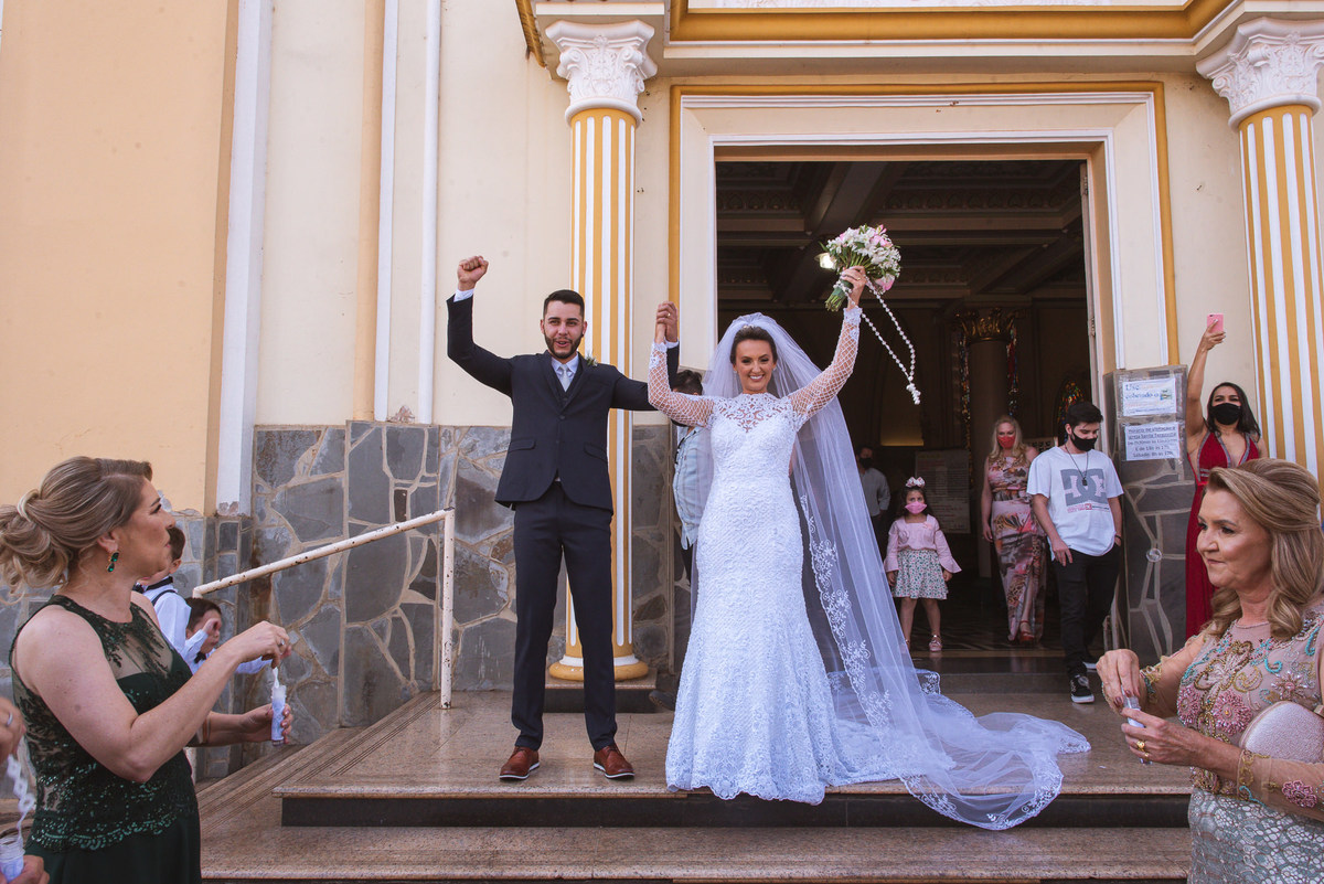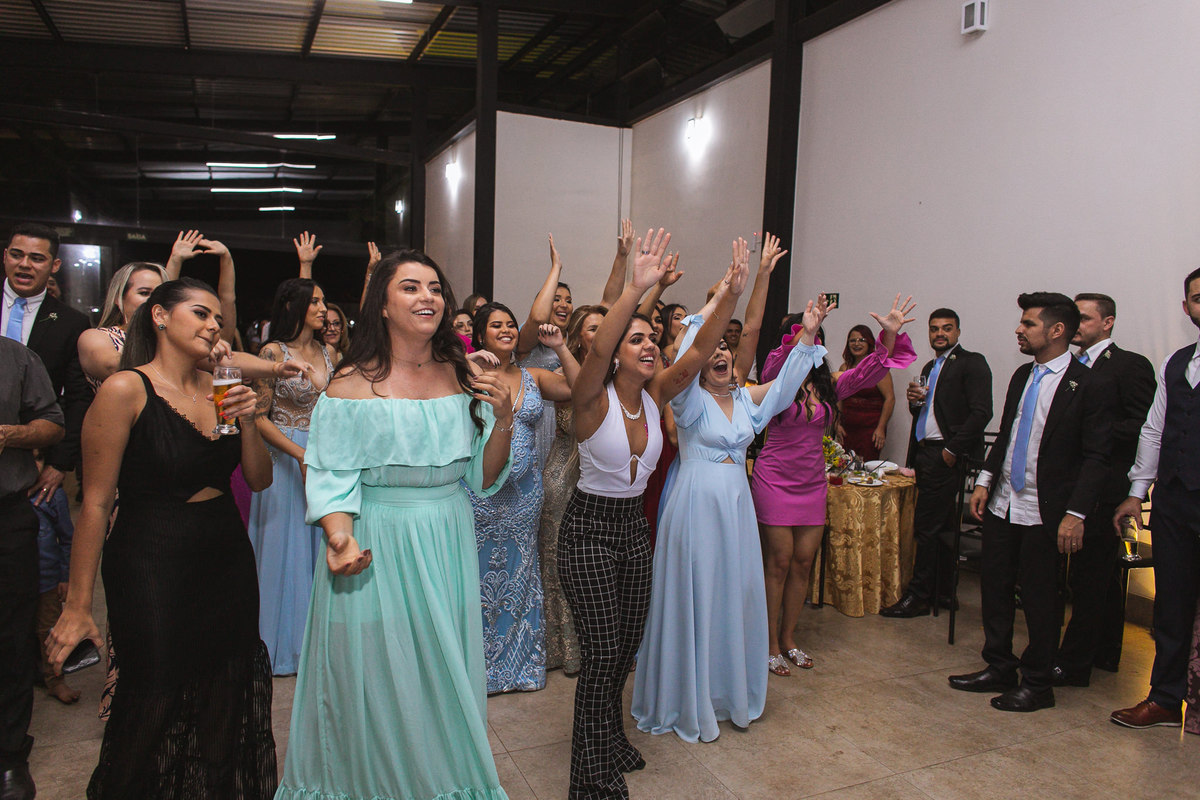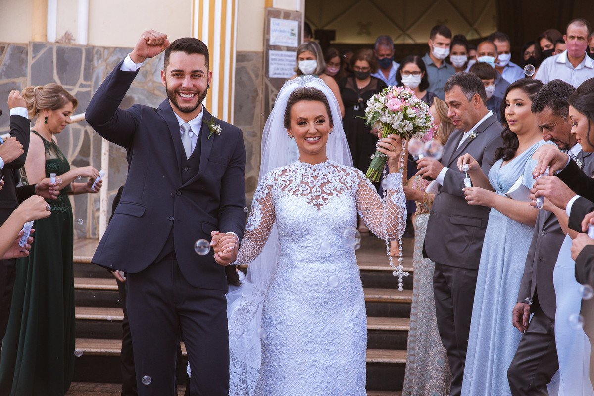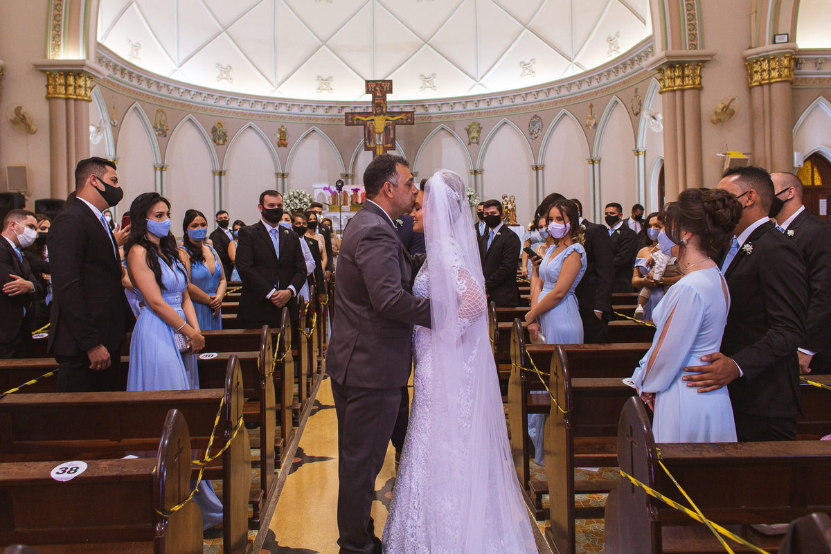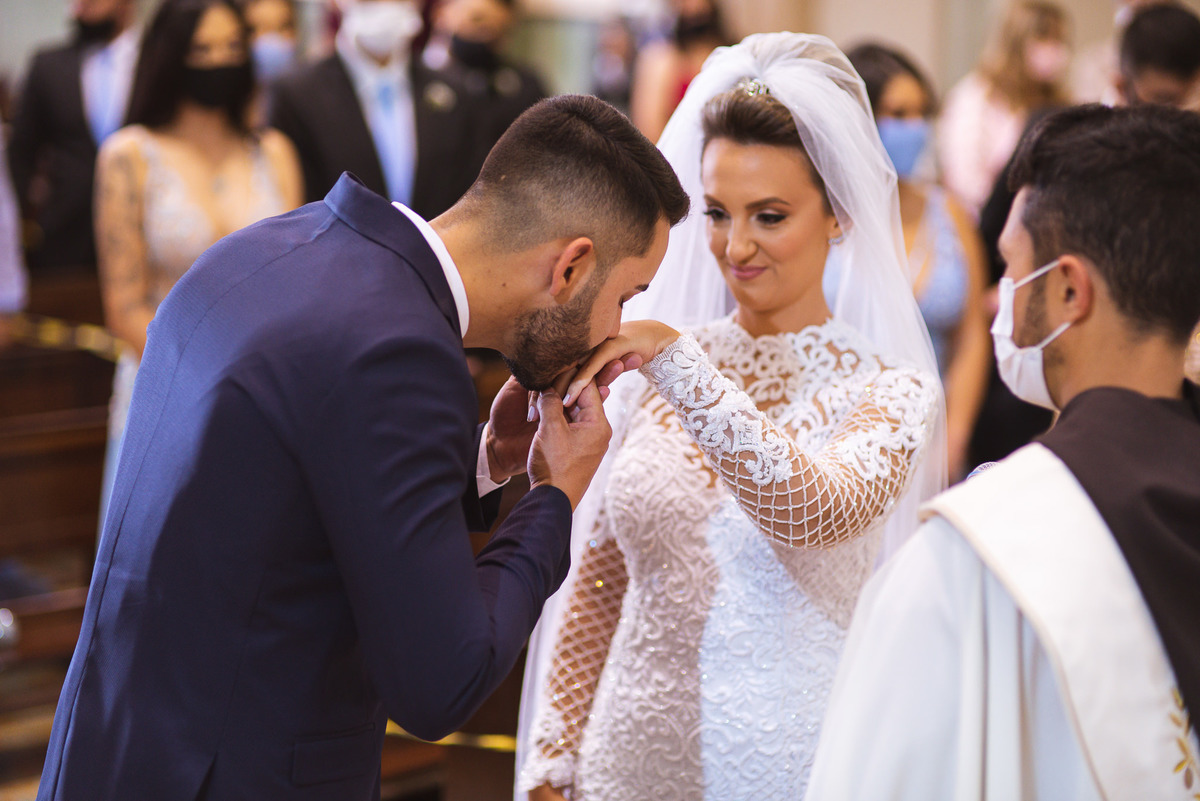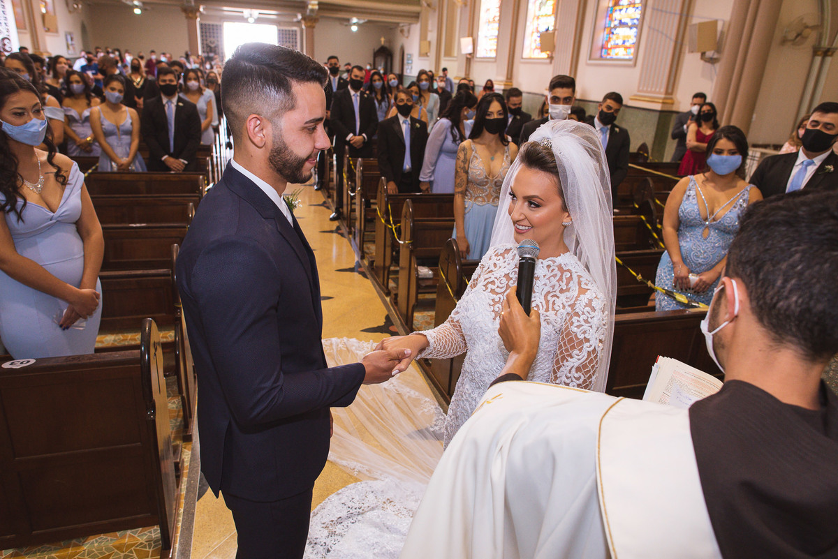 Em um encontro memorável, Fernanda despediu de seu pai que imediatamente entregou a mão de sua filha ao noivo. Fernanda e Erivelto trocaram olhares e sorrisos, o noivo beijou respeitosamente sua mão e posteriormente sua testa. Assim, agora juntinhos eles caminharam para a bênção religiosa. A leitura do versículo e a homilia foi linda. Com a equipe de Rejane Siqueira e banda, a cerimônia deu prosseguimento. Os dois trocaram as alianças e foram abençoados. Mediante o Padre, eles foram declarados casados diante da lei de Deus e também dos homens. Fizemos as fotografias de praxe e a cerimônia foi finalizada. Na saída, os padrinhos assopraram bolinhas de sabão enquanto aguardavam os noivos do lado de fora. Quando Fernanda e Erivelto chegaram, a comemoração foi intensa. Eles receberam o carinho dos convidados e partimos rumo à recepção.