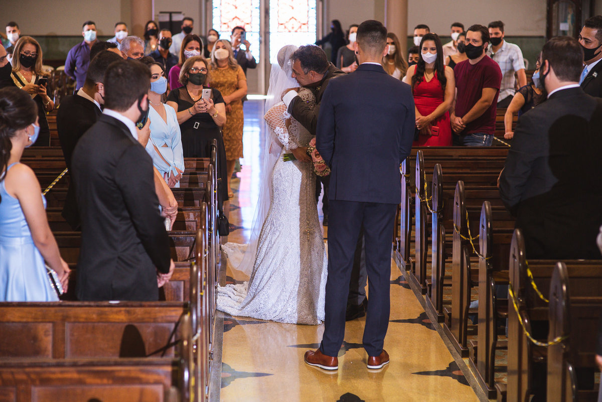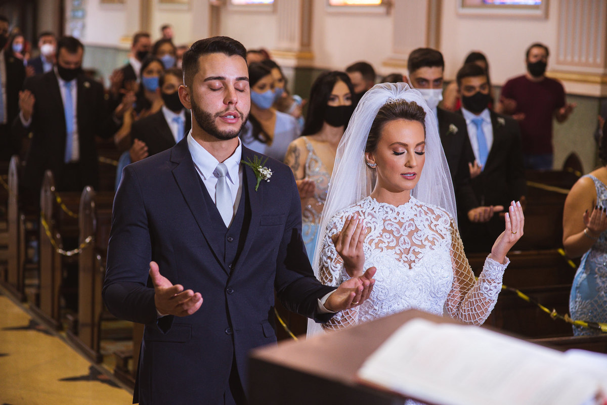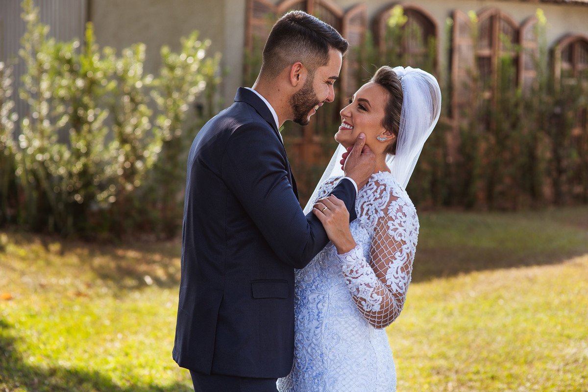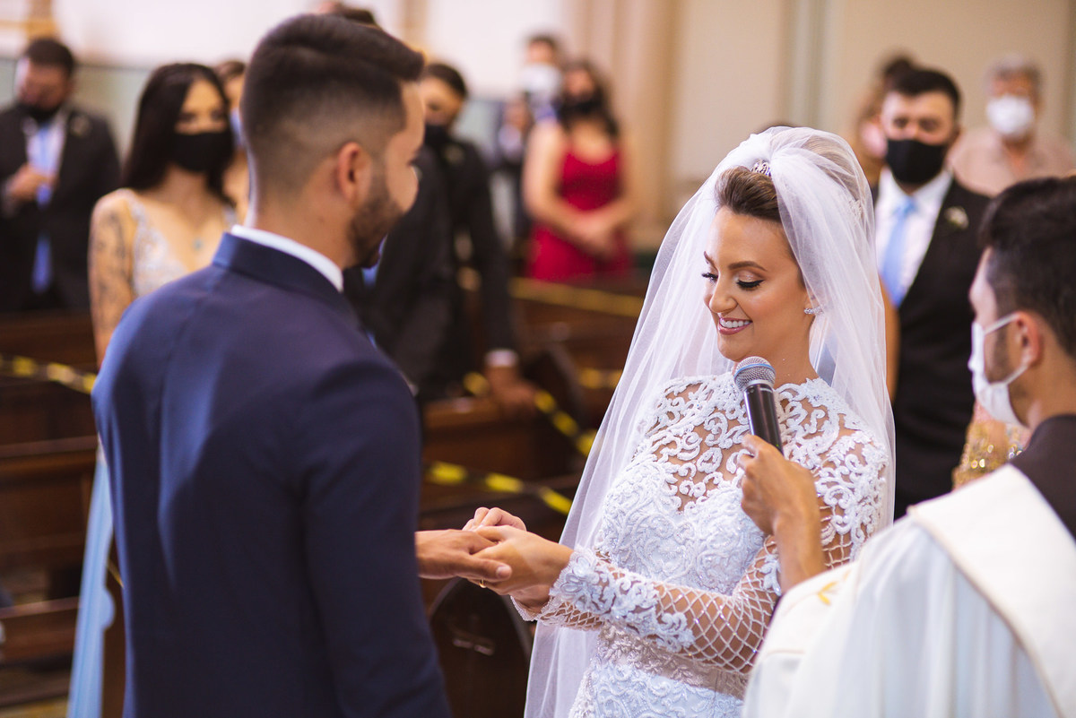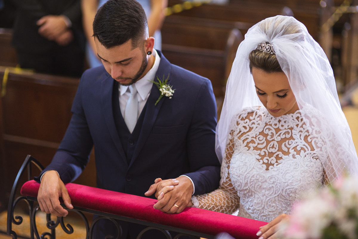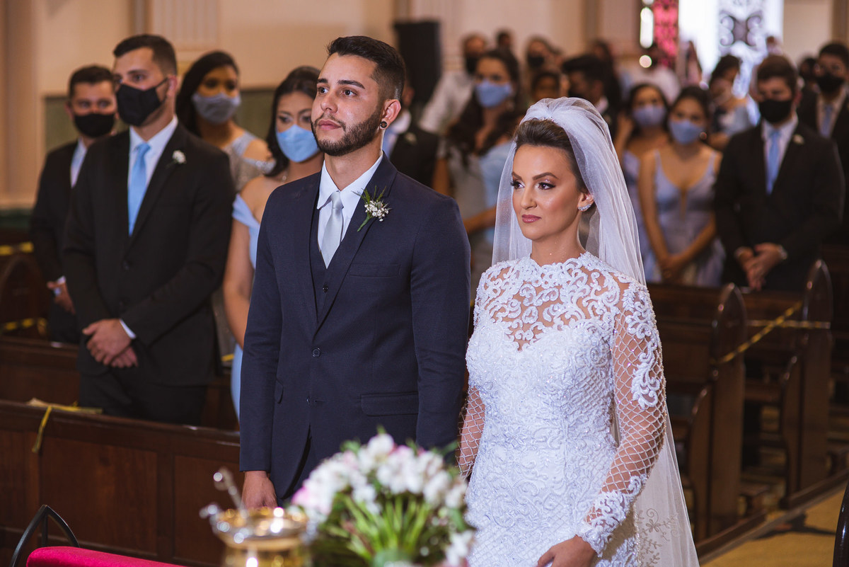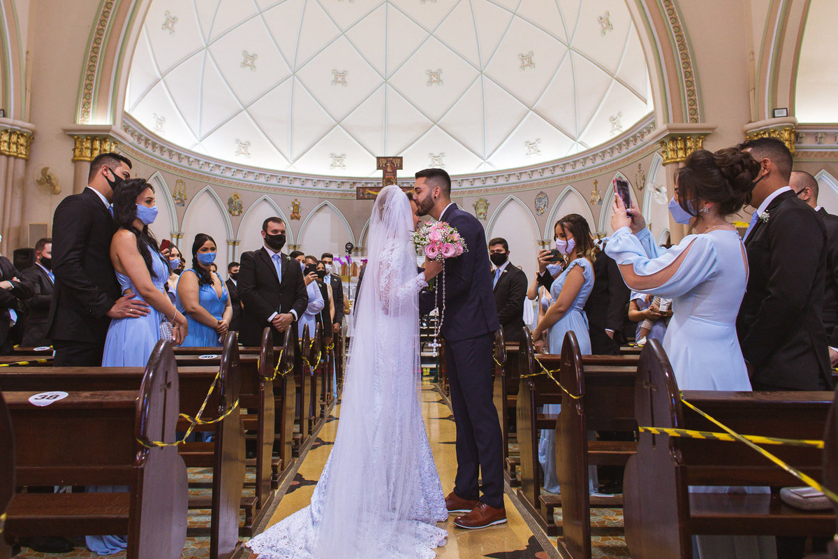 Em um encontro memorável, Fernanda despediu de seu pai que imediatamente entregou a mão de sua filha ao noivo. Fernanda e Erivelto trocaram olhares e sorrisos, o noivo beijou respeitosamente sua mão e posteriormente sua testa. Assim, agora juntinhos eles caminharam para a bênção religiosa. A leitura do versículo e a homilia foi linda. Com a equipe de Rejane Siqueira e banda, a cerimônia deu prosseguimento. Os dois trocaram as alianças e foram abençoados. Mediante o Padre, eles foram declarados casados diante da lei de Deus e também dos homens. Fizemos as fotografias de praxe e a cerimônia foi finalizada. Na saída, os padrinhos assopraram bolinhas de sabão enquanto aguardavam os noivos do lado de fora. Quando Fernanda e Erivelto chegaram, a comemoração foi intensa. Eles receberam o carinho dos convidados e partimos rumo à recepção.