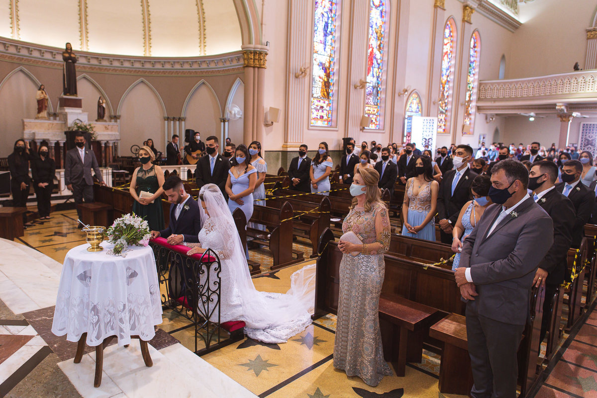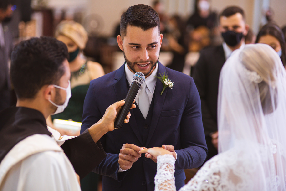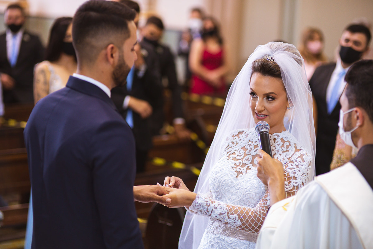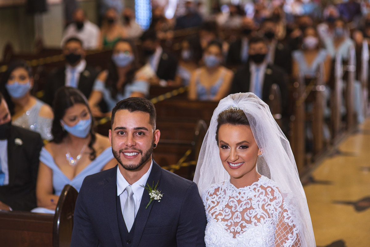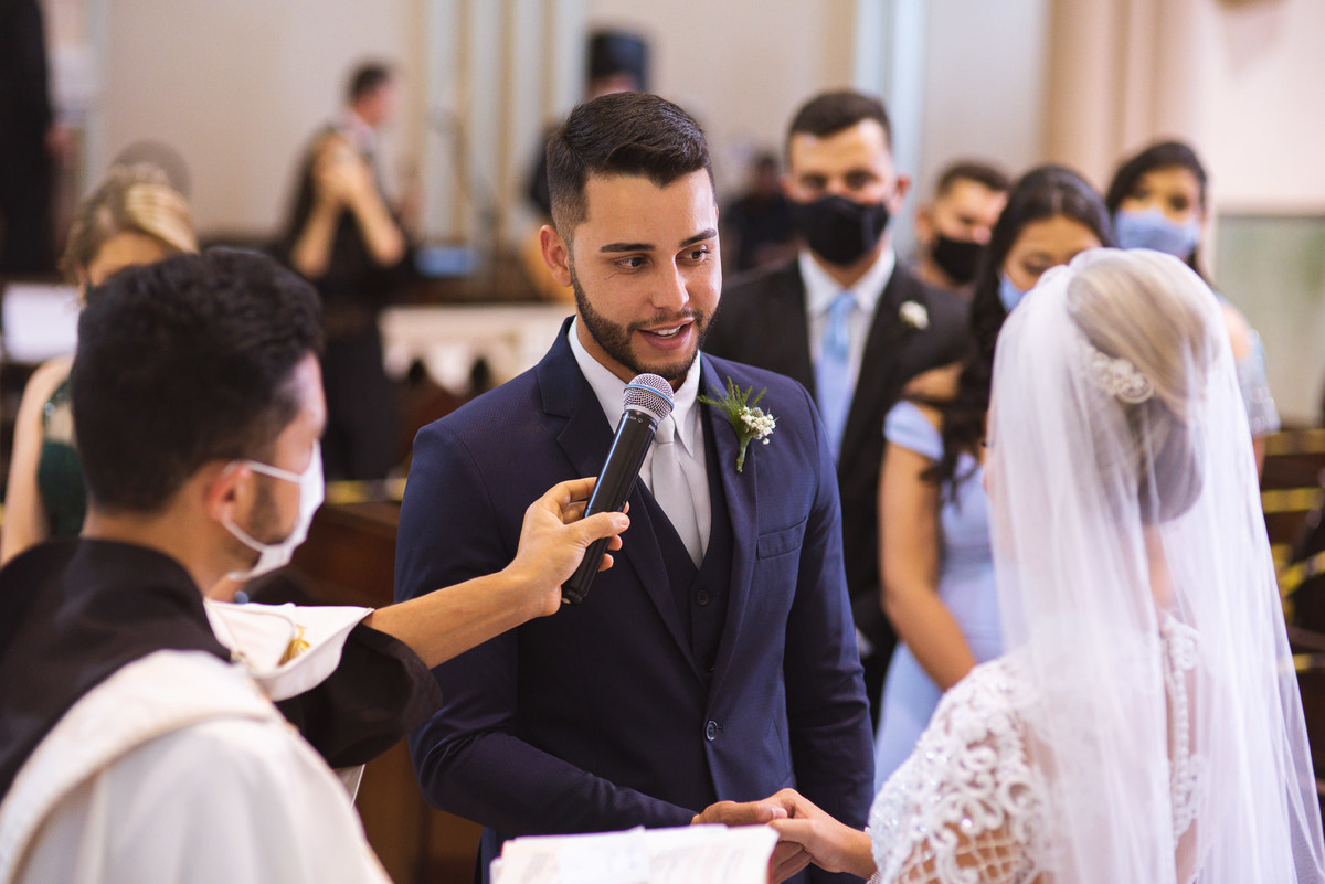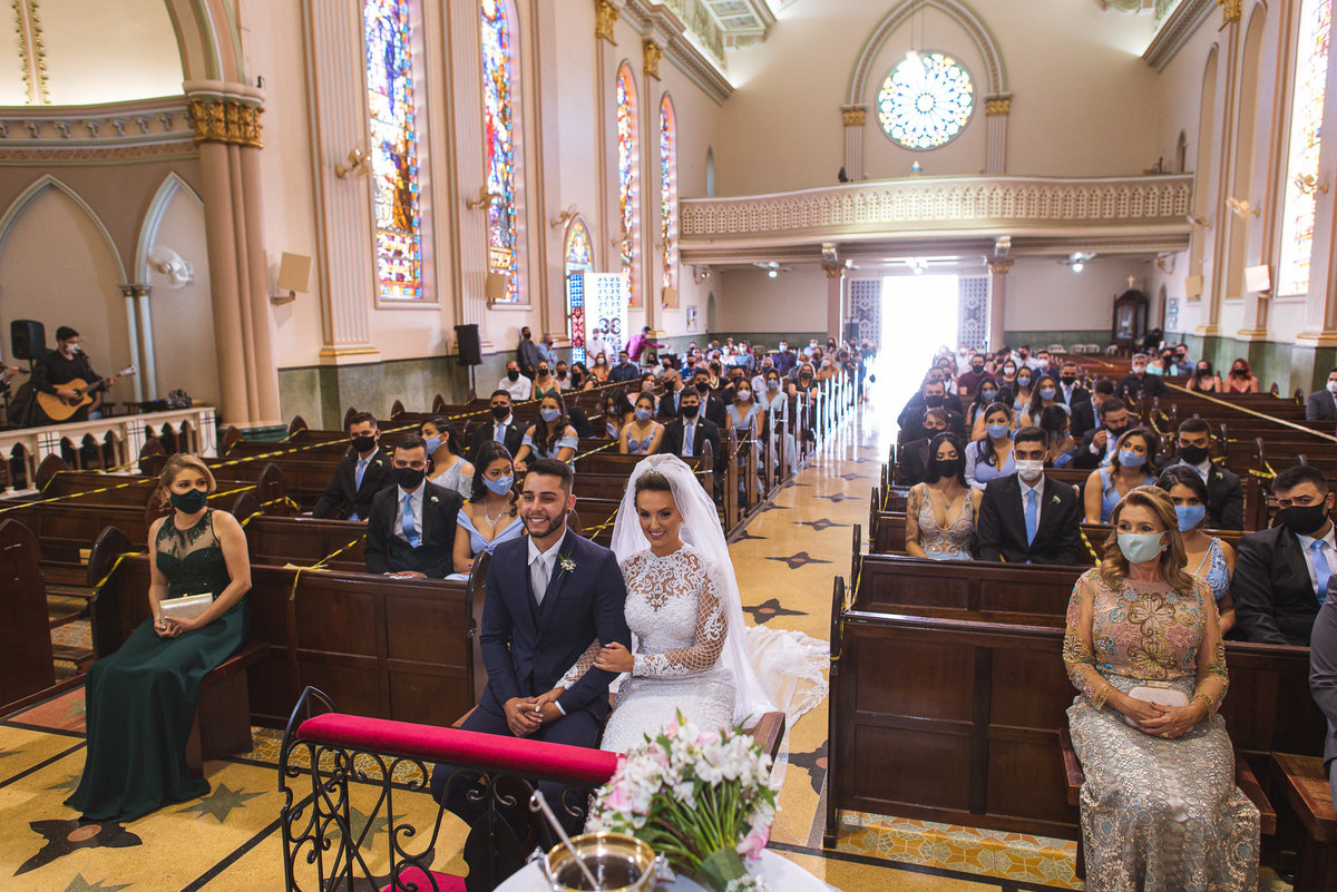Em um encontro memorável, Fernanda despediu de seu pai que imediatamente entregou a mão de sua filha ao noivo. Fernanda e Erivelto trocaram olhares e sorrisos, o noivo beijou respeitosamente sua mão e posteriormente sua testa. Assim, agora juntinhos eles caminharam para a bênção religiosa. A leitura do versículo e a homilia foi linda. Com a equipe de Rejane Siqueira e banda, a cerimônia deu prosseguimento. Os dois trocaram as alianças e foram abençoados. Mediante o Padre, eles foram declarados casados diante da lei de Deus e também dos homens. Fizemos as fotografias de praxe e a cerimônia foi finalizada. Na saída, os padrinhos assopraram bolinhas de sabão enquanto aguardavam os noivos do lado de fora. Quando Fernanda e Erivelto chegaram, a comemoração foi intensa. Eles receberam o carinho dos convidados e partimos rumo à recepção.