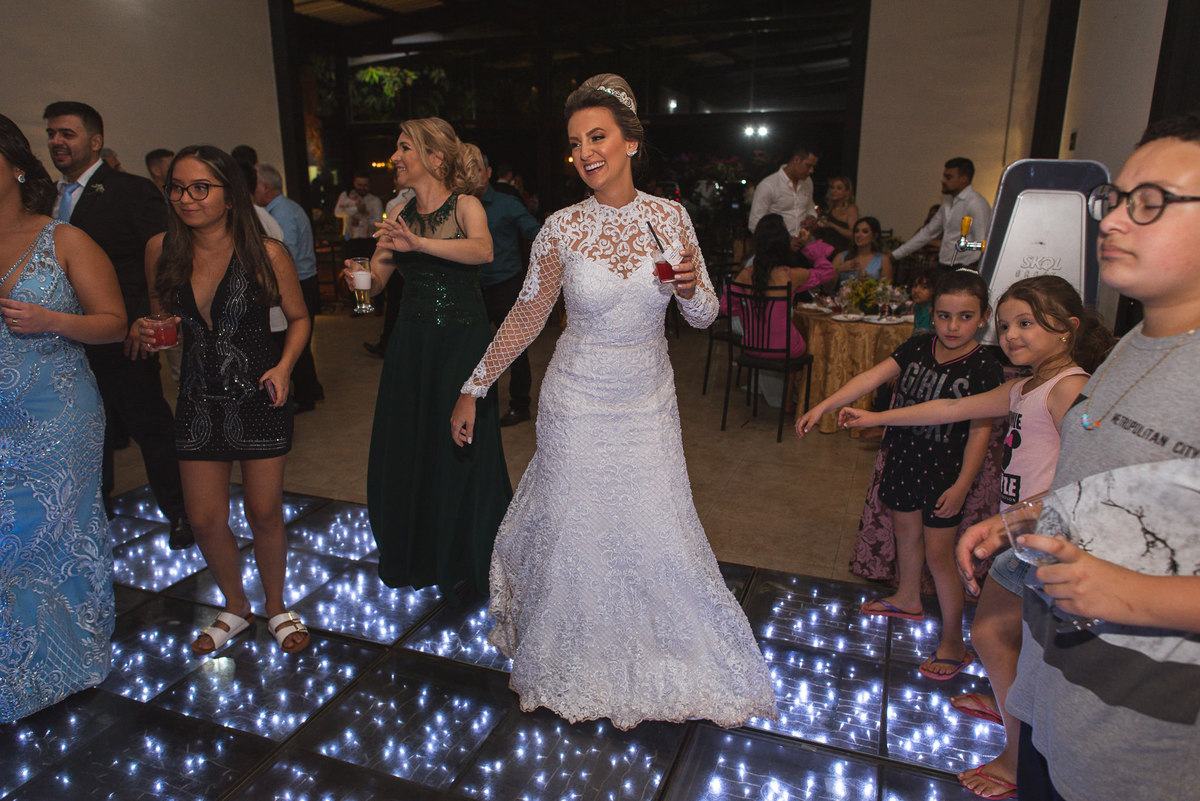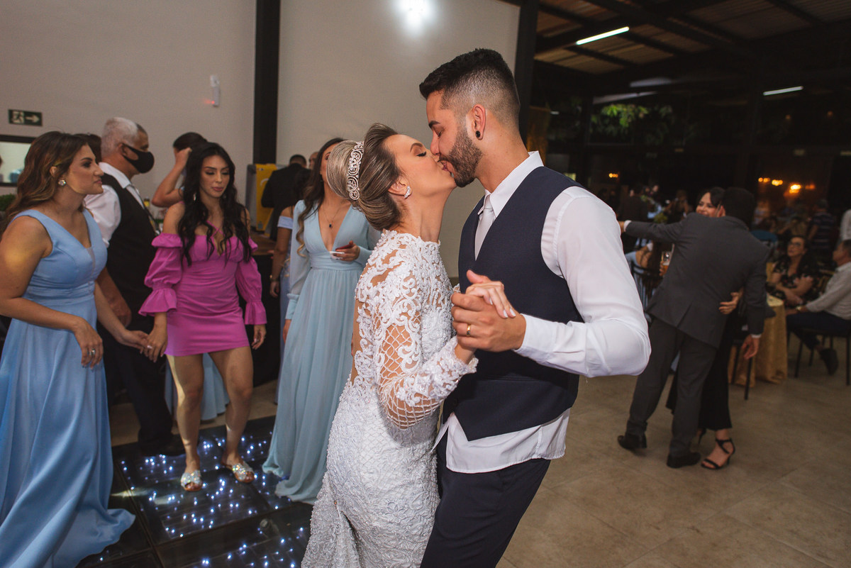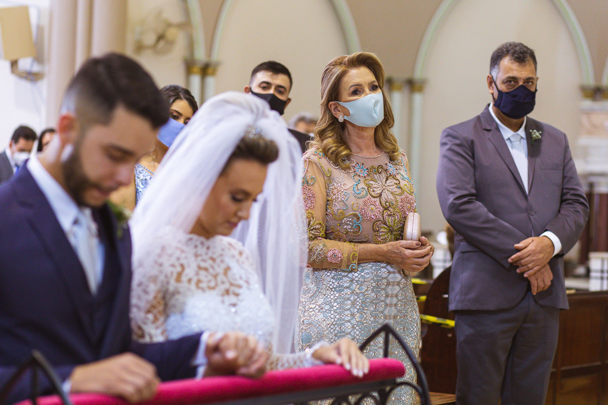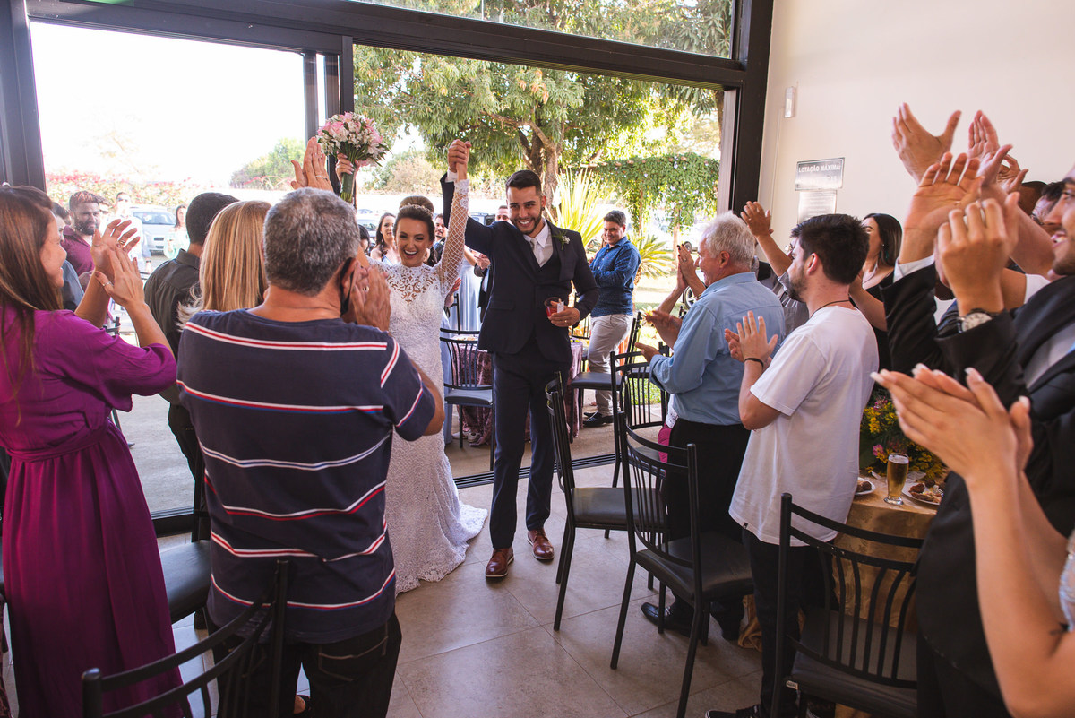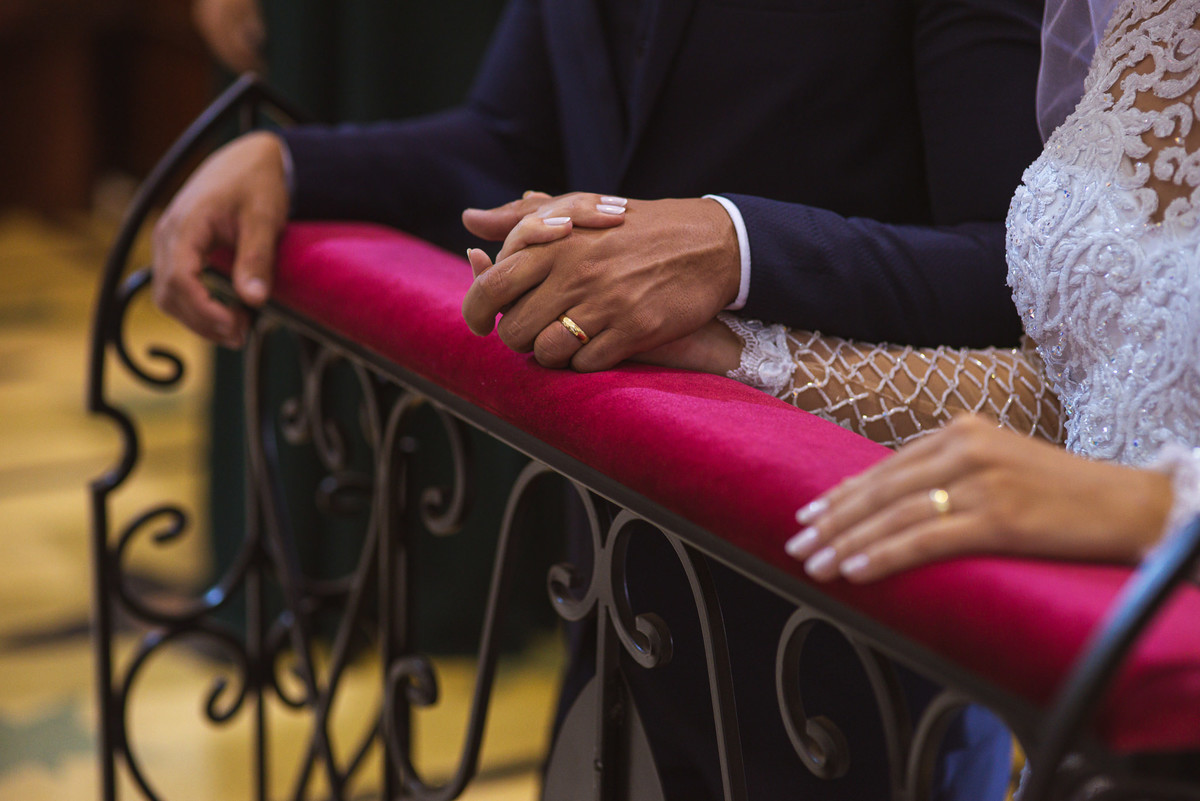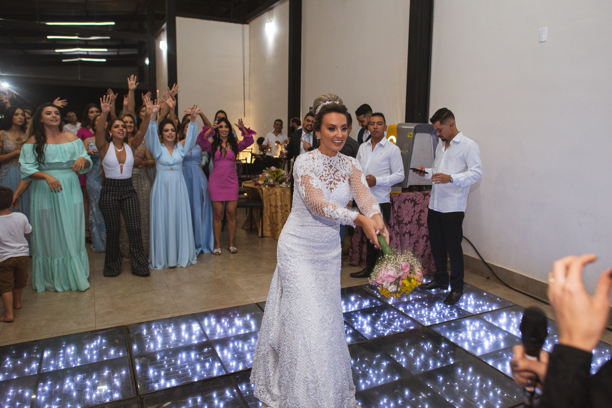 Em um encontro memorável, Fernanda despediu de seu pai que imediatamente entregou a mão de sua filha ao noivo. Fernanda e Erivelto trocaram olhares e sorrisos, o noivo beijou respeitosamente sua mão e posteriormente sua testa. Assim, agora juntinhos eles caminharam para a bênção religiosa. A leitura do versículo e a homilia foi linda. Com a equipe de Rejane Siqueira e banda, a cerimônia deu prosseguimento. Os dois trocaram as alianças e foram abençoados. Mediante o Padre, eles foram declarados casados diante da lei de Deus e também dos homens. Fizemos as fotografias de praxe e a cerimônia foi finalizada. Na saída, os padrinhos assopraram bolinhas de sabão enquanto aguardavam os noivos do lado de fora. Quando Fernanda e Erivelto chegaram, a comemoração foi intensa. Eles receberam o carinho dos convidados e partimos rumo à recepção.