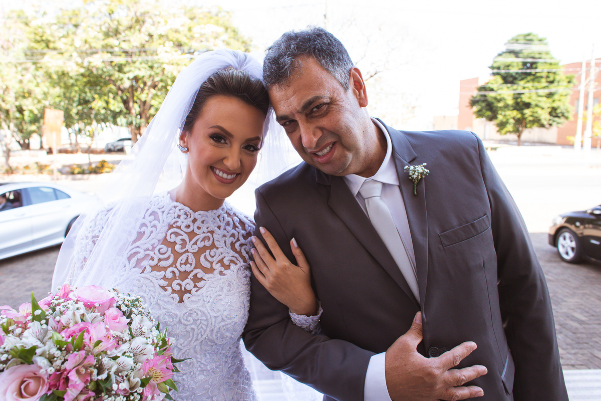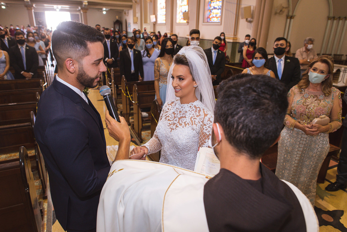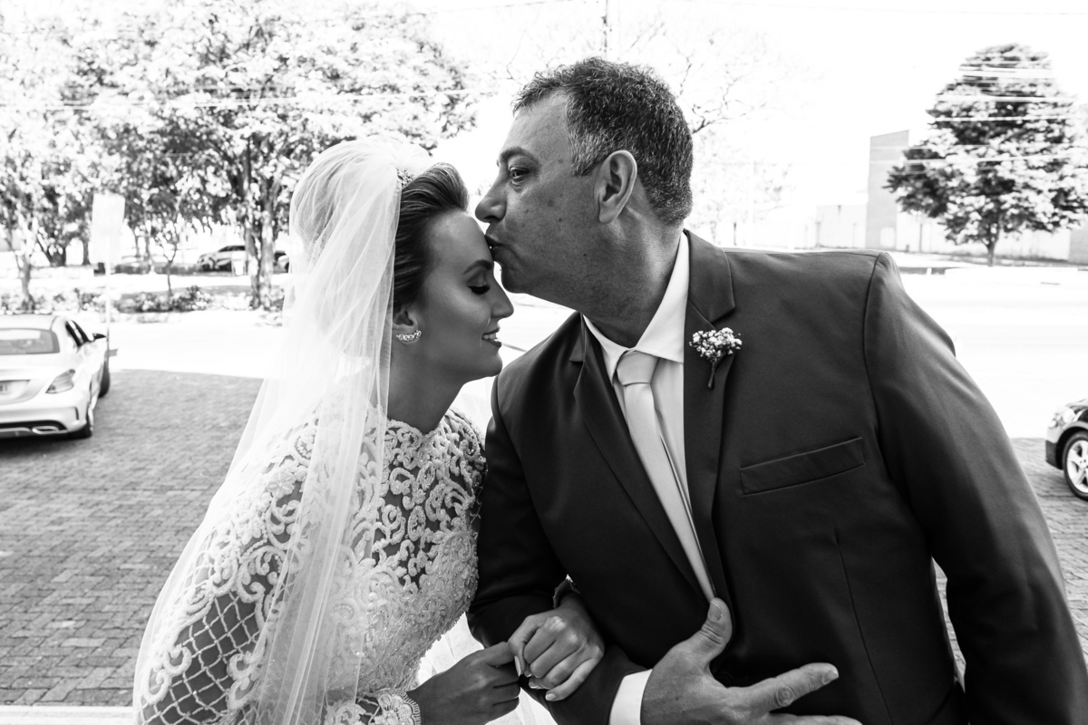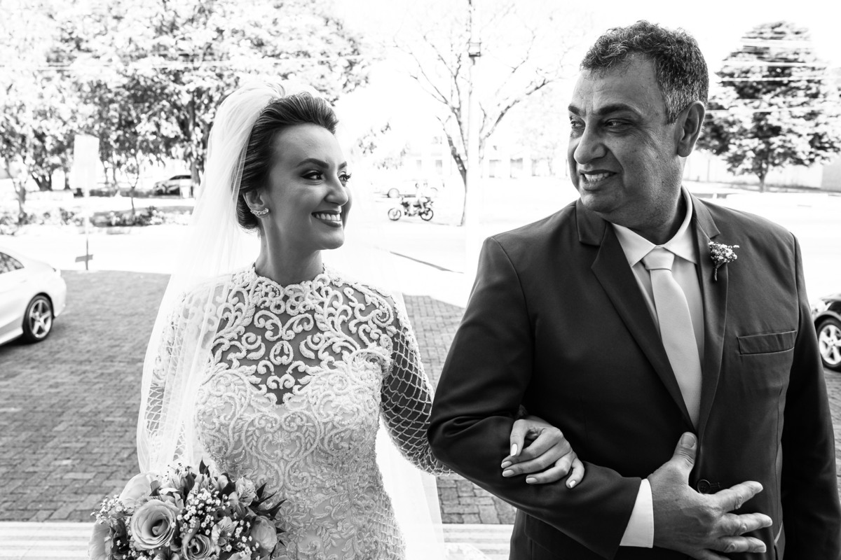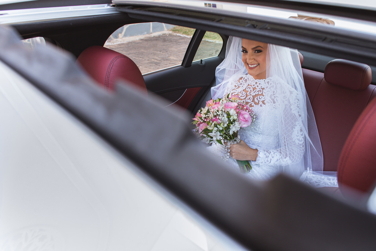 Fernanda trajou seu vestido e a produção estava sendo finalizada. O coração já estava disparado e ansiosamente esperávamos o momento de partir rumo ao sim. Lá de baixo, ouvimos o Dr. Fernando chegando e subindo para buscar Fernanda. Fizemos algumas fotos e já fomos para o carro rumo a igreja. Chegando lá, os padrinhos e até mesmo o noivo estavam aguardando a chegada dela. A cerimônia teve início e cada vez mais a ansiedade batia forte. Fernanda estava maravilhosa e muito sorridente. Erivelto também não conseguia esconder sua felicidade em estar ali.