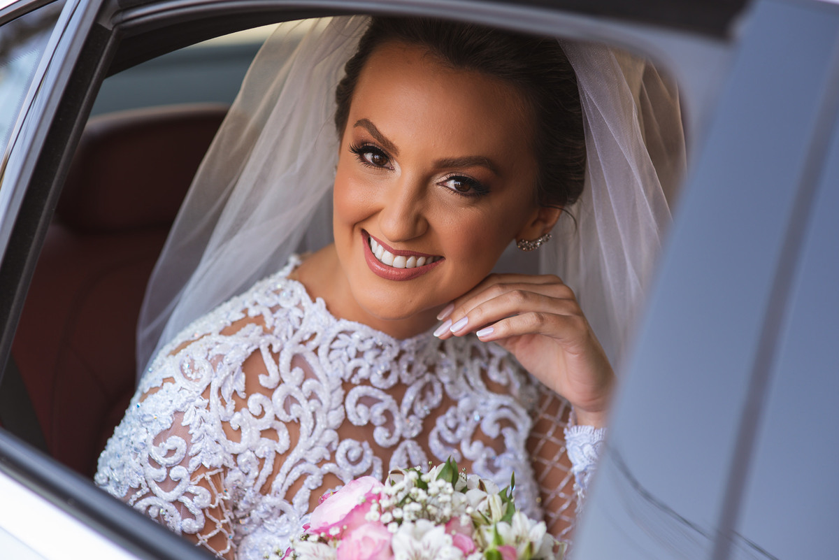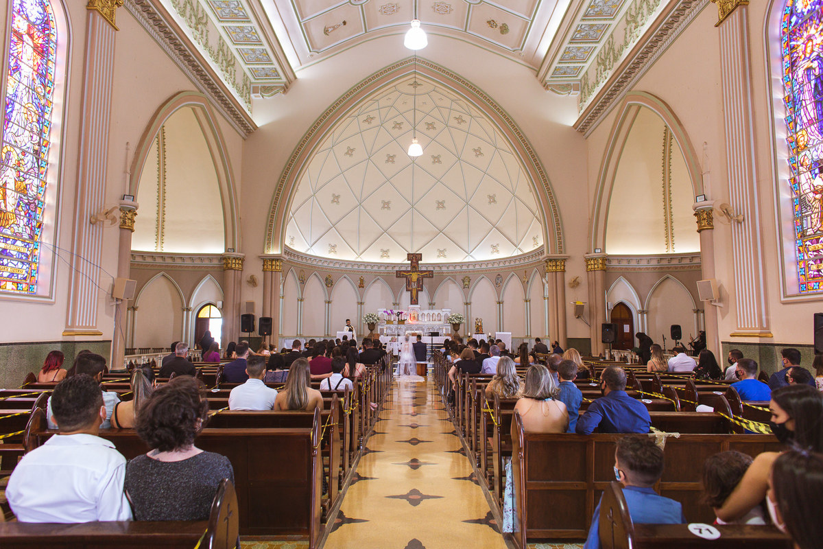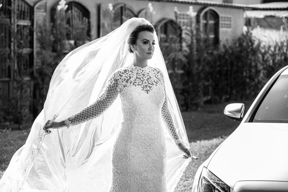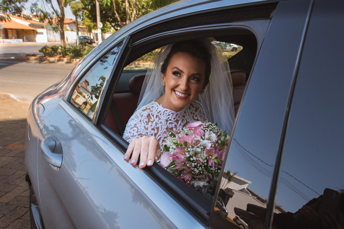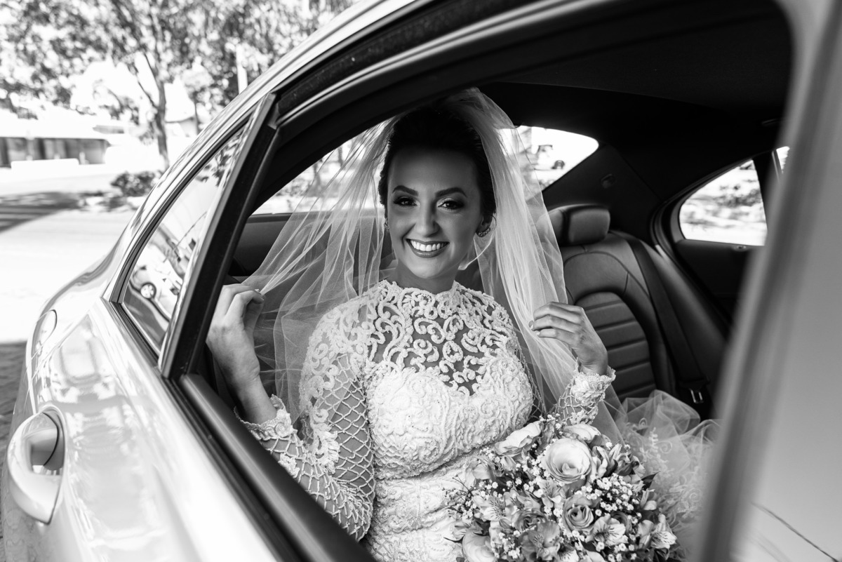 Fernanda trajou seu vestido e a produção estava sendo finalizada. O coração já estava disparado e ansiosamente esperávamos o momento de partir rumo ao sim. Lá de baixo, ouvimos o Dr. Fernando chegando e subindo para buscar Fernanda. Fizemos algumas fotos e já fomos para o carro rumo a igreja. Chegando lá, os padrinhos e até mesmo o noivo estavam aguardando a chegada dela. A cerimônia teve início e cada vez mais a ansiedade batia forte. Fernanda estava maravilhosa e muito sorridente. Erivelto também não conseguia esconder sua felicidade em estar ali.