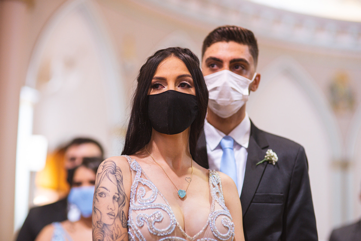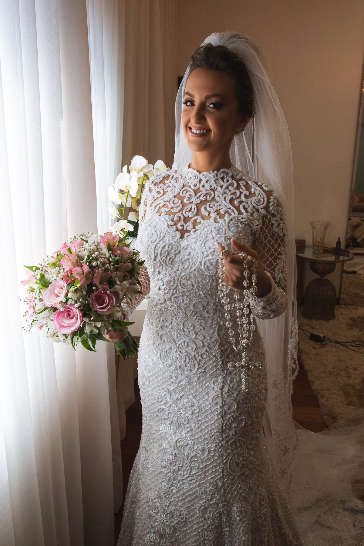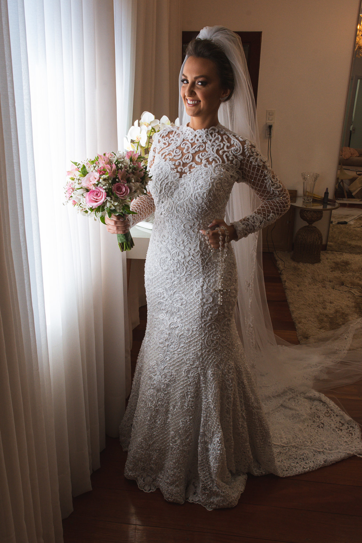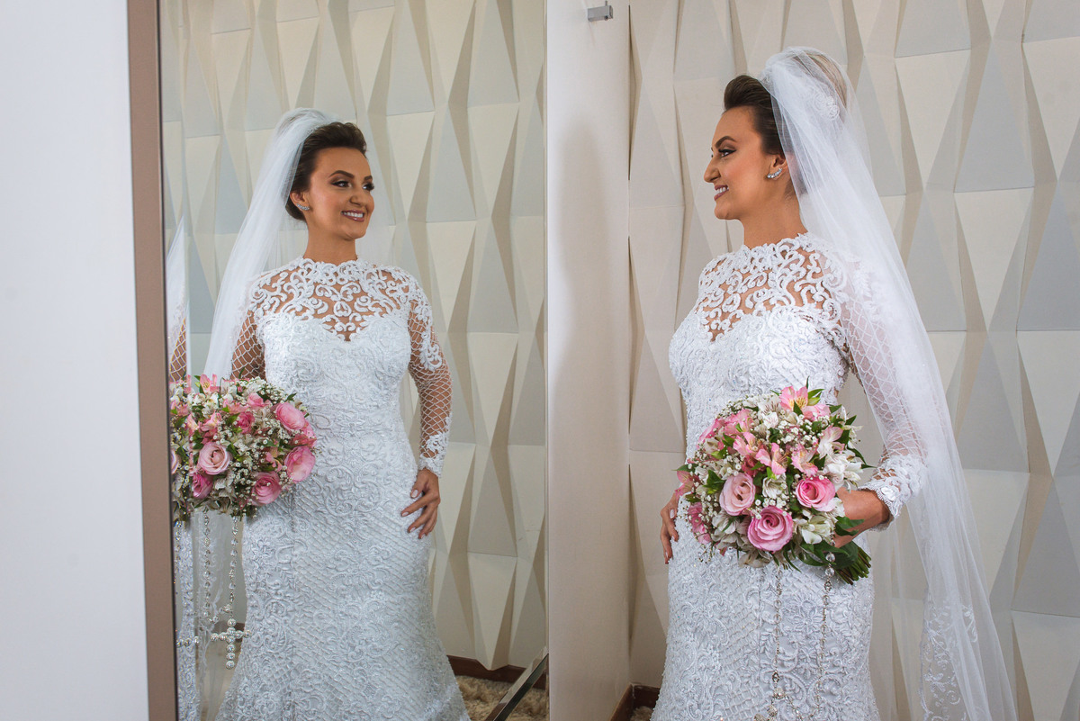 Fernanda trajou seu vestido e a produção estava sendo finalizada. O coração já estava disparado e ansiosamente esperávamos o momento de partir rumo ao sim. Lá de baixo, ouvimos o Dr. Fernando chegando e subindo para buscar Fernanda. Fizemos algumas fotos e já fomos para o carro rumo a igreja. Chegando lá, os padrinhos e até mesmo o noivo estavam aguardando a chegada dela. A cerimônia teve início e cada vez mais a ansiedade batia forte. Fernanda estava maravilhosa e muito sorridente. Erivelto também não conseguia esconder sua felicidade em estar ali.
