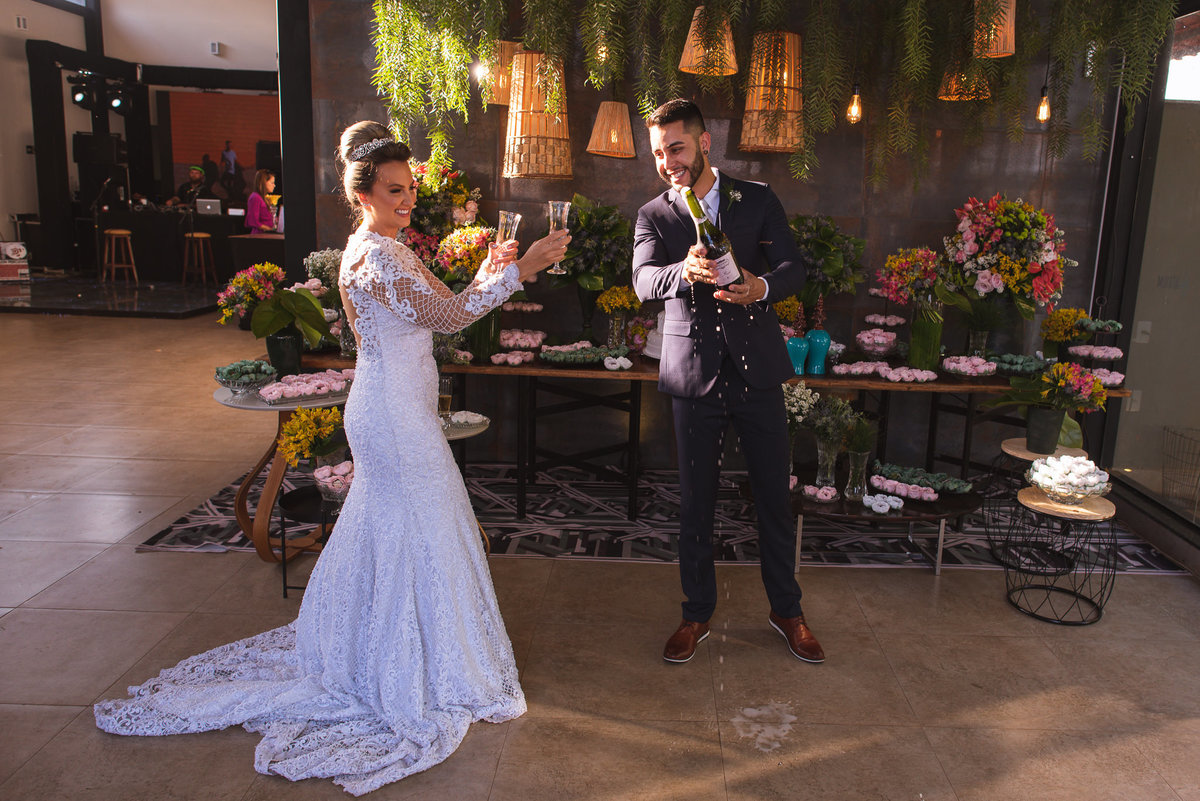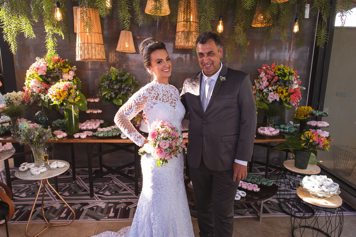 Já no Atrium, local escolhido por eles para recepcionar os convidados, a decoração encantava só de olhar. O sol da tarde pintava o local e abrilhantava a recepção. Comida boa, bebida à vontade e muitos motivos para comemorarem juntos. Ao som da música Tú Vens - Alceu Valença, os noivos anunciavam sua entrada na festa. Bastante aplaudidos, eles agradeceram no microfone e foram cumprimentar seus convidados. Fernanda e Erivelto dançaram, cantaram e festejaram muito com a presença dos seus amigos e familiares. E agora, você pode conferir um pouquinho do que aconteceu nesse dia tão especial.