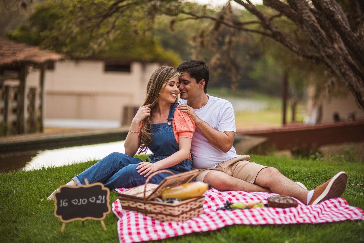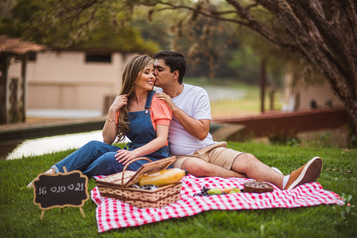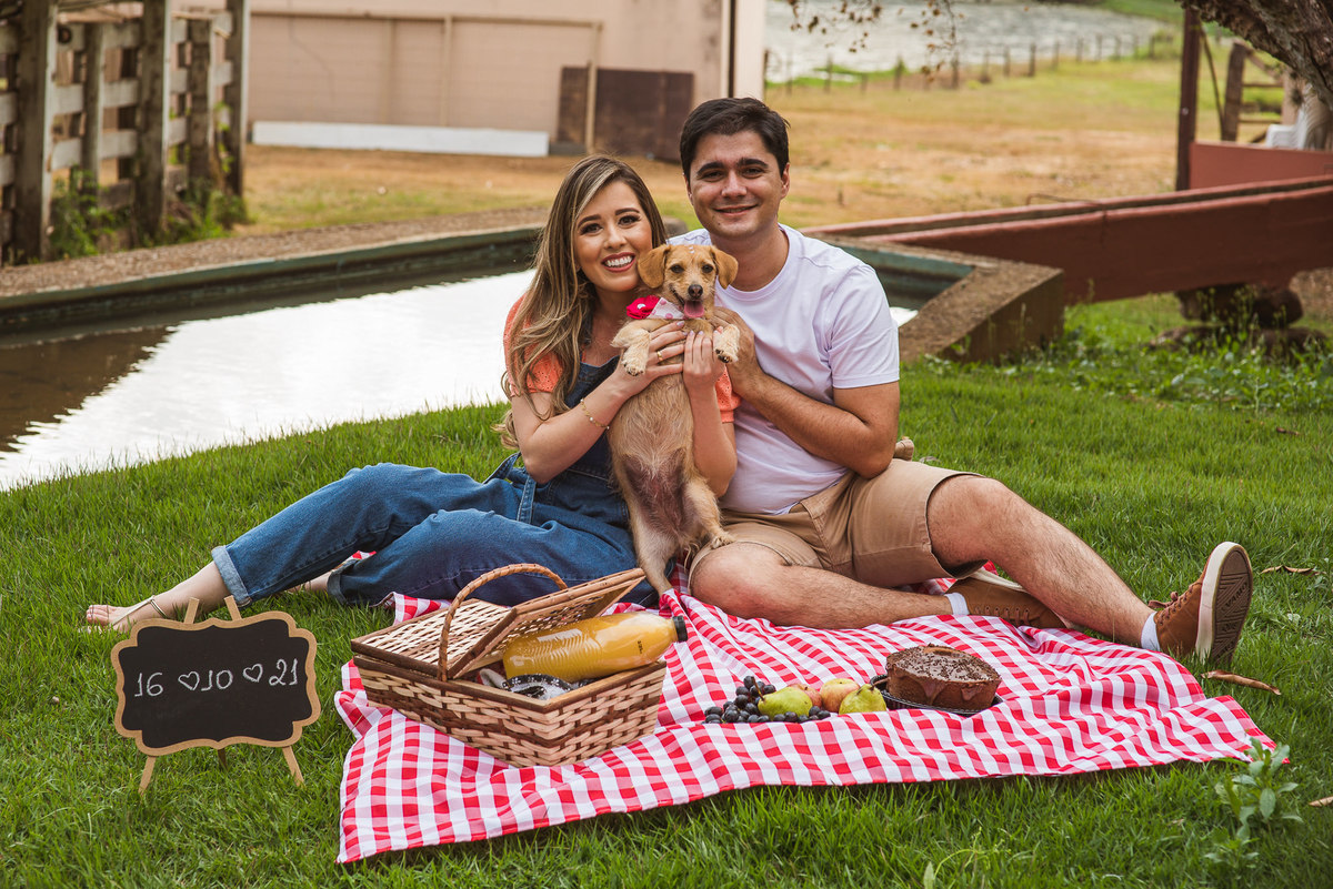 Ela simplesmente transformou o ensaio em uma grande festa. Mel corria de um lado pro outro, pulava no colo dos donos e quase comeu o bolo que fazia parte do cenário do piquenique. Foi muito legal! Aquele momento ajudou o casal se soltar e ficar ainda mais à vontade. E eles tem um propósito muito especial que eu fui descobrir praticamente no final do ensaio. Durante as cenas, eu pedia aos dois que se beijassem e tal, mas via que eles não se beijavam. Os dois tem um propósito maravilhoso: Eles se propuseram de só se beijar no altar! Sim meus amigos, há cinco anos juntos e os dois determinaram que só iriam se beijar após a bênção de Deus sobre o casamento deles, NO ALTAR!