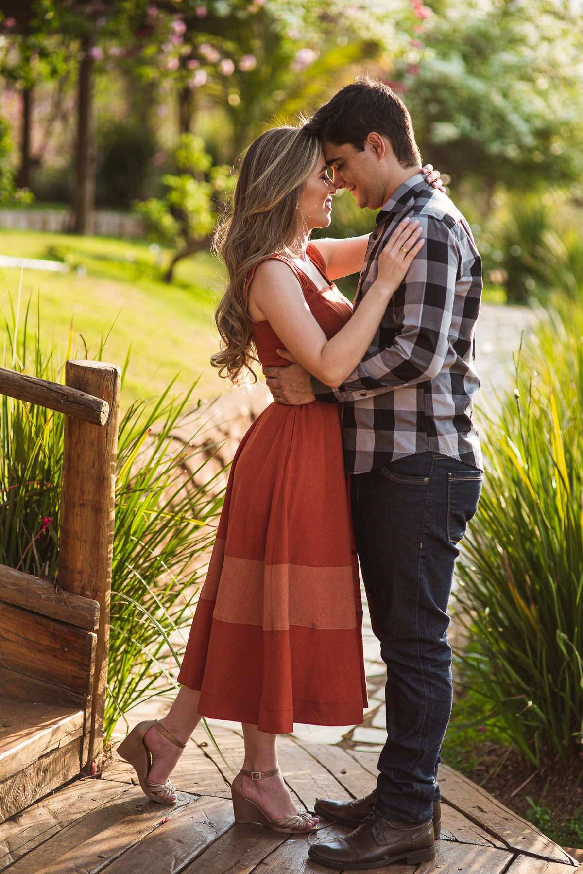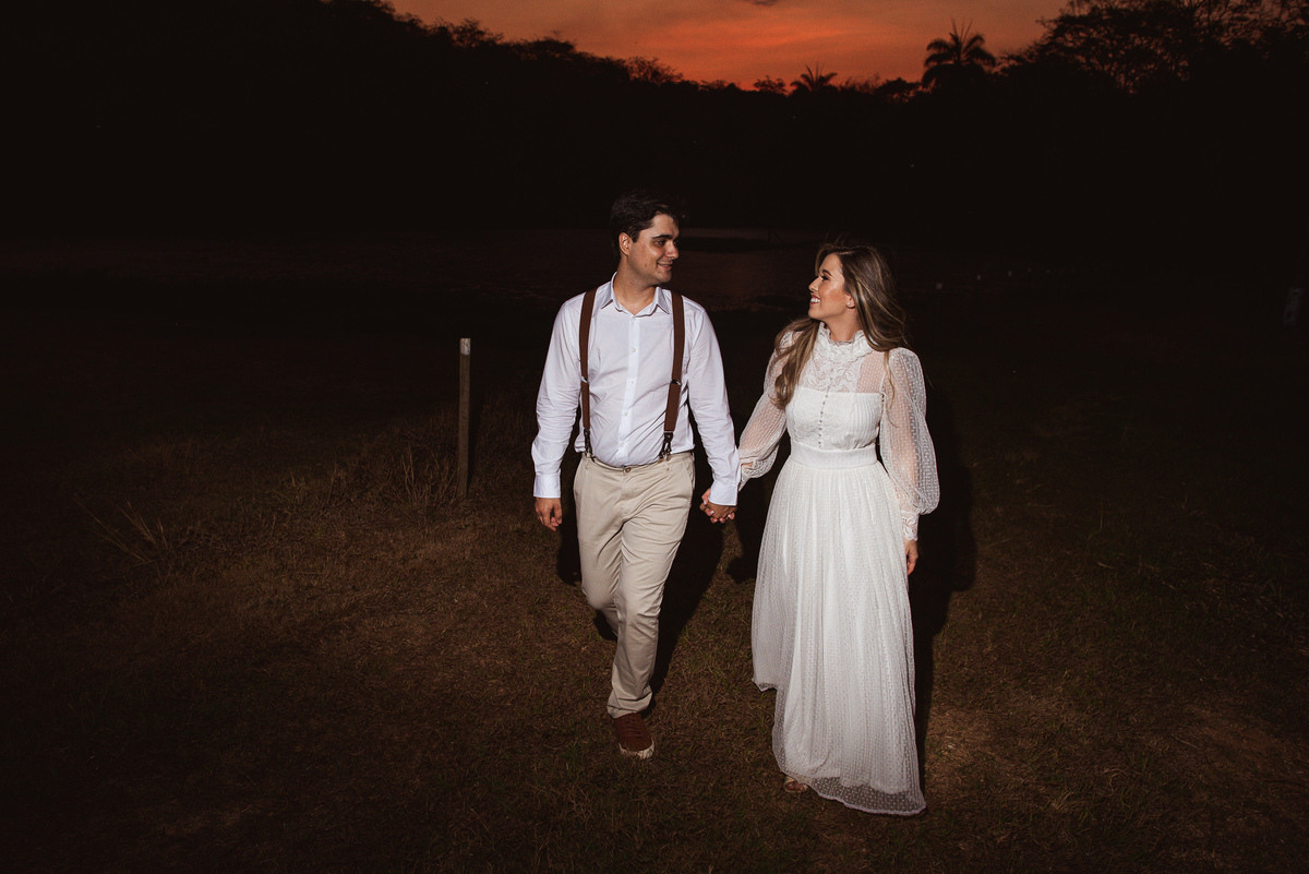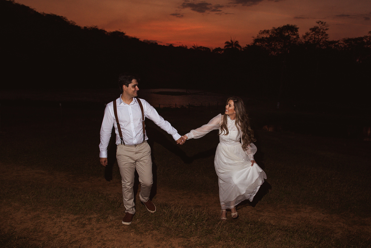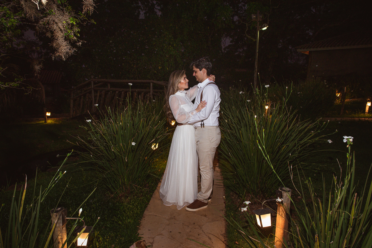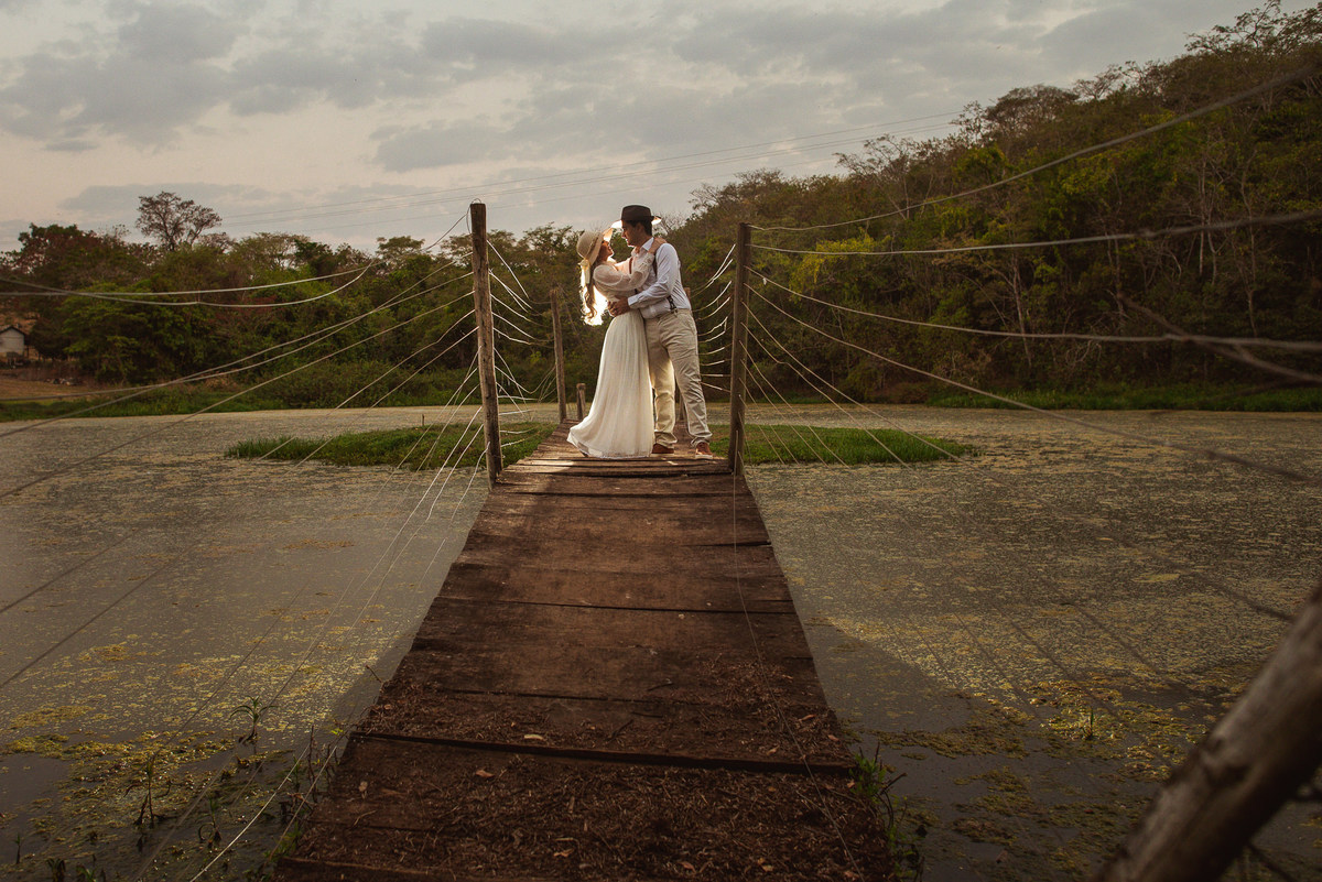 Com essa decisão linda dos dois, nós já imaginamos como será emocionante essa união! Voltando ao ensaio, tudo conspirava a favor desses dois. Fizemos um passeio por todos os locais da Pousada Avalon. Fizemos diversas fotos incríveis e quando pensávamos que já finalizaríamos o ensaio, eis que a noiva me diz: "Lizandro, queria muito fazer uma foto na ponte." O sol já estava bem baixinho, mas não desanimei. Prontamente, atendi ao desejo do casal. Caminhamos nós todos rumo ao lago onde a ponte estava. Chegando lá, me programei e já na cabeça coloquei a foto que eu desejaria fazer. Uma foto especial estava pulsando na minha mente.
