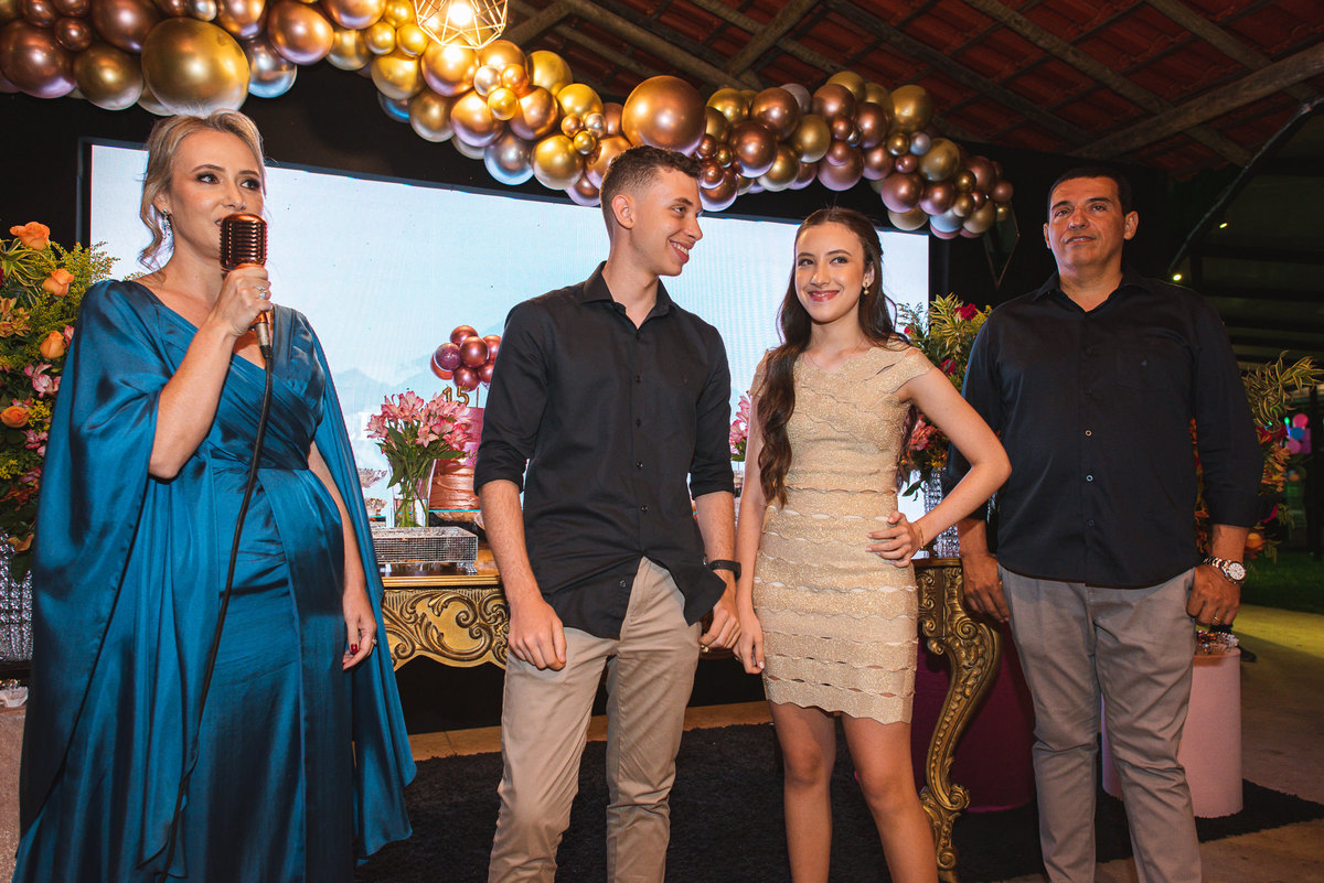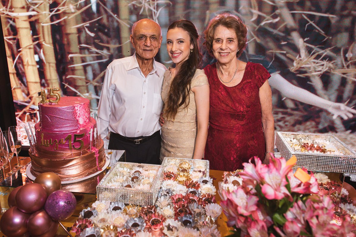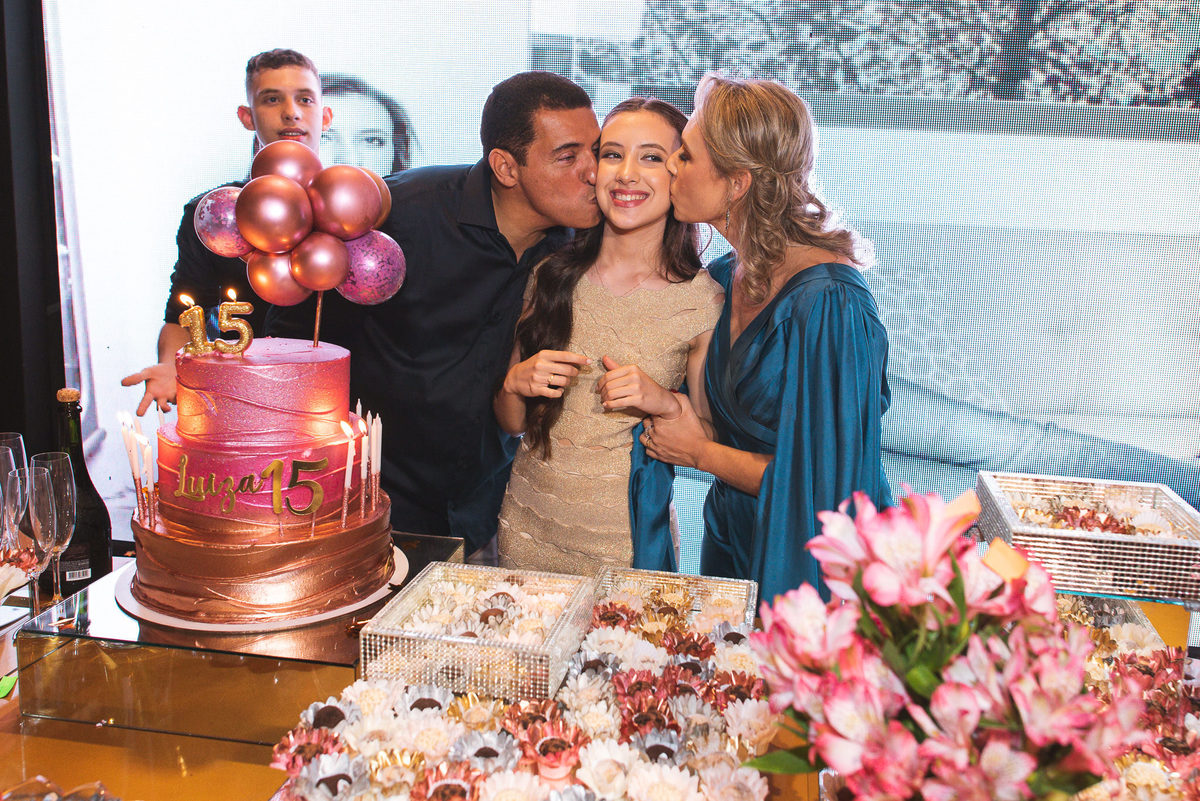 Entre os convidados, destaco a madrinha da debutante, Luciana Fonseca, que discorreu e arrancou sorrisos da aniversariante com suas palavras lindas e cheias de amor. Sua prima Júlia Maia também fez questão de pegar o microfone e relembrar desde o momento em que Luiza nasceu. Ela disse com suas palavras que se lembrava até mesmo do dia do nascimento, e sobre como aquele dia foi especial. Além das palavras lindas e as boas lembranças que tiveram da infância, Júlia entregou um lindo buquê de flores para Luiza. O irmão da debutante, Filipe, também fez uma declaração linda de amor pela sua irmã querida. Foi emocionante! Ver o amor desses dois irmãos e o carinho um com o outro foi incrível. Que família linda!