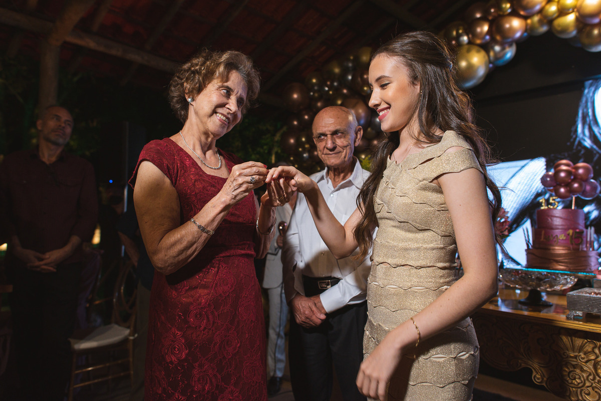 E hoje, depois dela cuidar de mim e empregar minha esposa por esses longos anos, ela agora cuida dos dentinhos de quem? Do nosso filho Gabriel. Gente, às vezes eu me pego pensando em como a vida dá as suas voltas. Agora, eu fui convidado a registrar esse momento do aniversário de 15 anos de sua filha Luiza. Quer um privilégio maior do que esse? Pra mim é uma grande honra e uma demonstração de confiança imensa. O peso desse aniversário pra mim é imensurável, não por medo, mas sim por querer retribuir todo o carinho que essa família tem comigo desde que eu era pequeno.