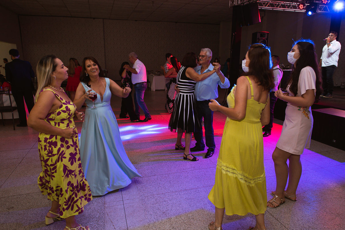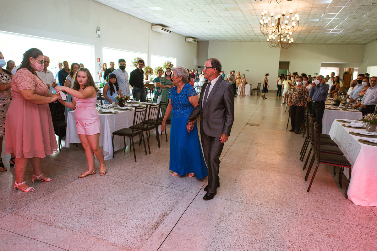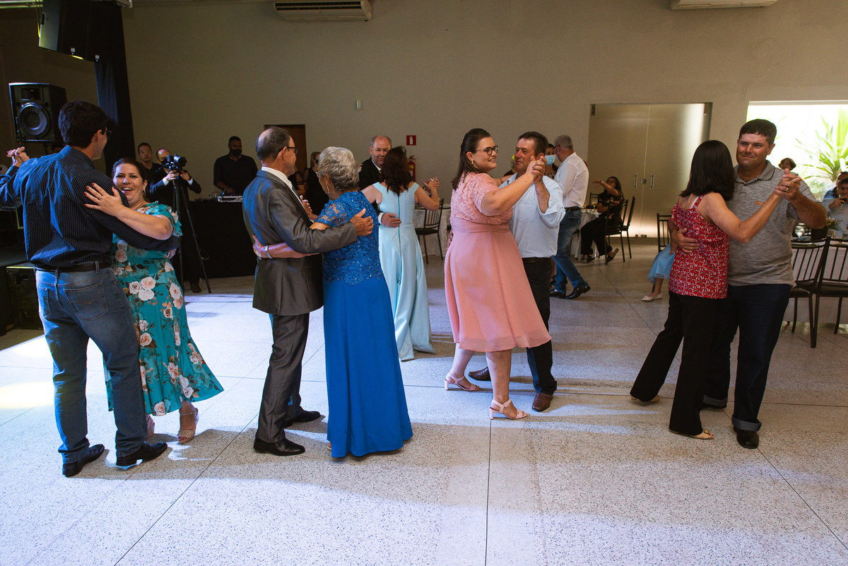 Na pista de dança, eles começaram sozinhos e logo depois completaram a pista com seus filhos, genros e noras que dançaram sorridentes juntamente com os nubentes. A festa continuou com muita felicidade ao som de Washington Luiz e Fabiano que colocaram todo mundo para dançar, com direito a sanfona no meio da pista em ritmo de forró e muita alegria. Finalizamos nossos trabalhos e encerramos nossa participação neste que foi um evento inesquecível.
