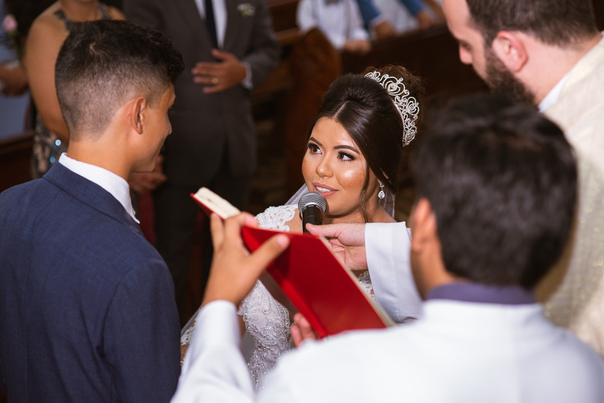A palavra foi maravilhosa e muito emocionante. Diversos momentos marcaram aquela celebração, tanto que pelas fotografias vocês poderão ver a emoção em cada detalhe. Larissa e Vítor receberam a bênção nupcial e trocaram as alianças. Foram declarados casados perante Deus e as testemunhas. Além de receberem a comunhão, receberam a bênção de seus pais e padrinhos. Após a cerimônia linda, os noivos foram recebidos pelos padrinhos do lado de fora da belíssima Catedral. Comemorando juntos, os padrinhos, os noivos e todos os convidados se alegraram e celebraram a união dos dois.