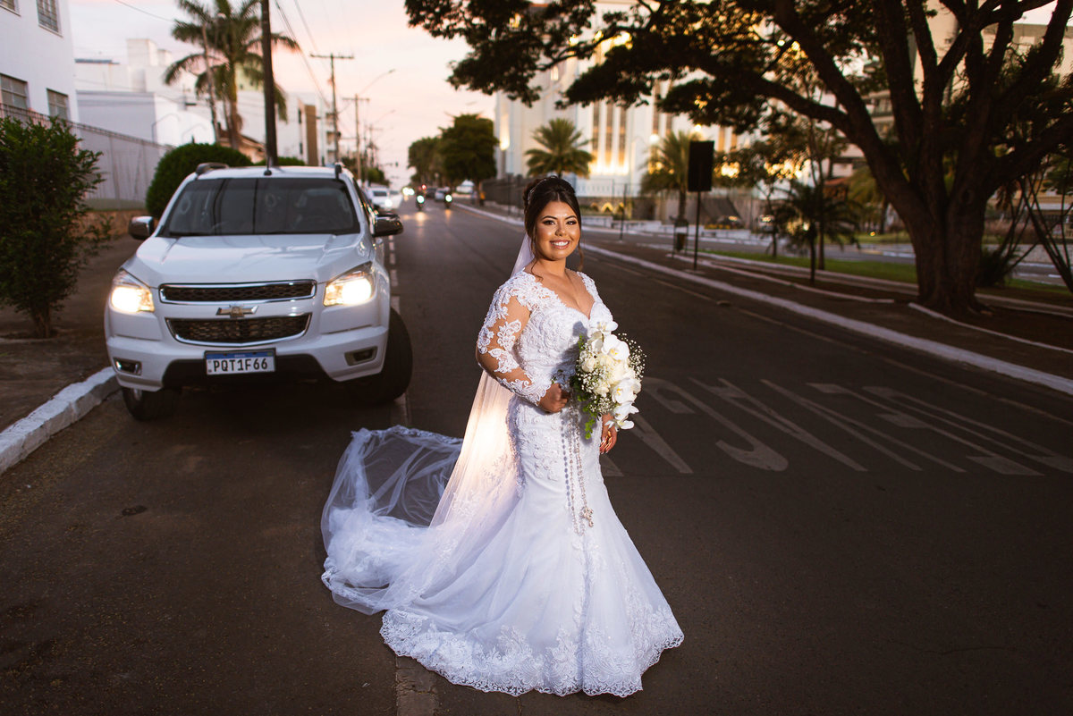 Paramos logo atrás da Igreja para fazermos um pequeno ensaio dos noivos. Os dois que já estão bem acostumados com o ensaio, fizeram o maior sucesso. Fizemos a sessão rapidamente e partimos para a recepção. Chegando na porta do Rotary, o céu estava daquele jeito alaranjado e maravilhosamente lindo. Paramos o carro e já solicitei que os dois descessem para finalizarmos com mais algumas fotos. Veja elas logo abaixo!