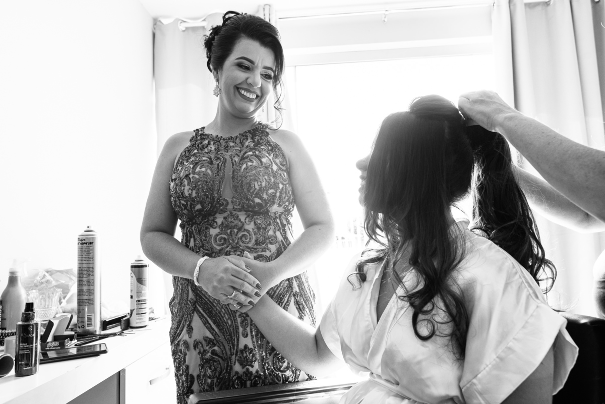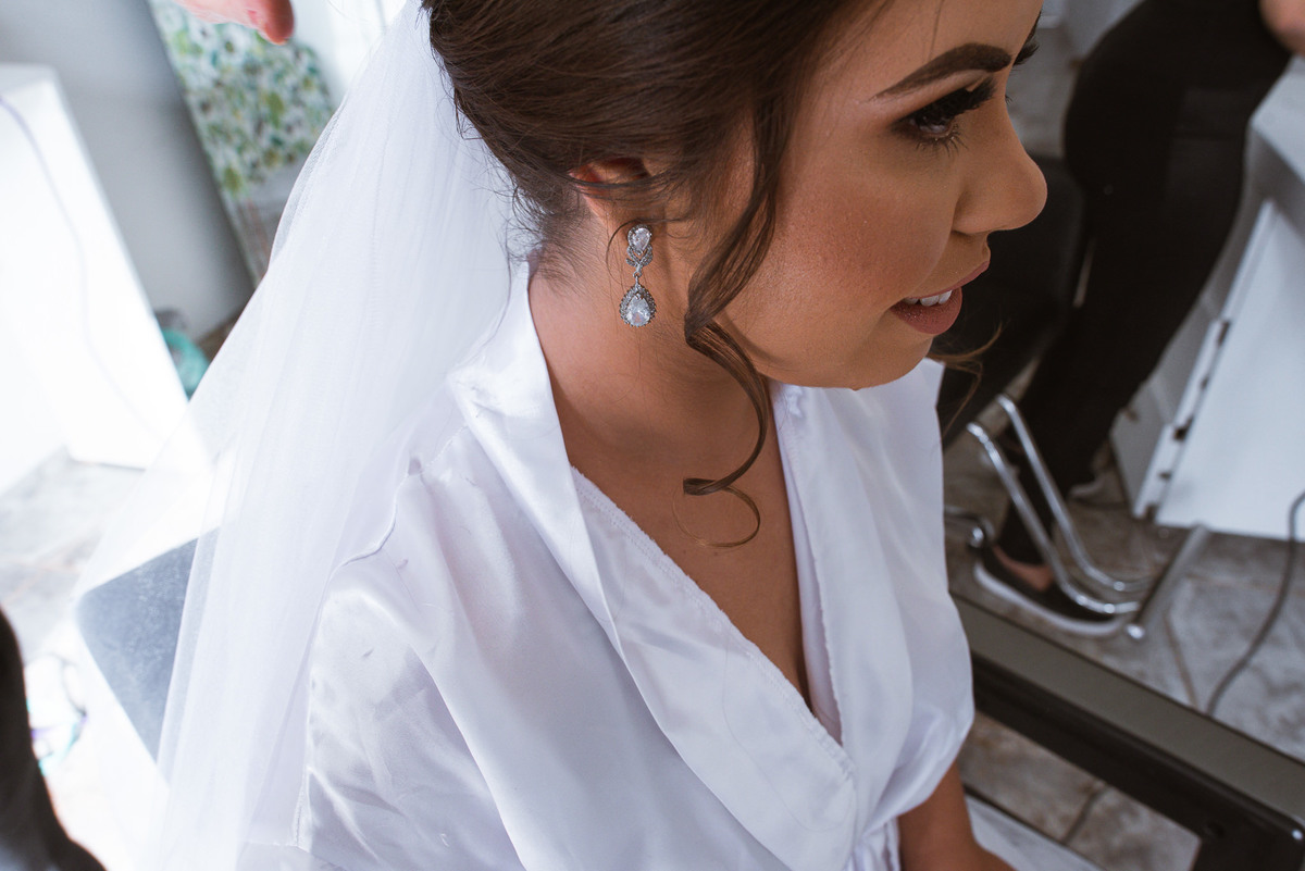 Larissa escolheu ser produzida pelas mãos da maquiadora Giovanna Gissoni e pelas mãos da cabeleireira Eliene Mota. Chegando no salão, Larissa estava rodeada de madrinhas, amigas e sua mãe. A noiva já é sorridente e simpática por natureza, mas nesse dia ela estava ainda mais feliz. As madrinhas que a acompanharam durante o making of também eram só sorrisos. A felicidade inundou aquele lugar de uma forma muito especial. A mãe da noiva também estava com os olhinhos brilhando em todo tempo. Ela parecia se ver no lugar da filha, foi emocionante ver o carinho de uma com a outra.