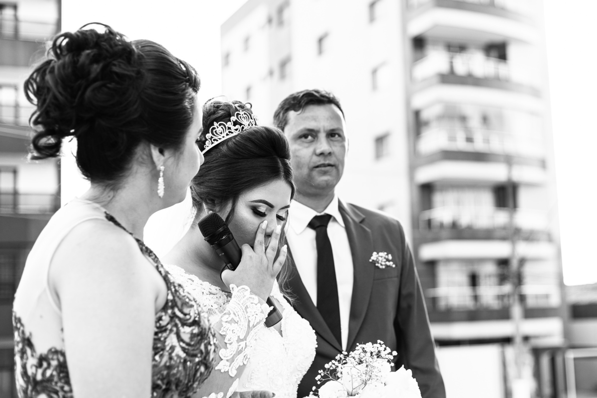Quando as portas se abrem, surge a noiva de braços dados com seus pais e cantando lindamente para sua própria entrada. A emoção bateu forte e muitos convidados não conseguiram segurar as lágrimas e se emocionaram fortemente. Aquela cena ali ficará gravada na minha memória. Lembro direitinho de como as portas foram lentamente se abrindo e revelou Larissa cantando tão lindamente que quando olhei para o noivo, ele também estava com lágrimas no rosto. Os olhos brilhando e o olhar fixo para a sua noiva fecharam aquela cena como uma das mais memoráveis que já presenciei.