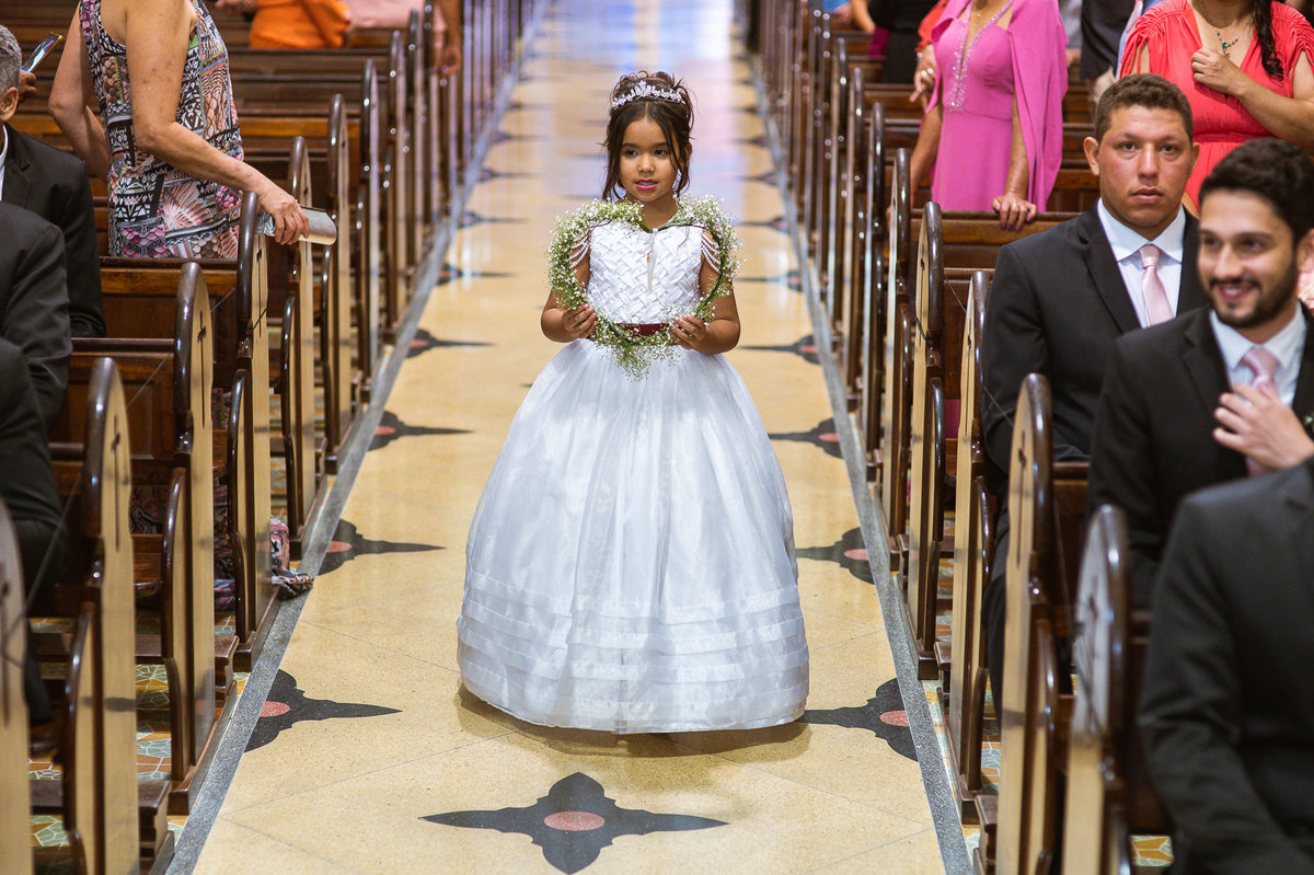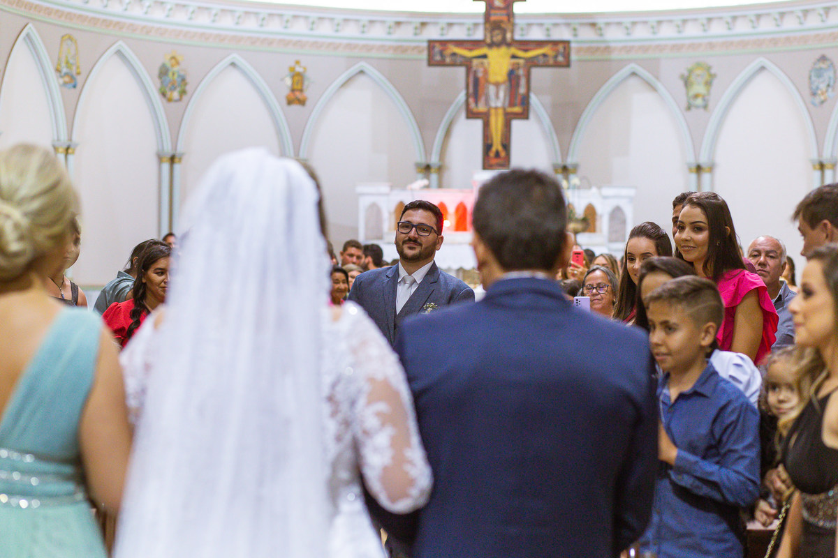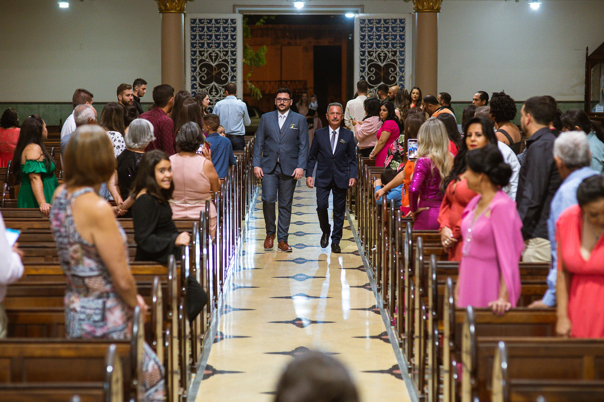 Padrinhos, pajens e o noivo fizeram suas entradas triunfais. Cada um com suas particularidades. Tiago se despediu do seu pai com um forte abraço, logo ali pertinho do altar. Com os olhos fitos na porta, ele aguardou com o coração nas mãos que sua amada aparecesse ali lindamente. As portas da igreja foram fechadas para que a noiva se posicionasse e finalmente pudesse entrar. Do lado de fora, Larissa estava de braços dados com seus pais. Com um beijo carinhoso no rosto, cada um deles se mostrava feliz e emocionado com aquele momento. A marcha nupcial foi entoada e logo as portas se abriram.