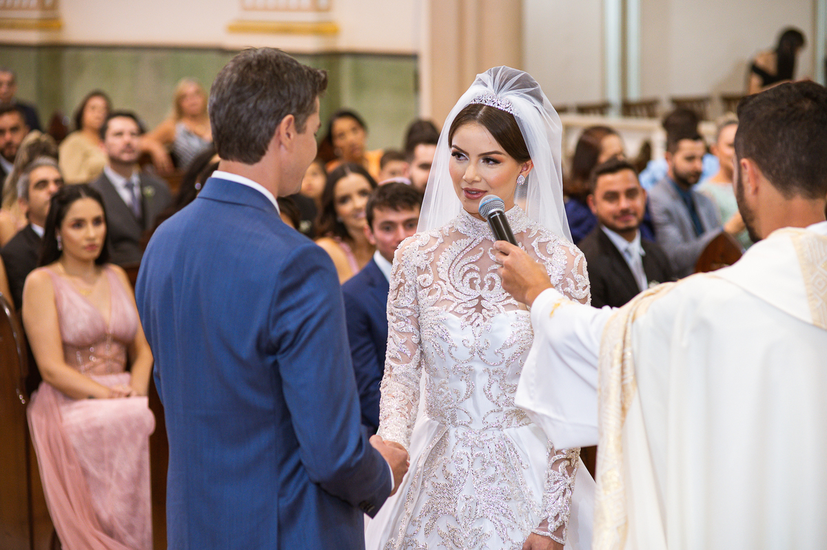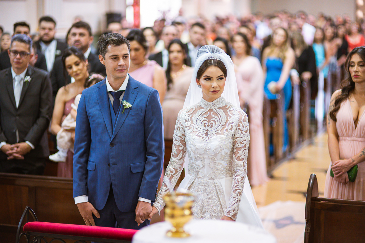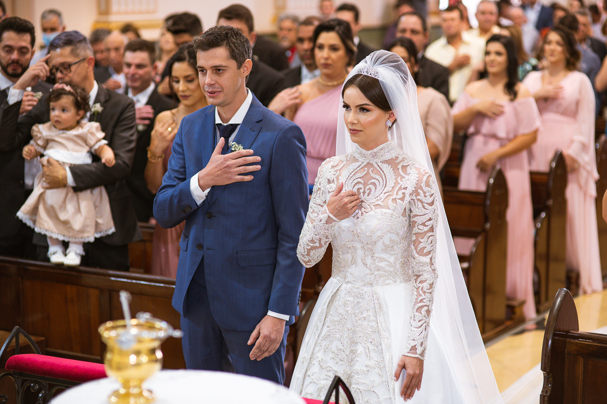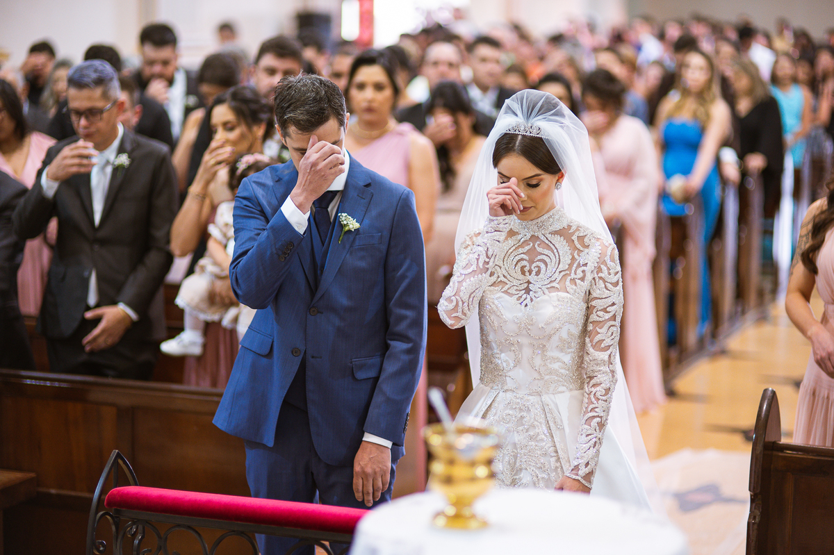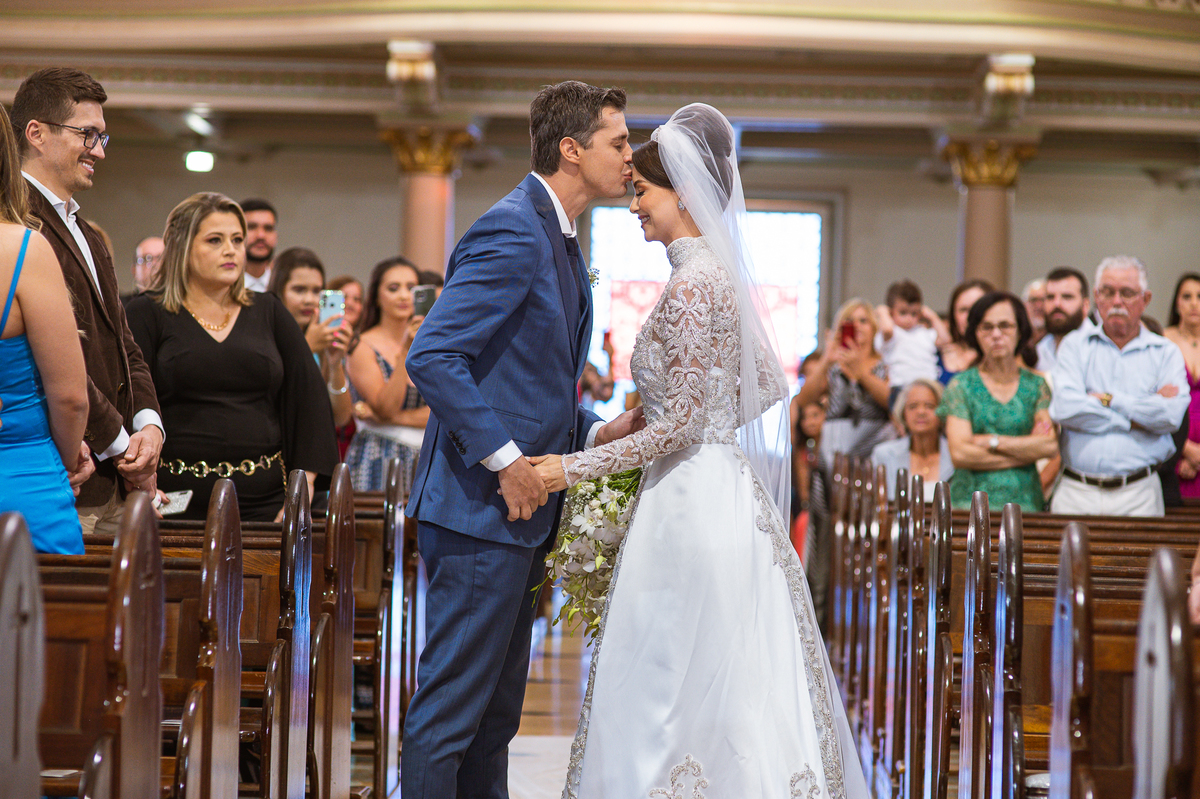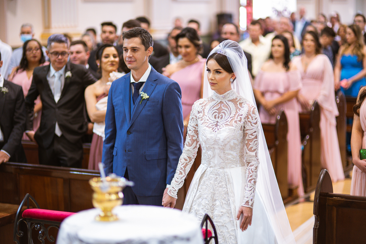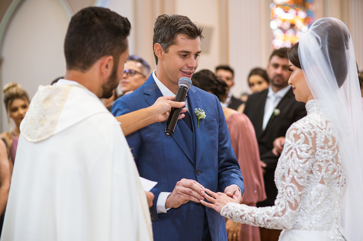 A celebração foi maravilhosa e muito emocionante. Logo após a homilia, o padre surpreendeu à todos pedindo que os noivos agradecessem aos seus pais por terem cuidado deles até aquele momento. Depois, ele pediu que os a noiva abraçasse os pais do noivo e também agradecesse à eles por cuidar de seu noivo até aquele momento e com o noivo da mesma forma. Foi uma parte muito emocionante e gratificante. Poucos minutos antes, na entrada de Martius, ele fez questão de abraçar e se despedir dos seus pais e foi do outro lado e abraçou a mãe da noiva que estava ali. Então foi algo muito bacana que o padre realizou. Quebrou um pouco toda aquela rigidez que a celebração tem.