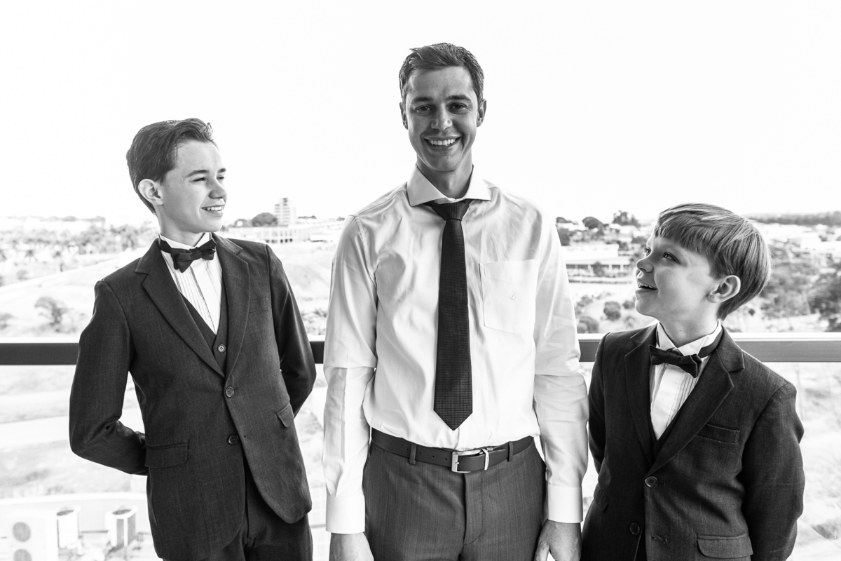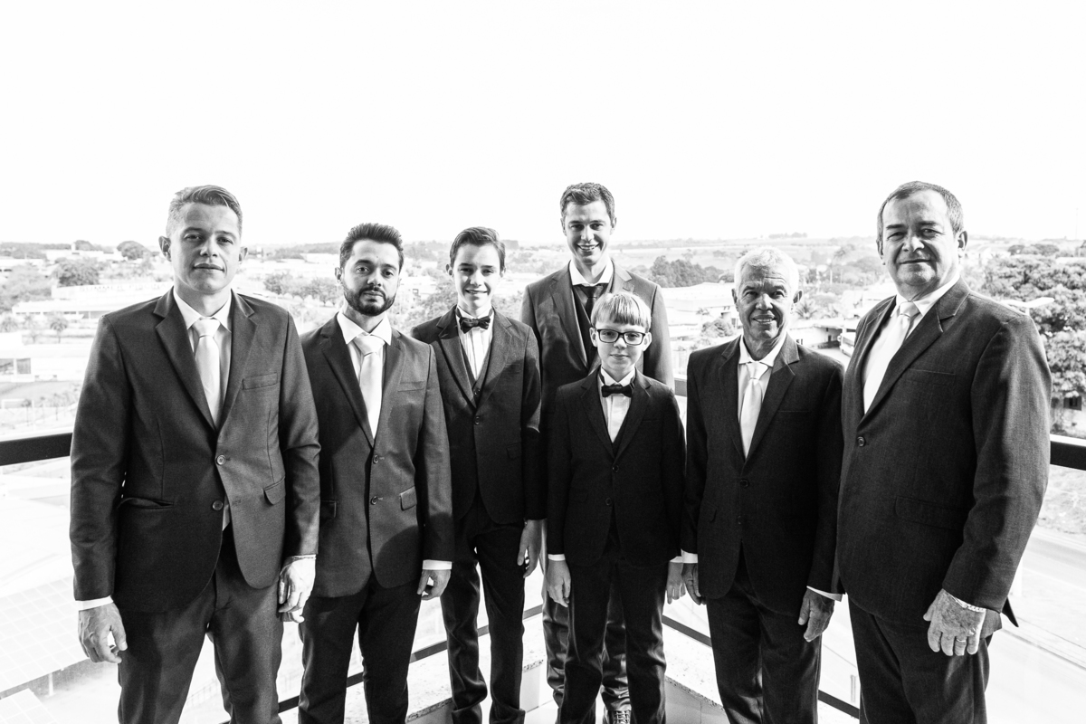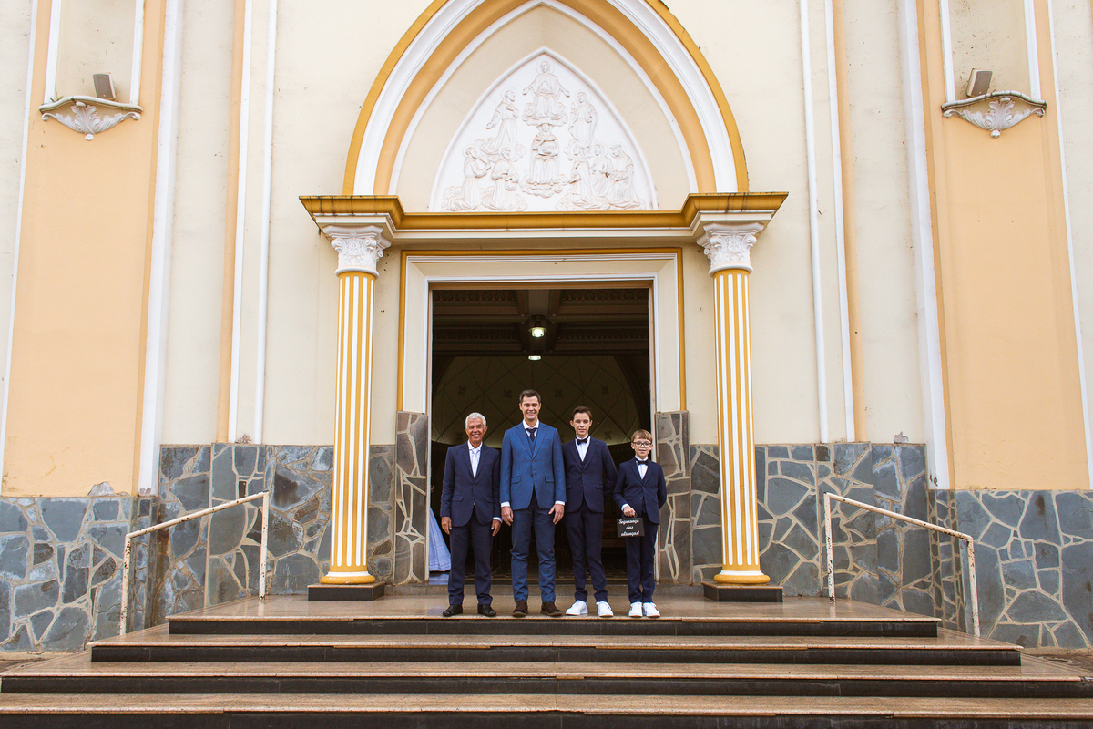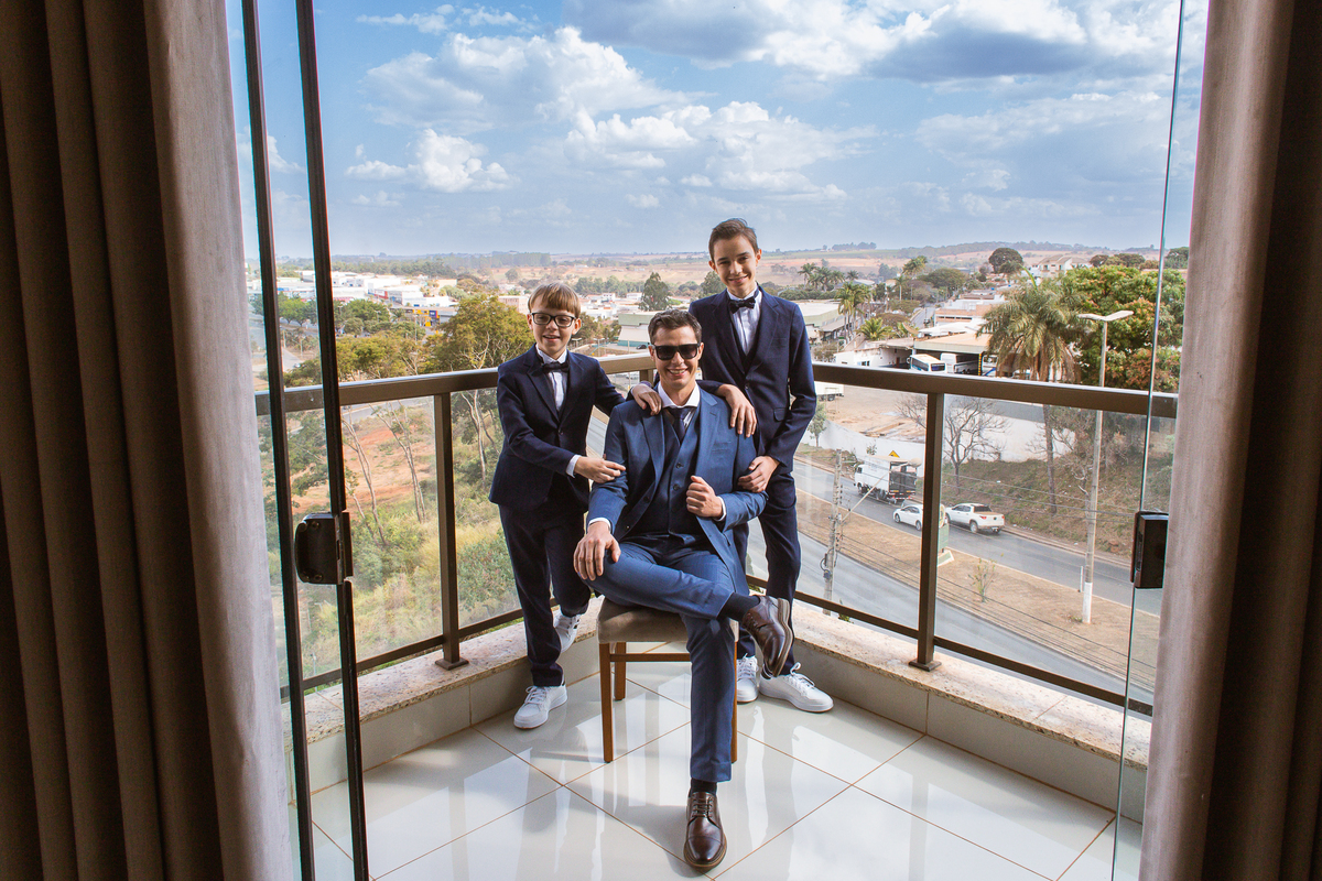 Do outro lado da cidade, Martius se reuniu com alguns padrinhos e seus filhos para juntos se aprontarem para o grande dia. E com a ajuda dos meninos, o noivo vestiu o seu terno e em meio à muita diversão, os padrinhos o acompanharam durante esse momento. Uma parte bem divertida foi o noivo tentar ajudar um padrinho com a gravata, mas sem se lembrar como fazer o nó, ele procurou um tutorial na internet pra conseguir ajudar. Assim, finalizando a sessão de fotos eles foram para a cerimônia.
