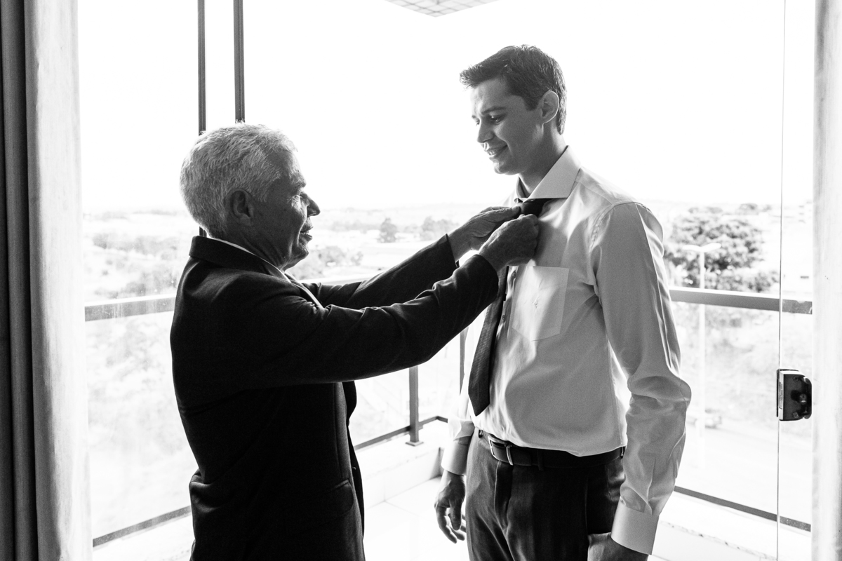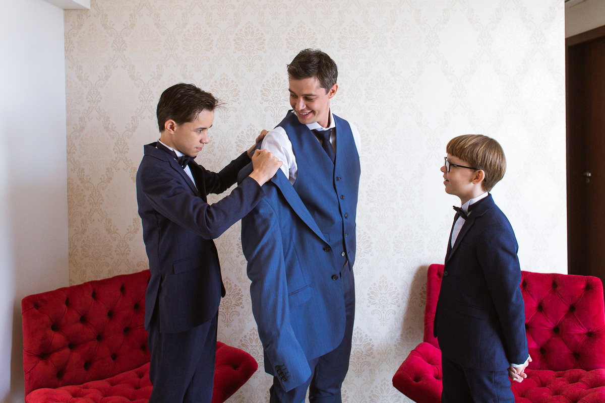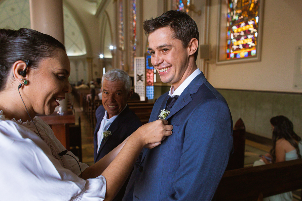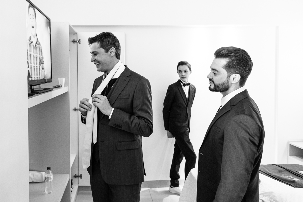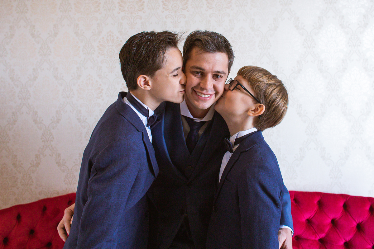 Do outro lado da cidade, Martius se reuniu com alguns padrinhos e seus filhos para juntos se aprontarem para o grande dia. E com a ajuda dos meninos, o noivo vestiu o seu terno e em meio à muita diversão, os padrinhos o acompanharam durante esse momento. Uma parte bem divertida foi o noivo tentar ajudar um padrinho com a gravata, mas sem se lembrar como fazer o nó, ele procurou um tutorial na internet pra conseguir ajudar. Assim, finalizando a sessão de fotos eles foram para a cerimônia.