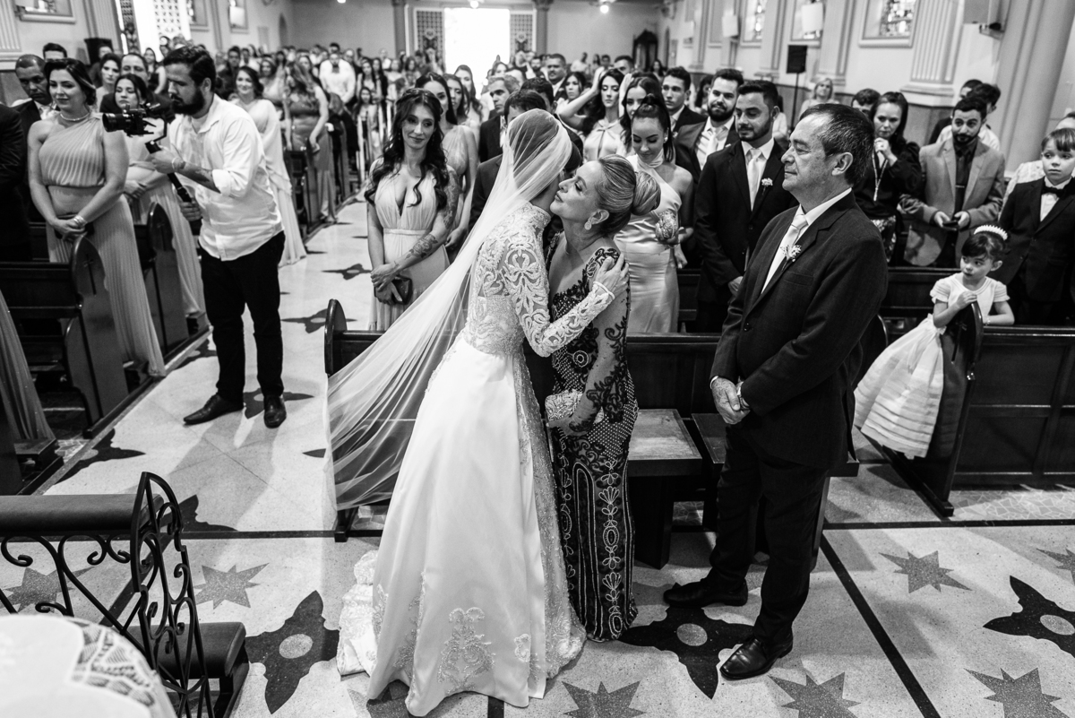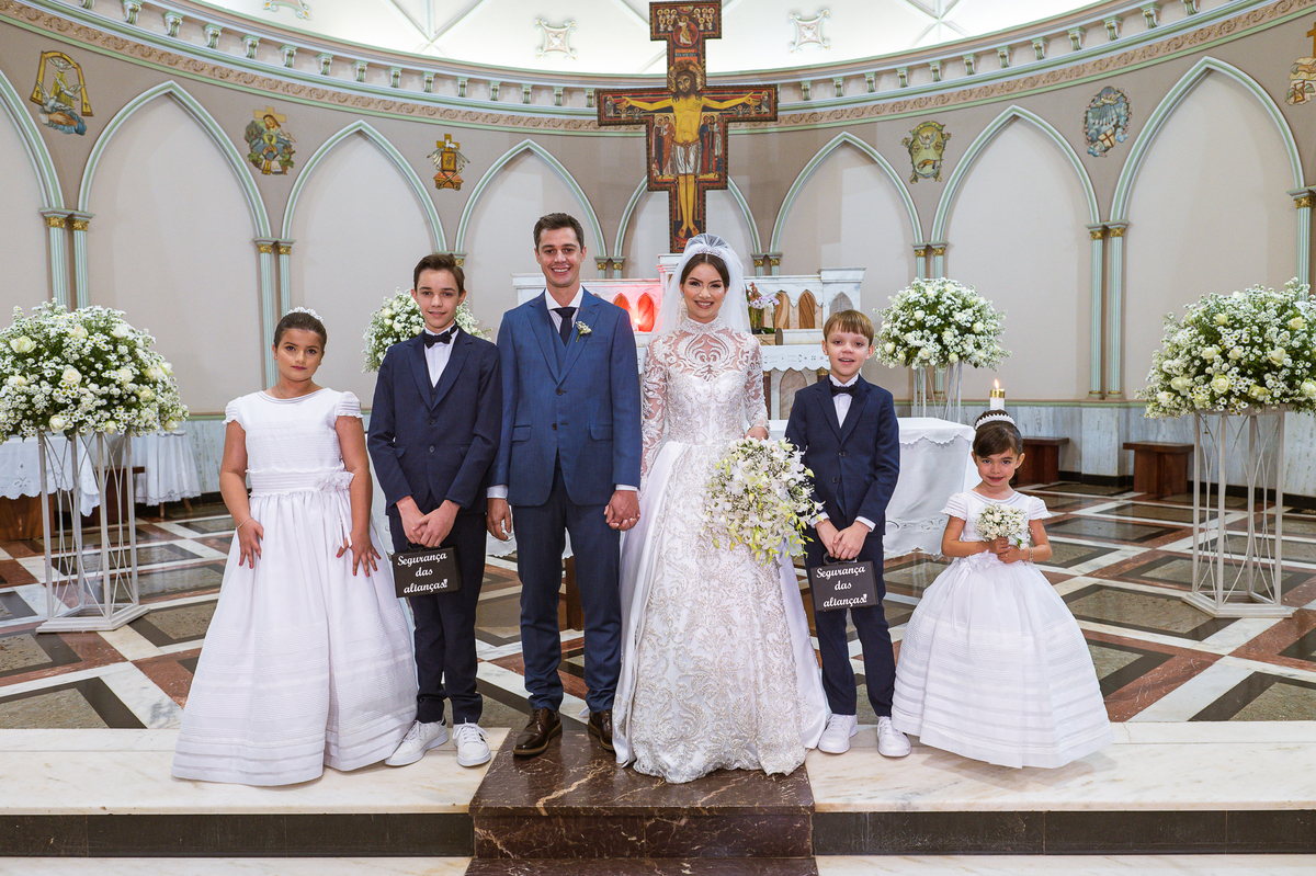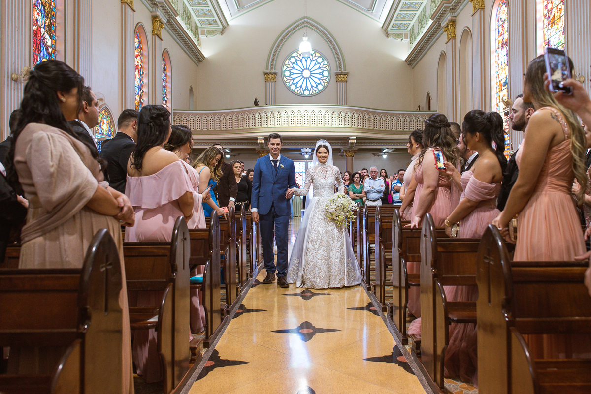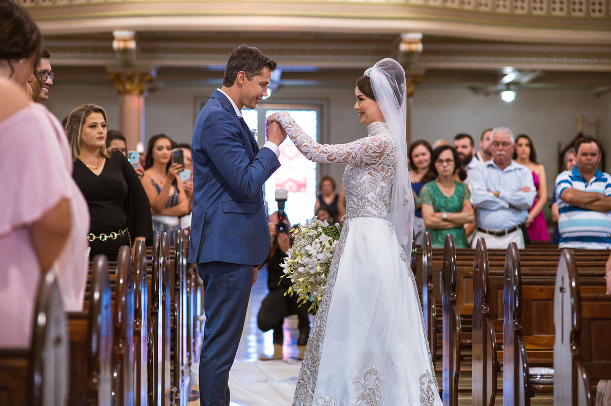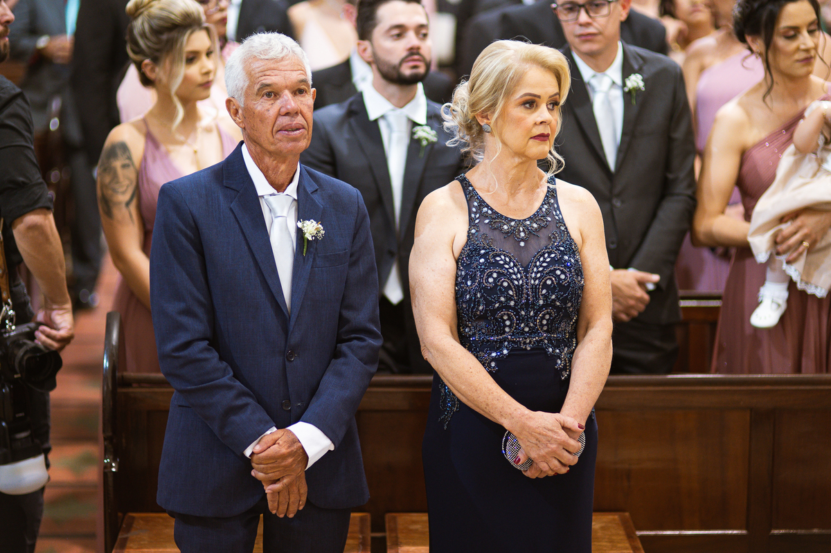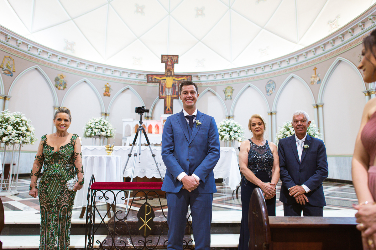 Os músicos do Som do Coração já estavam preparados aguardando o início da celebração. Aos pouquinhos, a fila dos padrinhos e os últimos detalhes iam sendo realizados. Daniela Benhures que cuidou de todos os detalhes do casamento já estava com tudo prontinho e a cerimônia teve seu início imediato. Ariella estava ali no carro, aguardando o seu momento de brilhar. Enquanto isso, os padrinhos e o noivo adentravam embalados pelas músicas escolhidas a dedo pelos noivos. Quando as portas da Igreja se fecharam, a emoção tomou conta de todos. Do lado de fora, Humberto, o pai da noiva, foi até o carro ajudar sua filha a descer. Claro que não poderia faltar aquele último beijinho na mão e no rosto pra render aquela foto linda pro álbum.