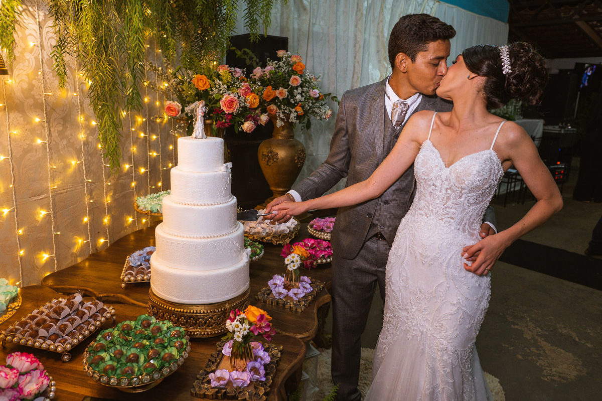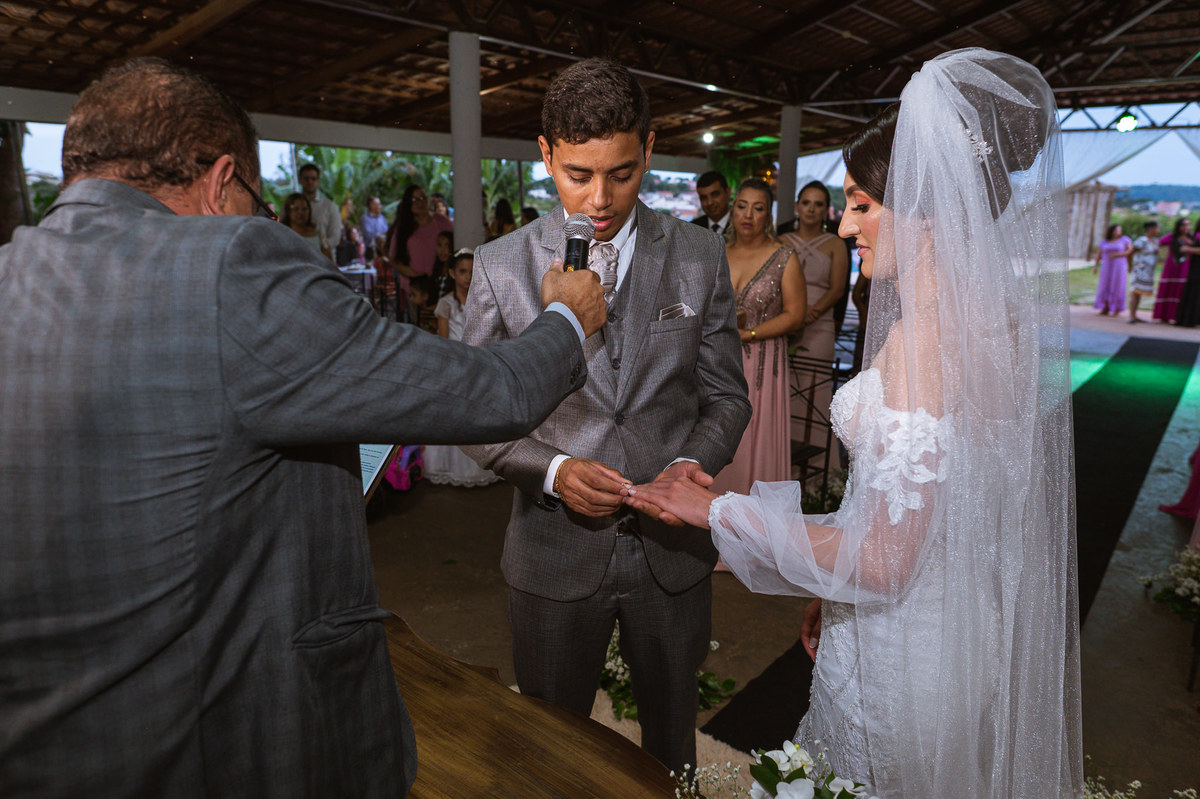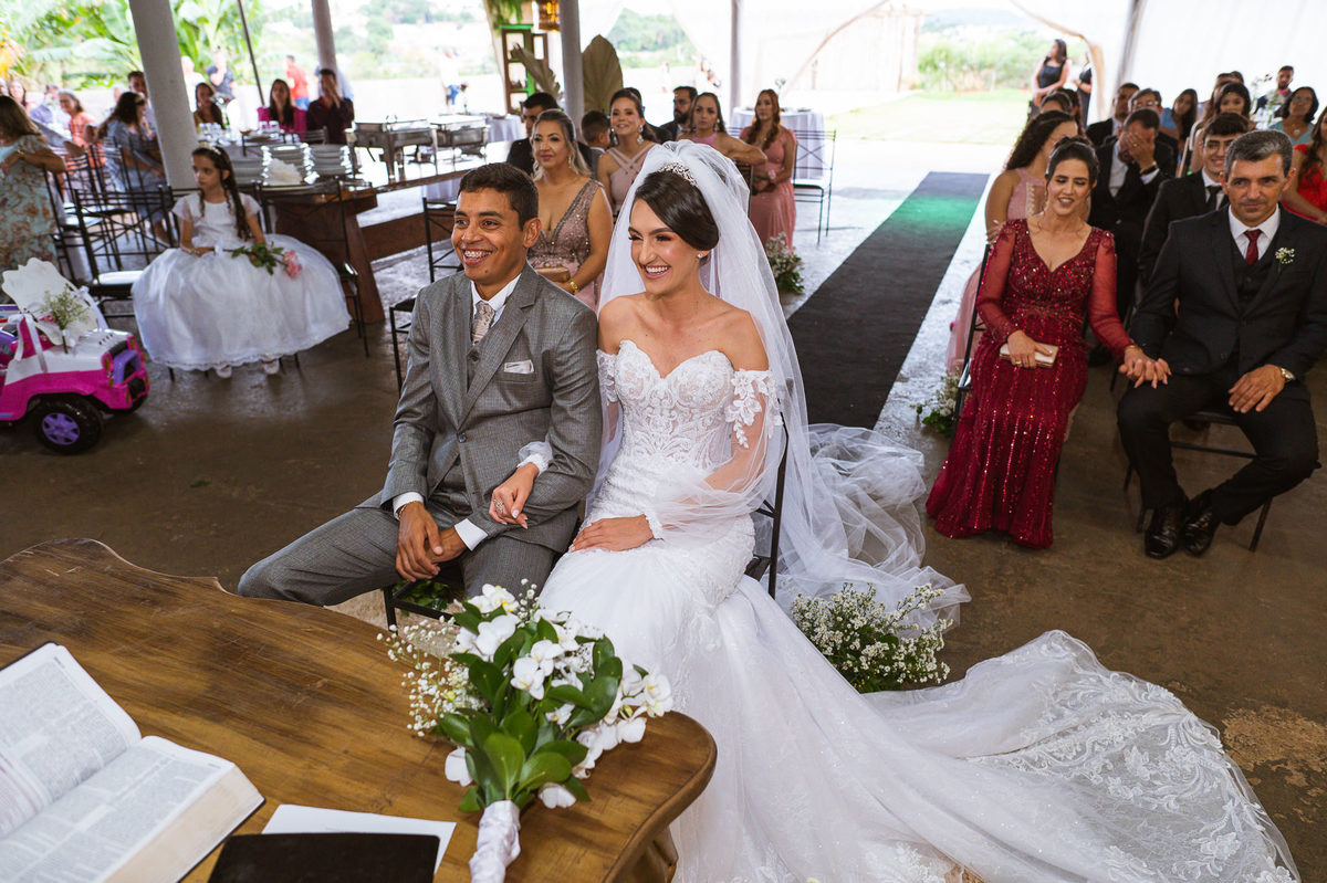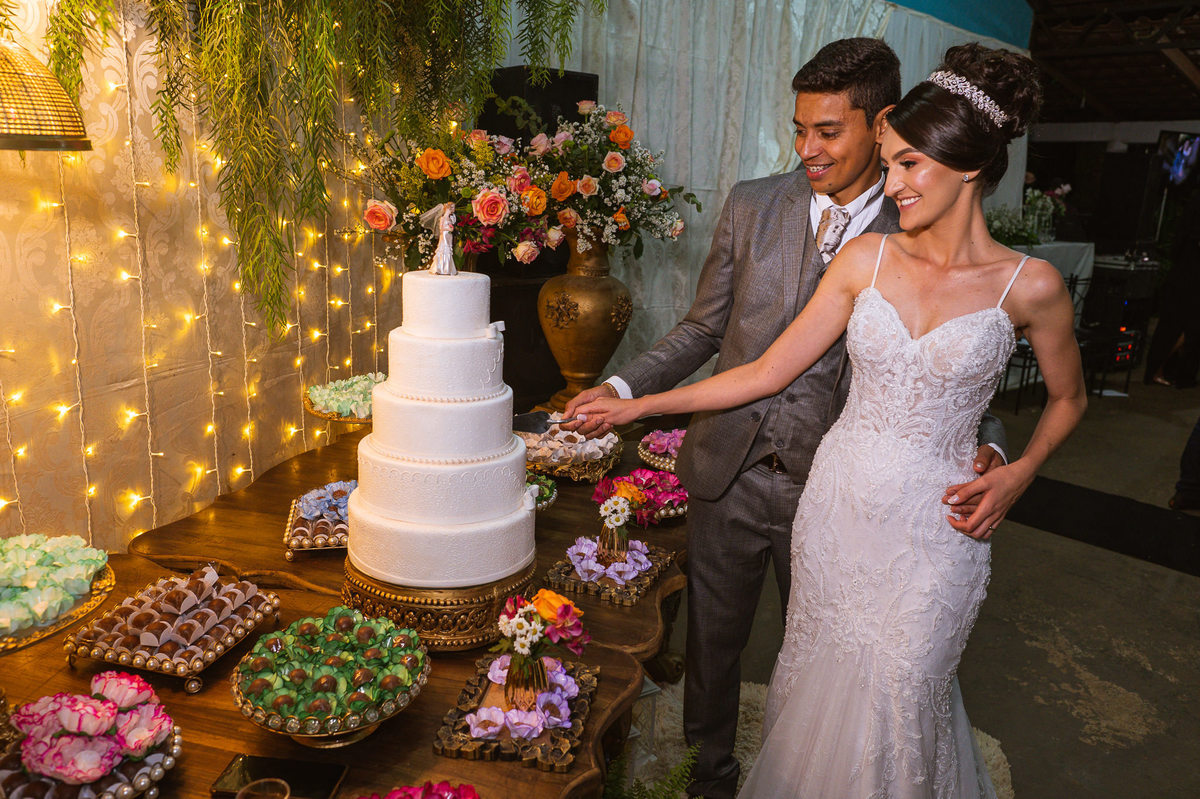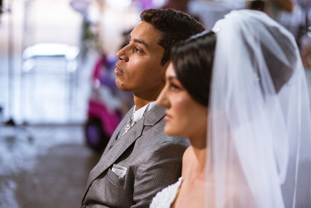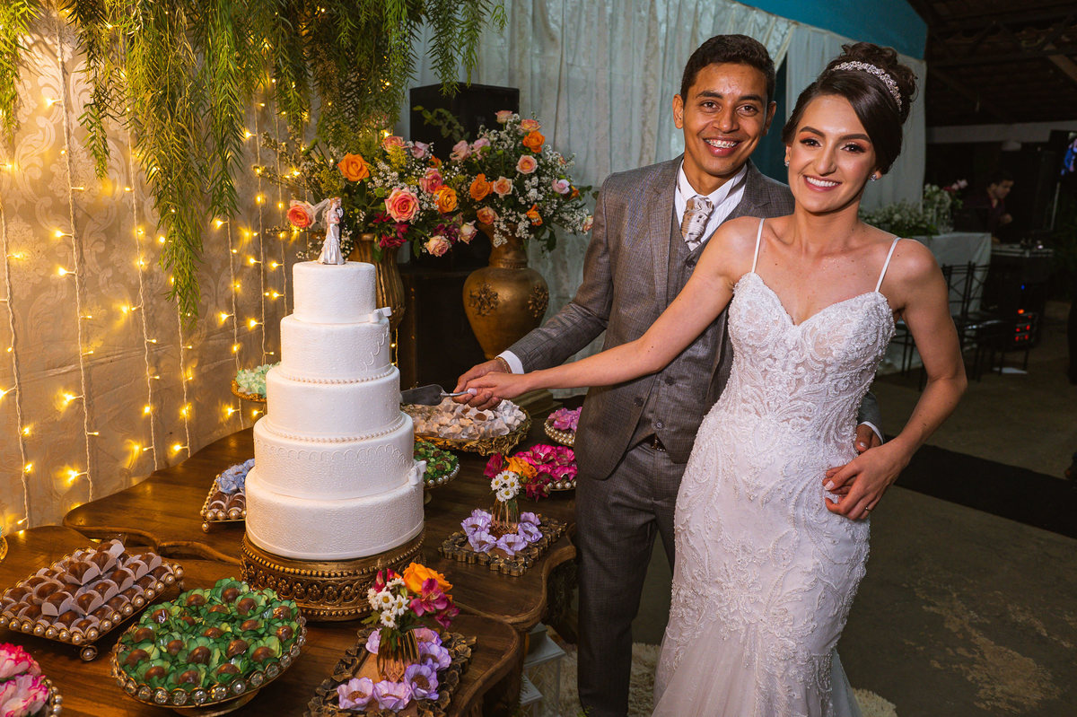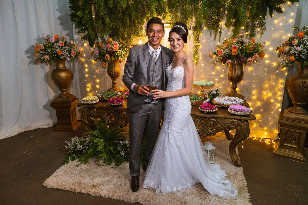 O Pastor os recepcionou e trouxe uma palavra muito edificante para os dois. Em muitos momentos, eles sorriram e se sentiram muito confortáveis com toda a pregação. Após a palavra, era chegada a hora de abençoar os noivos e fazer a troca de alianças e votos. Assim, os dois o fizeram. Perante Deus e as testemunhas, Camila e Weverson se declararam um ao outro e foram declarados casados e abençoados por todos. Finalizamos a celebração com as fotos e partimos para a recepção. Fizemos as fotos tradicionais no bolo e com todos que desejaram ser fotografados com os noivos. Eles curtiram aquele resto de noite e encerramos nossa participação no casamento.