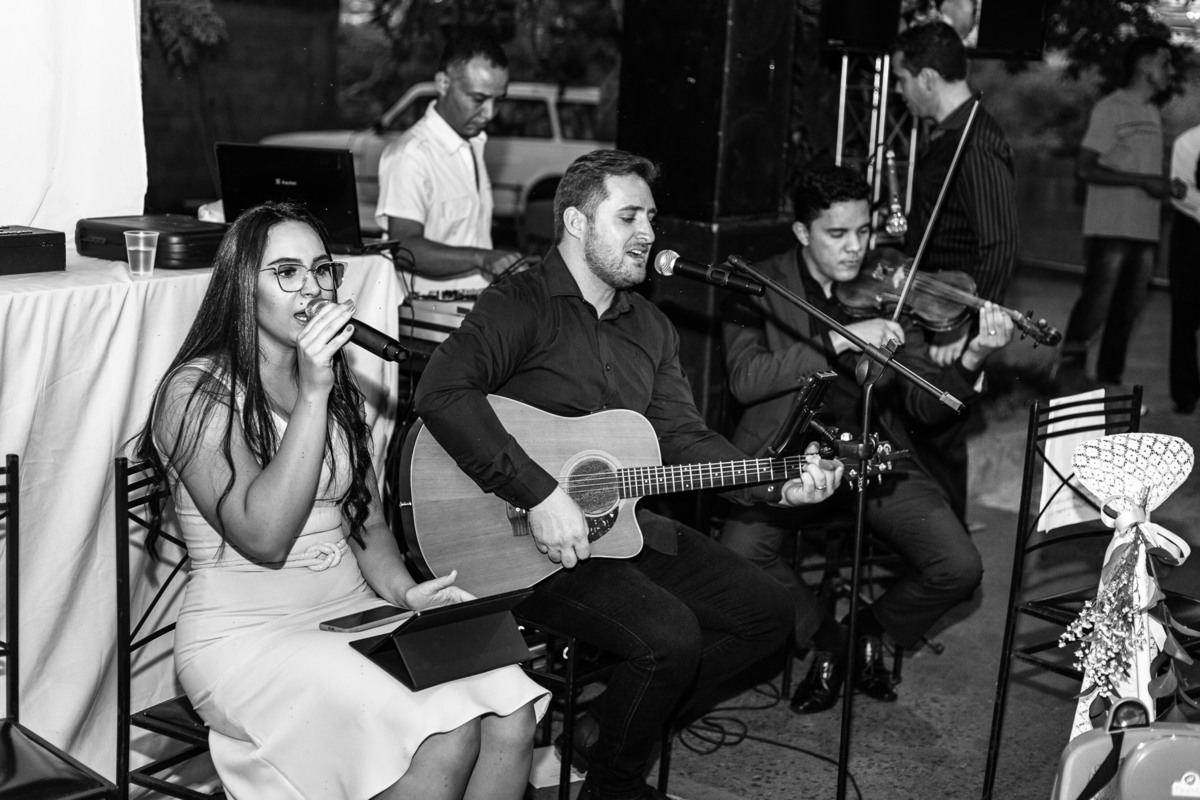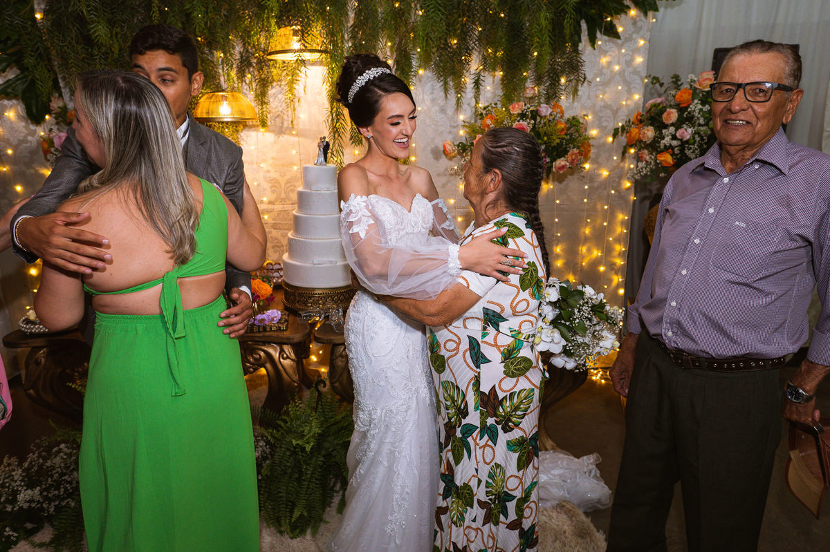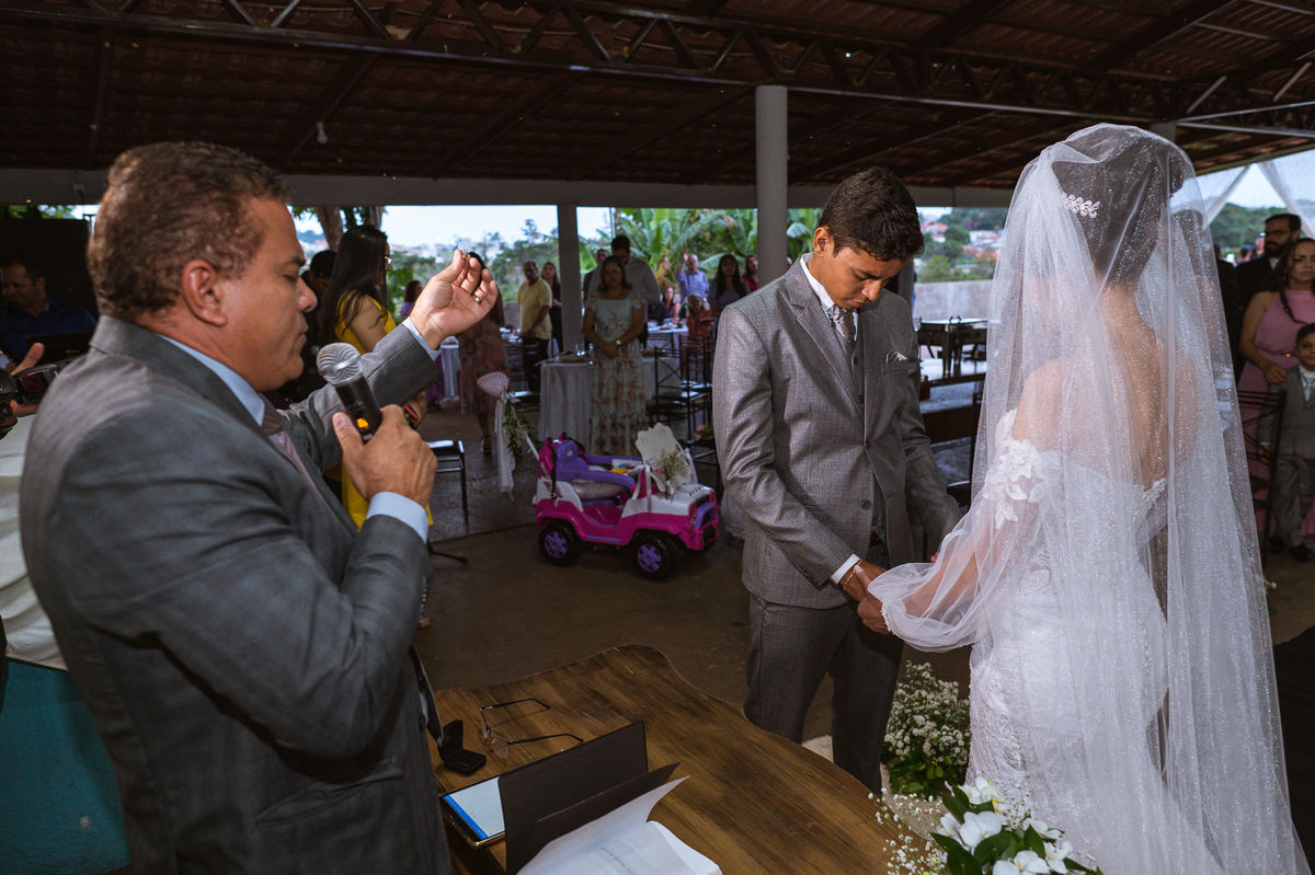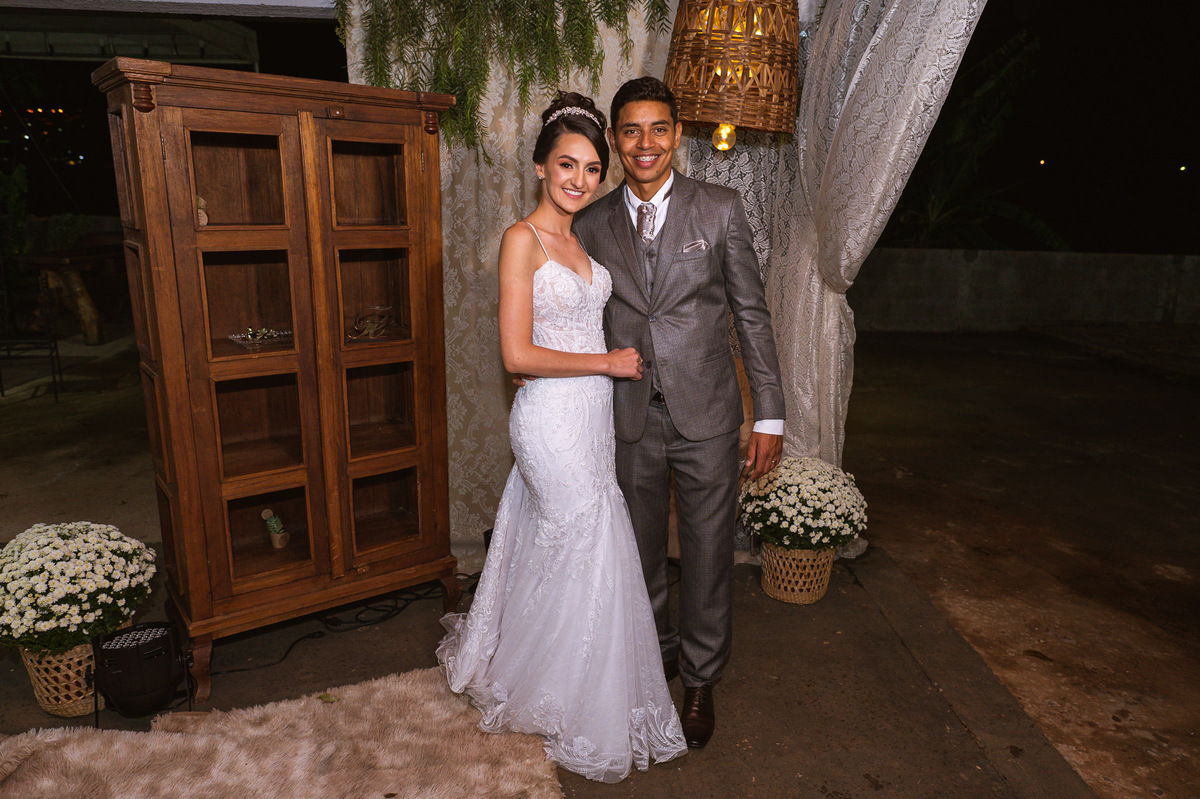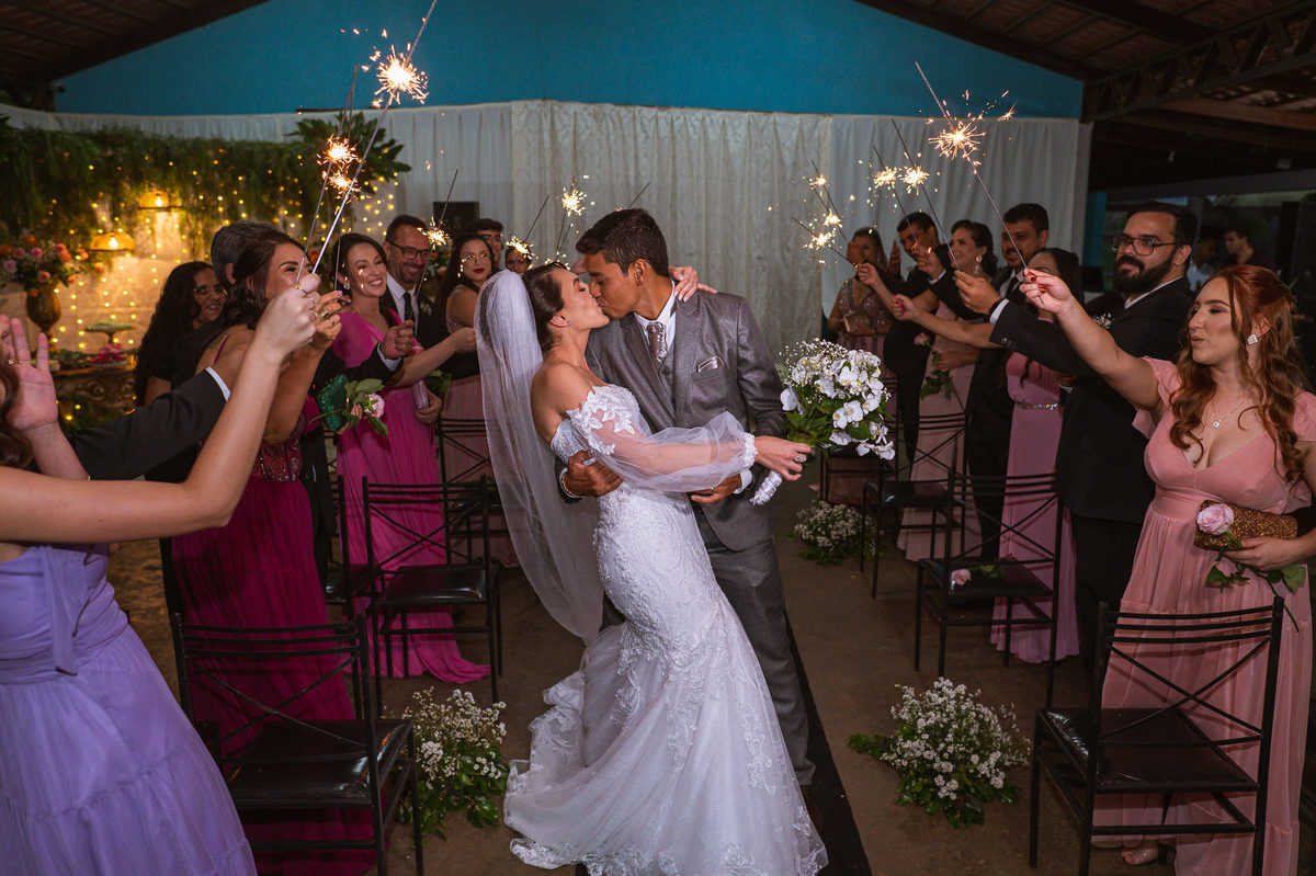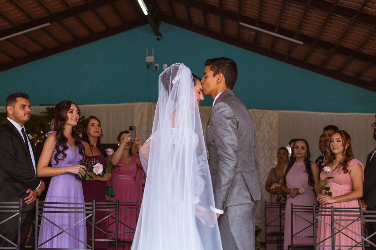O Pastor os recepcionou e trouxe uma palavra muito edificante para os dois. Em muitos momentos, eles sorriram e se sentiram muito confortáveis com toda a pregação. Após a palavra, era chegada a hora de abençoar os noivos e fazer a troca de alianças e votos. Assim, os dois o fizeram. Perante Deus e as testemunhas, Camila e Weverson se declararam um ao outro e foram declarados casados e abençoados por todos. Finalizamos a celebração com as fotos e partimos para a recepção. Fizemos as fotos tradicionais no bolo e com todos que desejaram ser fotografados com os noivos. Eles curtiram aquele resto de noite e encerramos nossa participação no casamento.