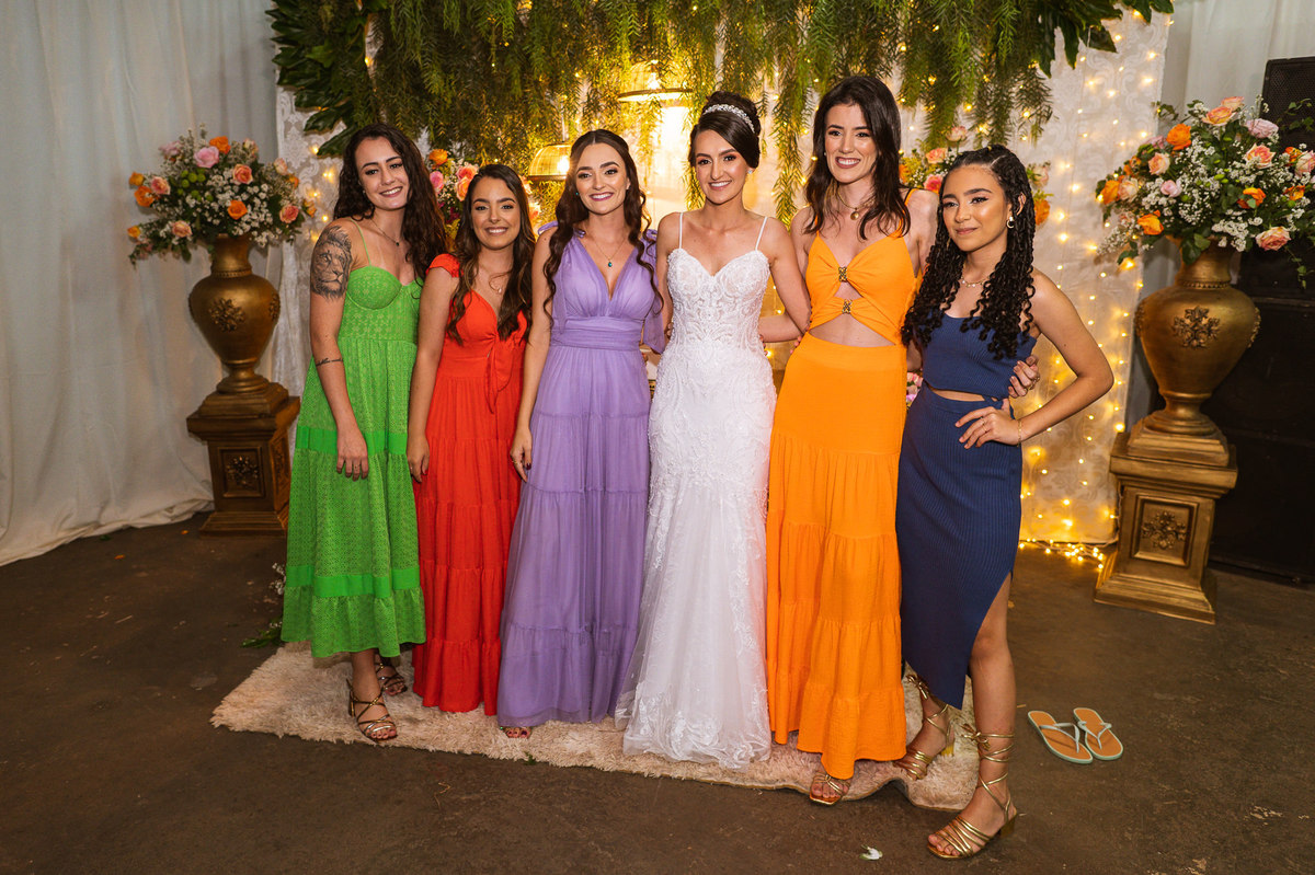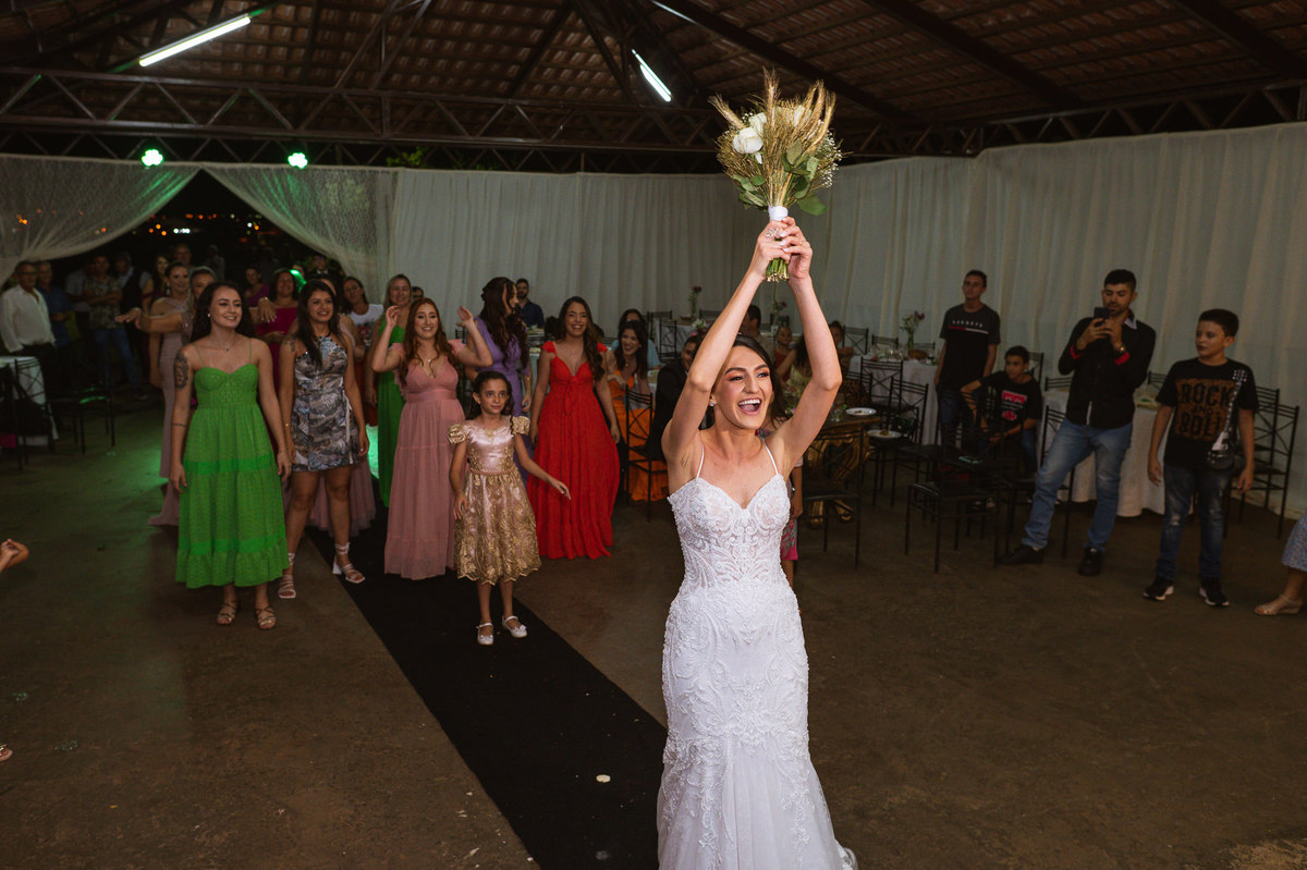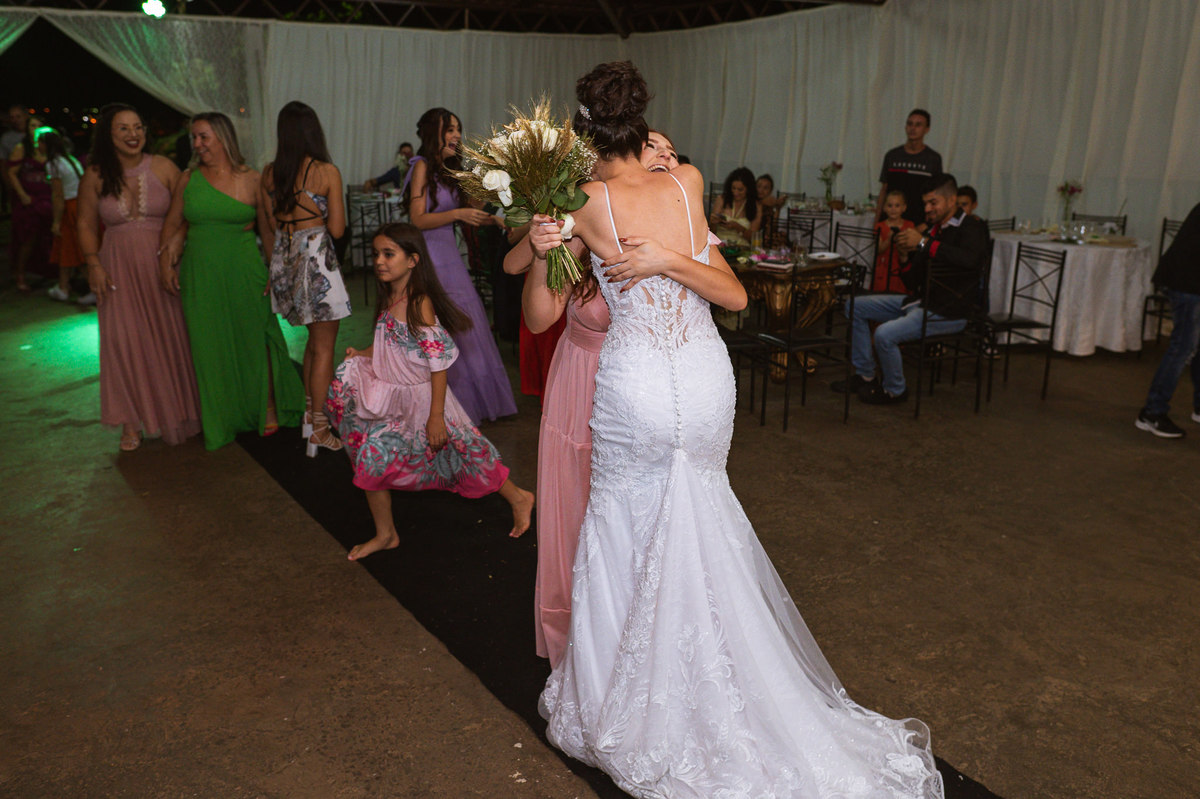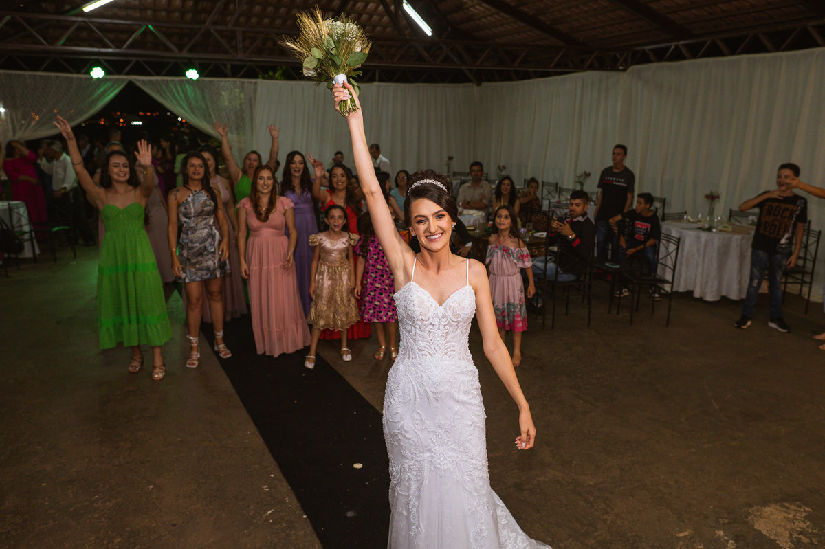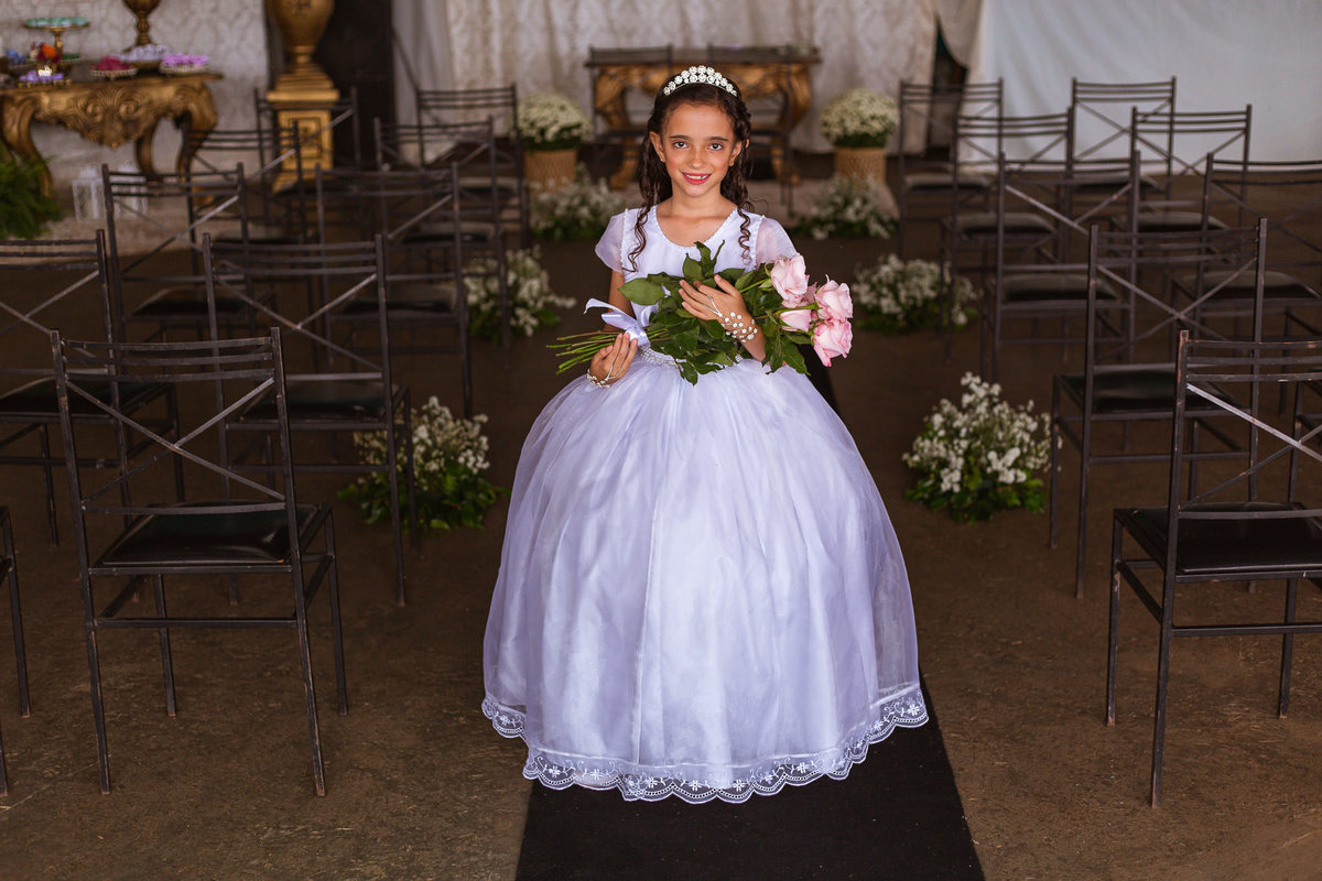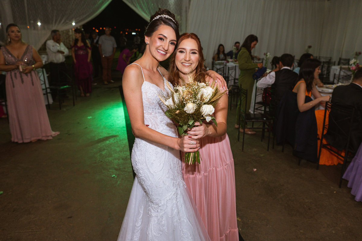 O vestido escolhido por ela veio assinado pela Hermanas Noivas e Festas. Um belíssimo modelo que a noiva escolheu com todo carinho. Ela mal conseguia aguardar para que chegasse o momento de vesti-lo. Os noivos optaram em realizar a cerimônia e recepção na chácara Espaço Real. Na chácara, Weverson já estava ansiosamente aguardando a chegada da sua noiva e início da celebração. Enquanto os convidados chegavam, o noivo cumprimentava e distribuía o sorriso meio contido que estampava o seu rosto naquele momento todo especial.