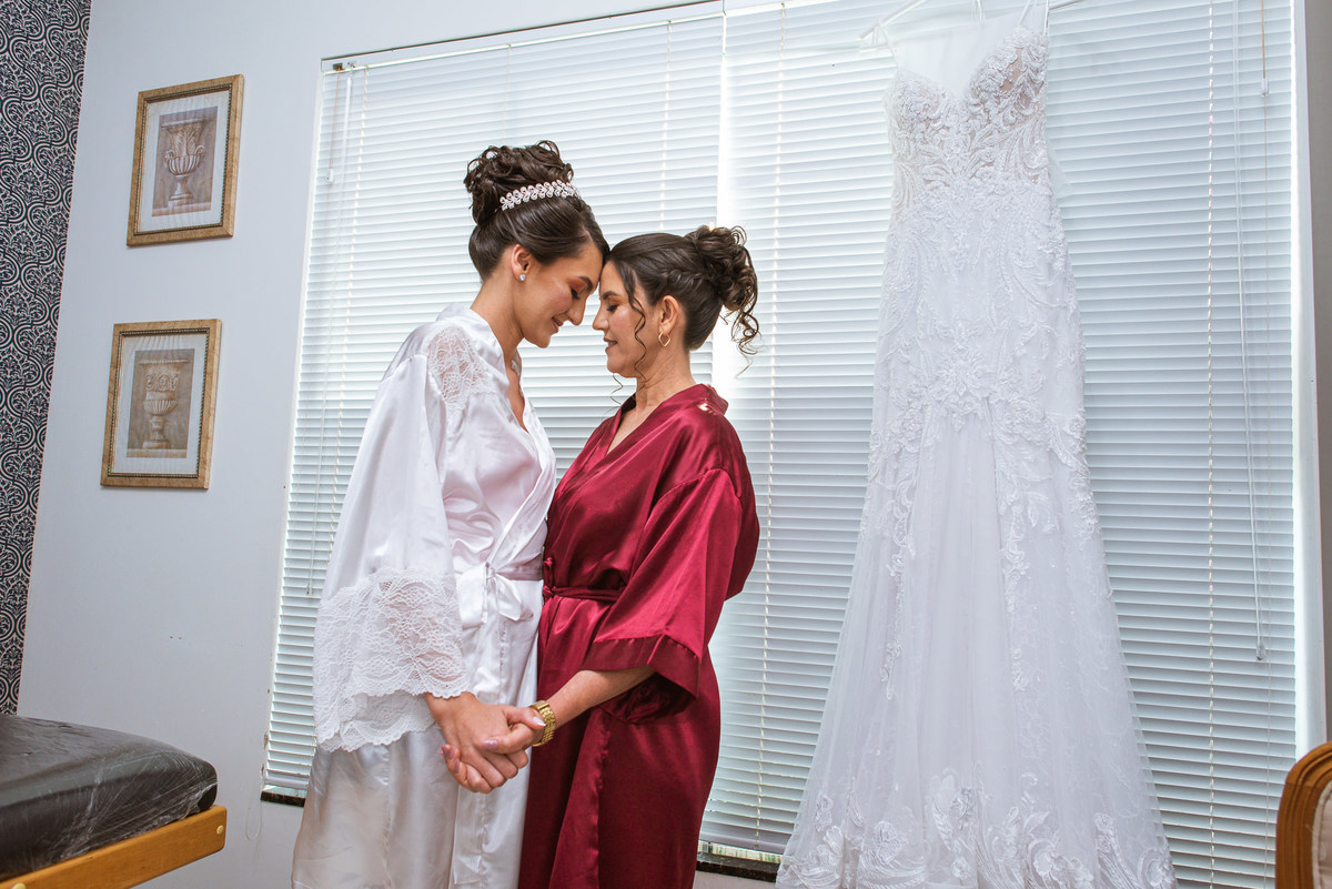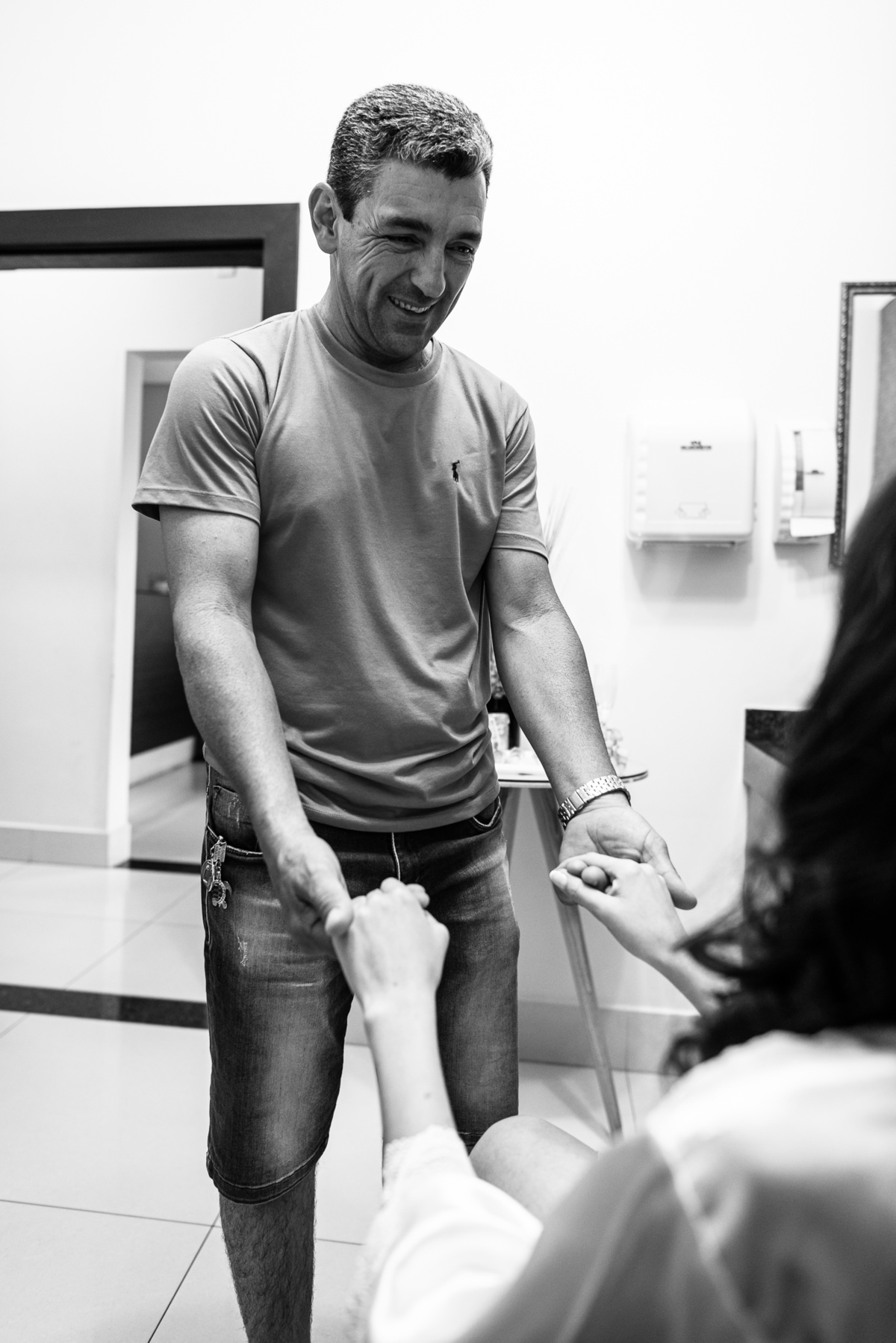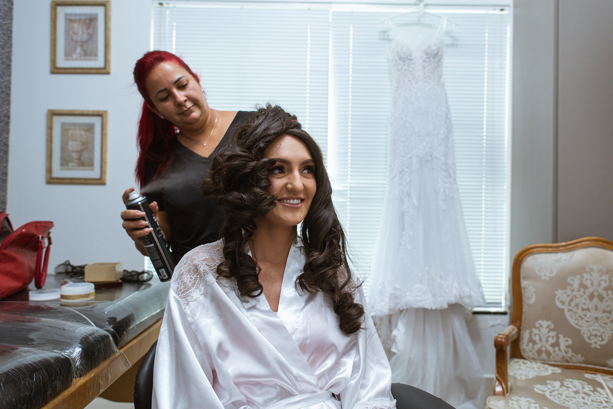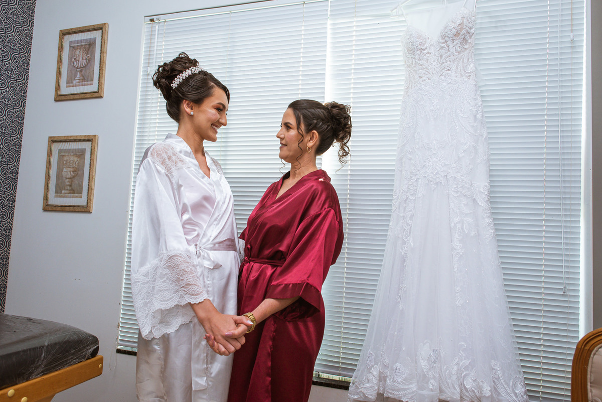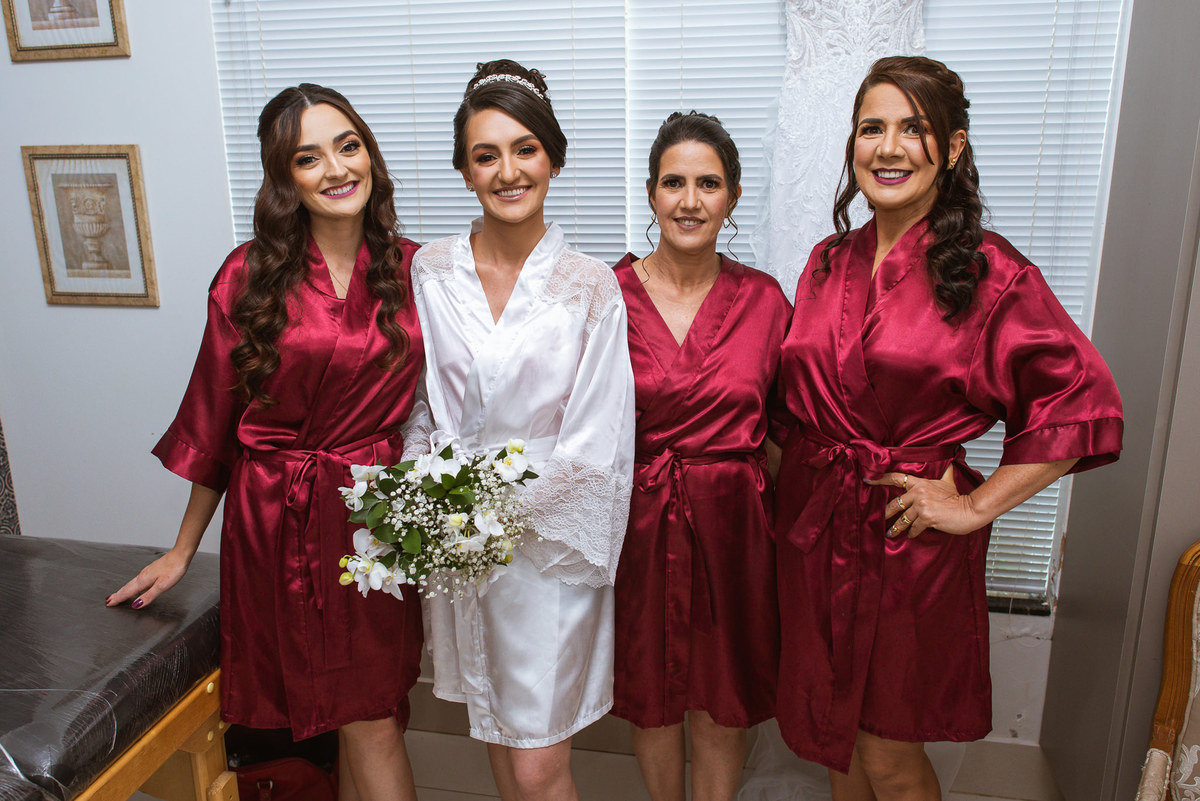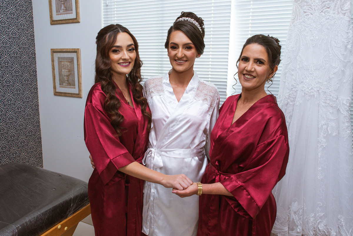 Ao chegar no local, Camila estava aguardando super tranquila o momento em que seu penteado seria produzido. Junto de sua mãe e sua tia, elas estavam bem descontraídas e se divertindo com toda a emoção daquele momento. O pai da noiva também compareceu trazendo o majestoso buquê de flores que a noiva levaria ao altar. Aproveitamos para registrar esse momento e demonstrar todo o carinho que eles tem um pelo outro. Enquanto a produção acontecia, Camila me contava sobre o quanto ela estava ansiosa no dia anterior, e naquele momento ali estava super tranquila, até estranhou toda aquela tranquilidade.