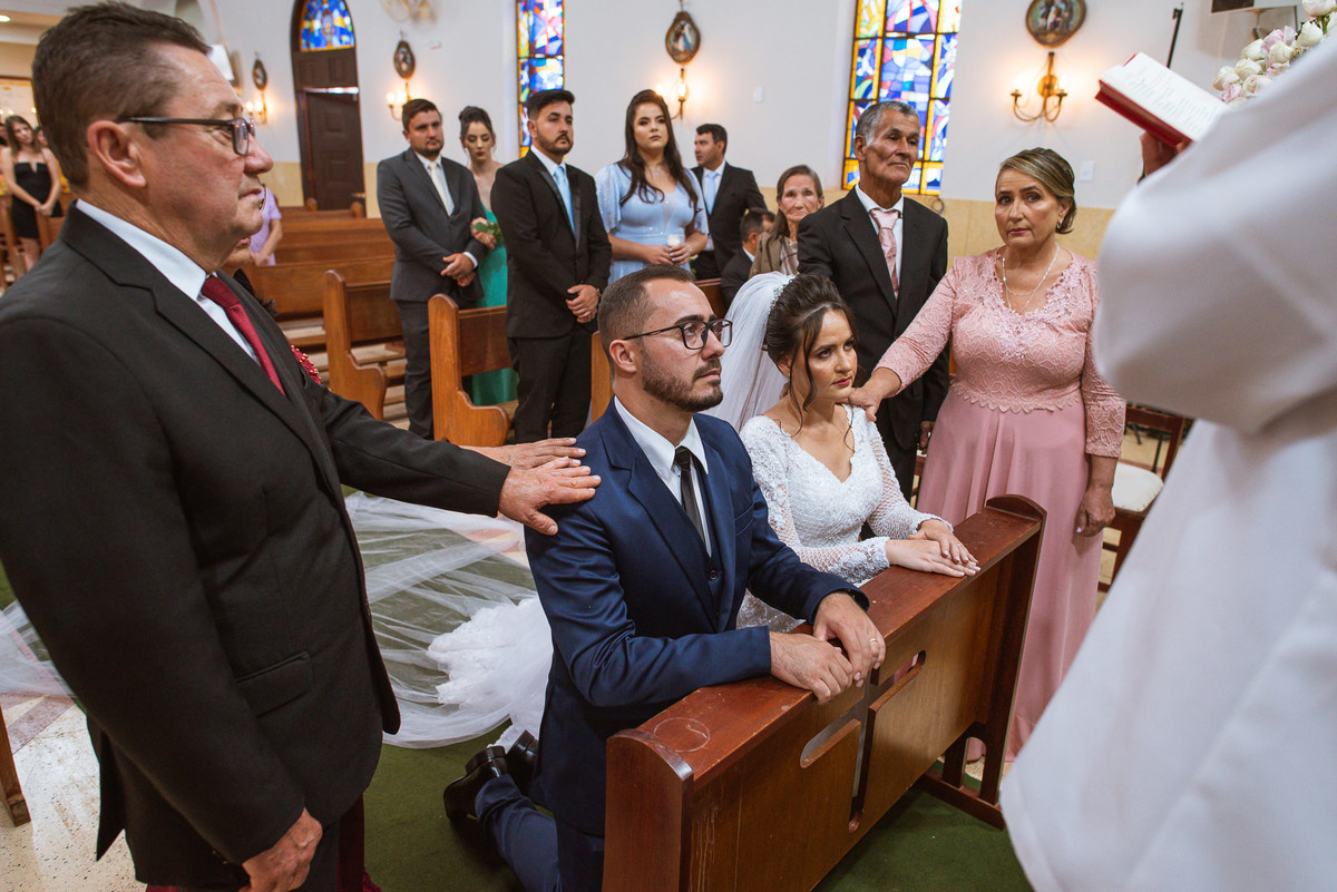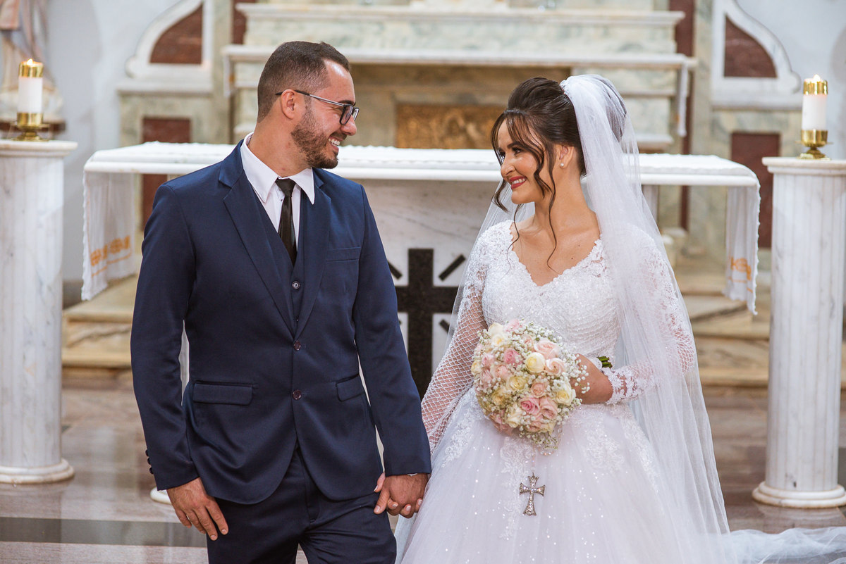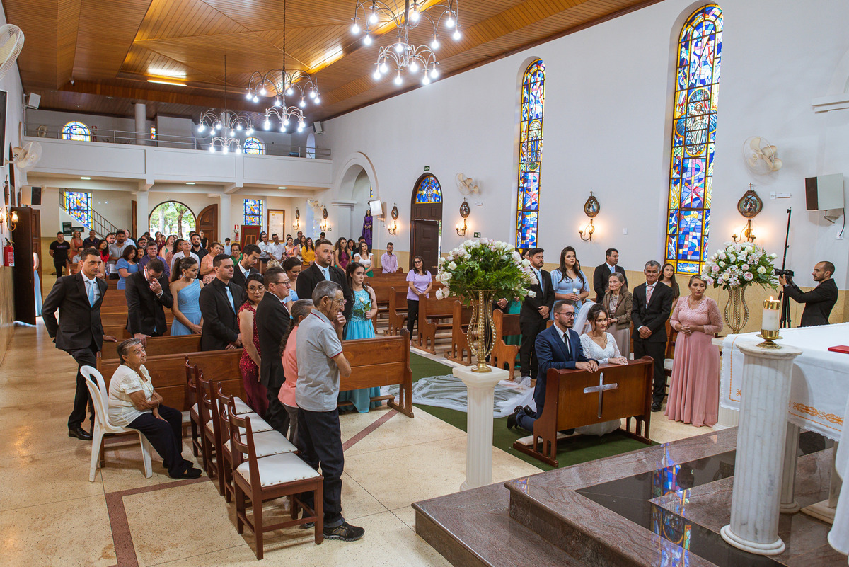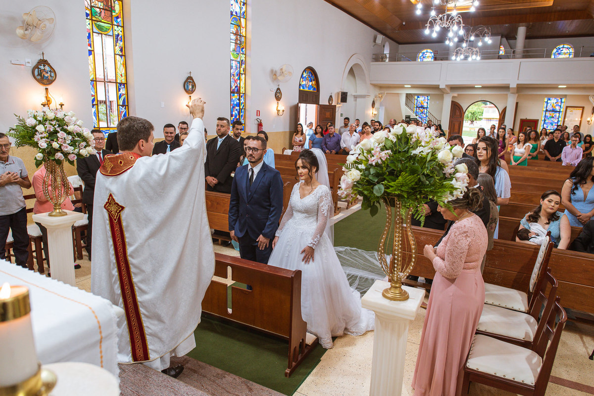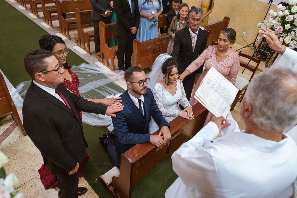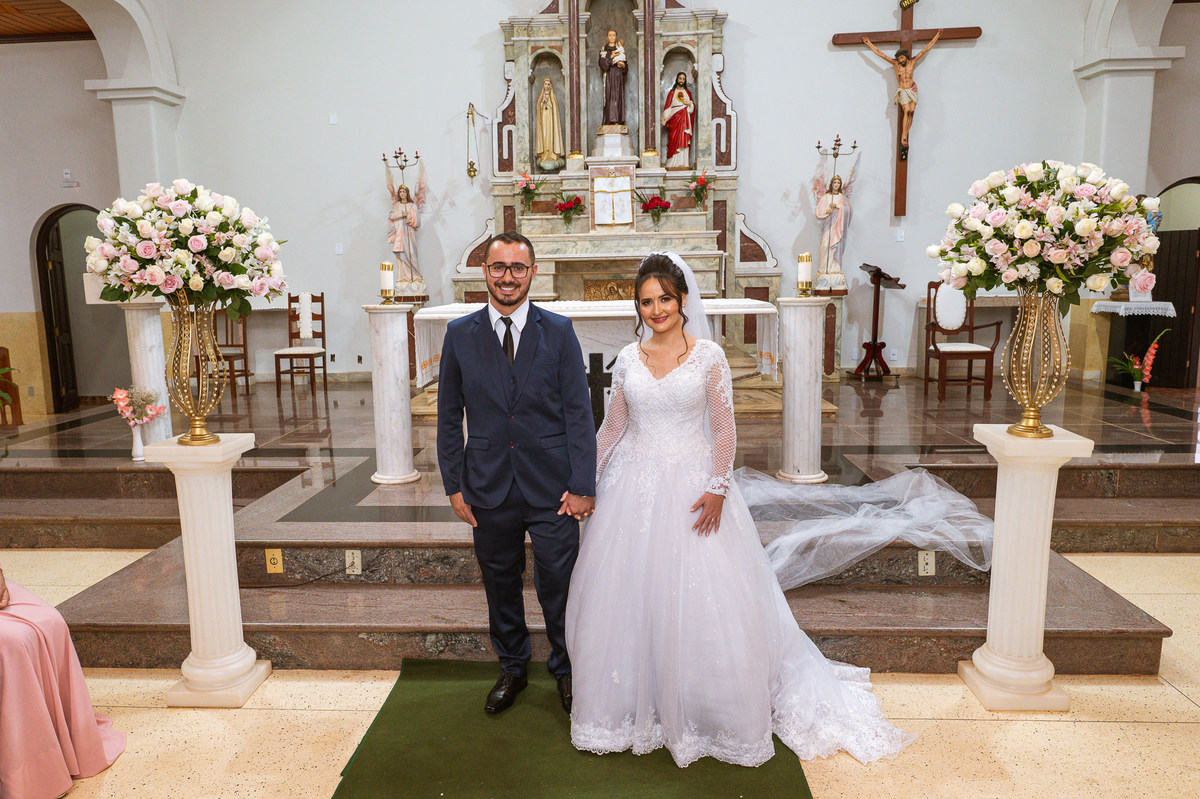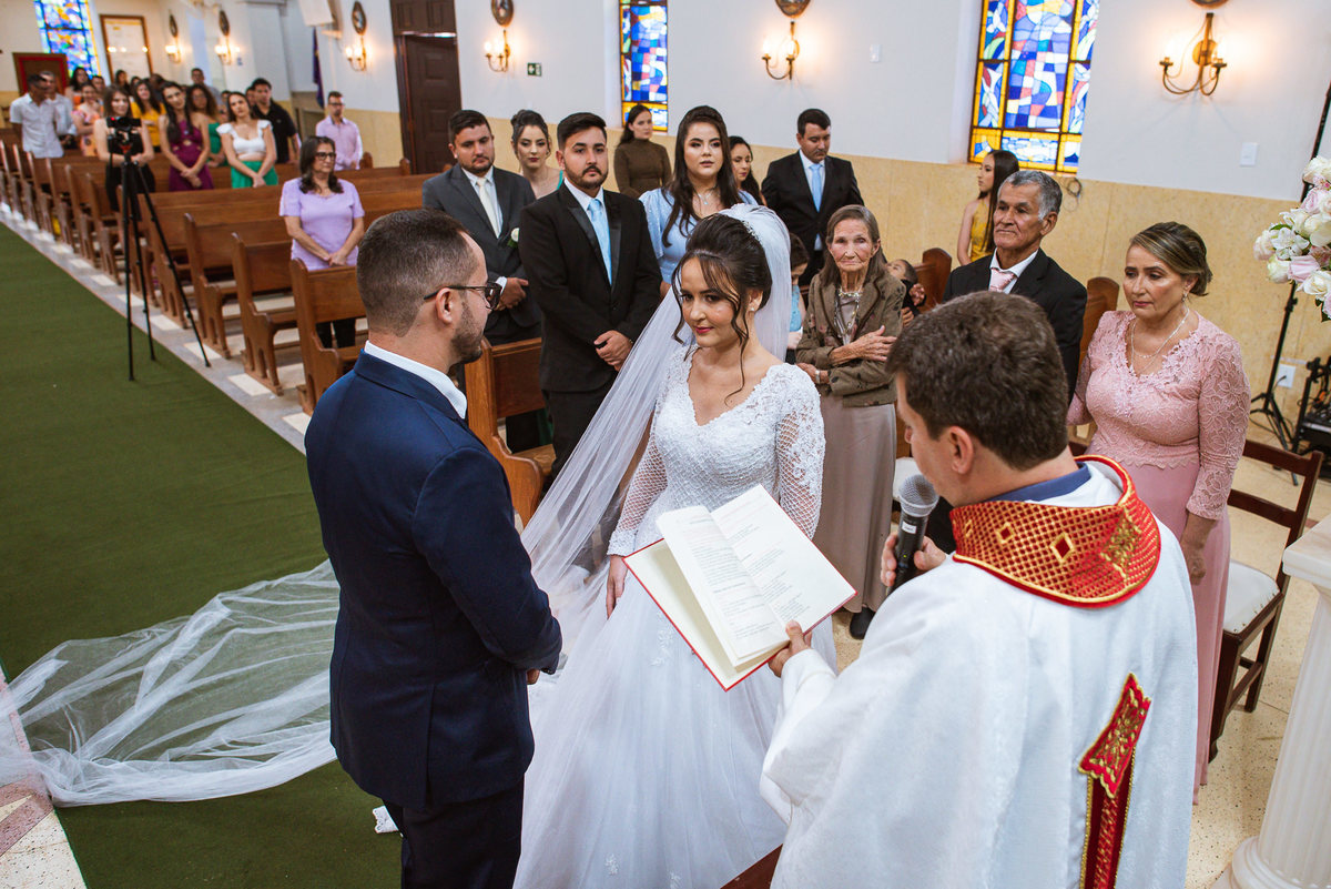 O padre os recebeu carinhosamente e realizou uma celebração linda e emocionante. A homilia nos fez meditar sobre tudo que envolve o casamento. Os noivos fizeram os seus votos de amor, trocaram as alianças, foram abençoados pelos seus pais e declarados casados perante Deus e as testemunhas que ali estavam. Fizemos todas as fotos de praxe, com os padrinhos e pais e fomos fazer a saída. Do lado de fora, já os aguardavam seus padrinhos com os famosos Sparkles na mão. Foi uma dificuldade acendê-los por causa do vento, mas no final deu tudo certo. Os noivos saíram e foram recebidos calorosamente por todos os convidados. Diego e Tiálita receberam os cumprimentos dos convidados ali na porta da Igreja.