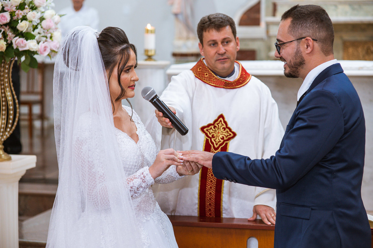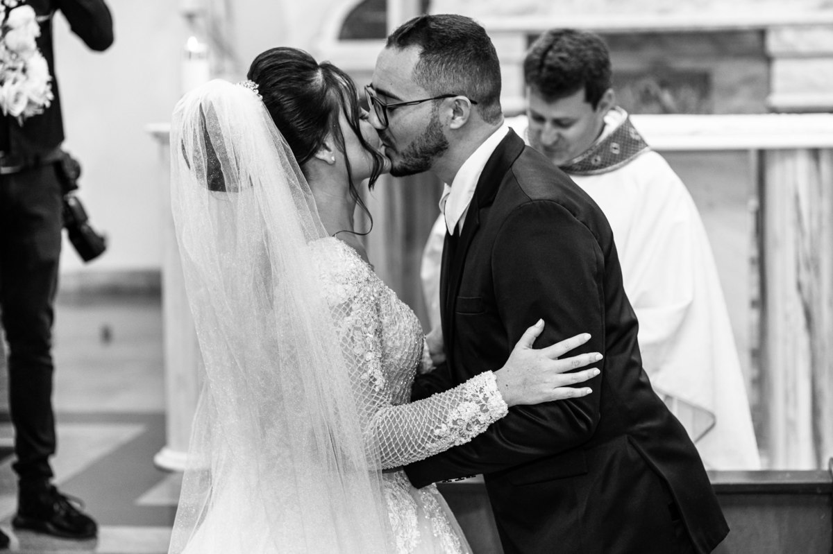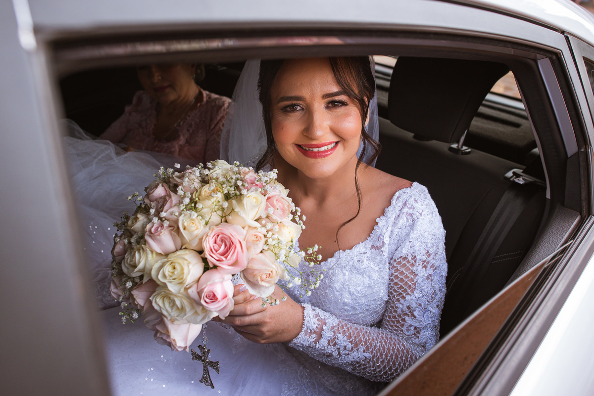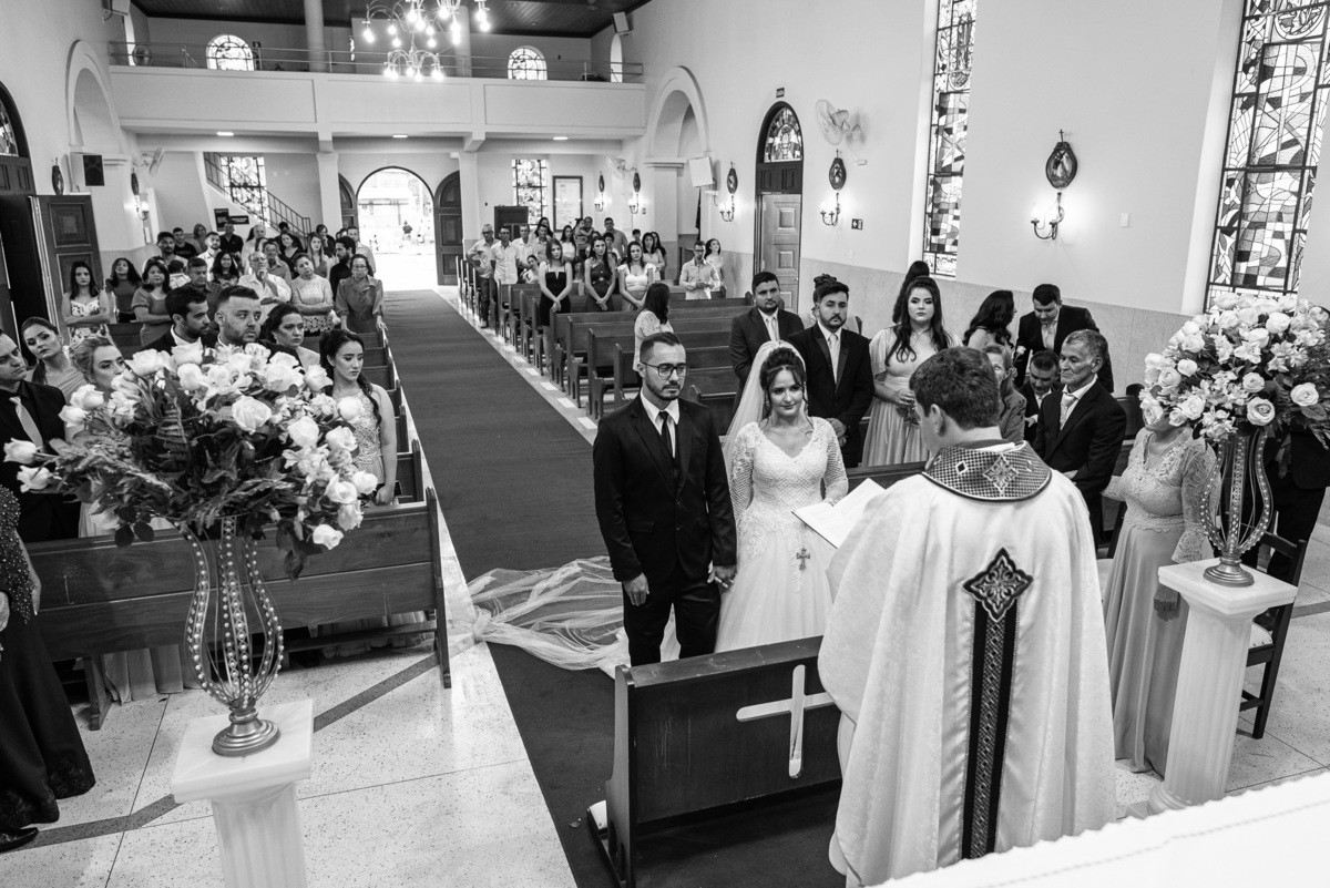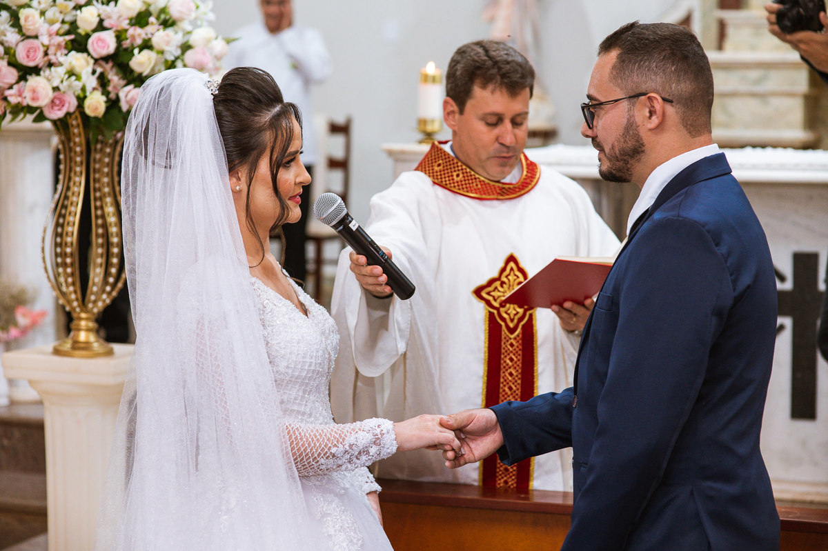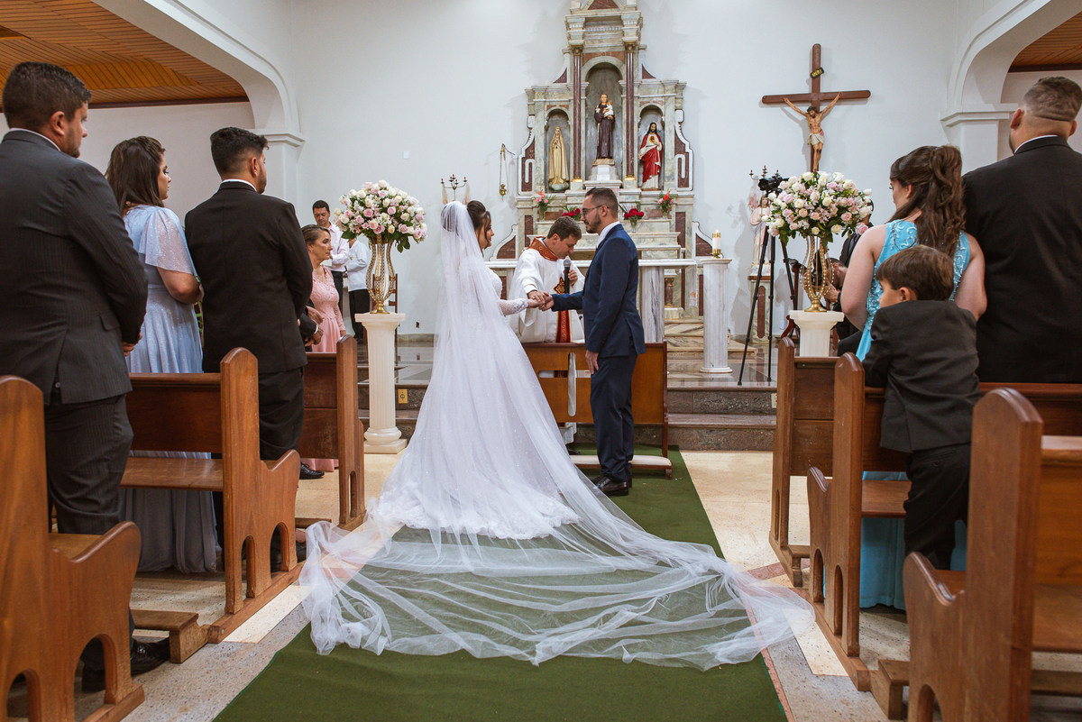 O padre os recebeu carinhosamente e realizou uma celebração linda e emocionante. A homilia nos fez meditar sobre tudo que envolve o casamento. Os noivos fizeram os seus votos de amor, trocaram as alianças, foram abençoados pelos seus pais e declarados casados perante Deus e as testemunhas que ali estavam. Fizemos todas as fotos de praxe, com os padrinhos e pais e fomos fazer a saída. Do lado de fora, já os aguardavam seus padrinhos com os famosos Sparkles na mão. Foi uma dificuldade acendê-los por causa do vento, mas no final deu tudo certo. Os noivos saíram e foram recebidos calorosamente por todos os convidados. Diego e Tiálita receberam os cumprimentos dos convidados ali na porta da Igreja.