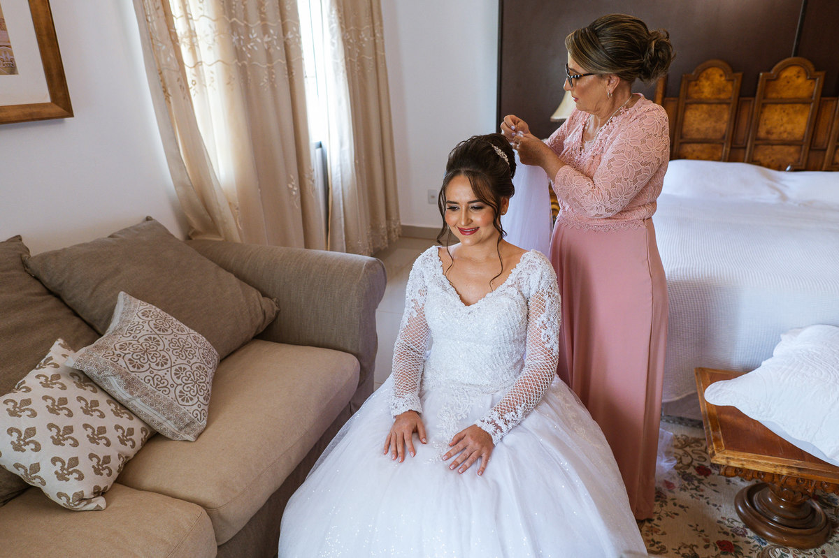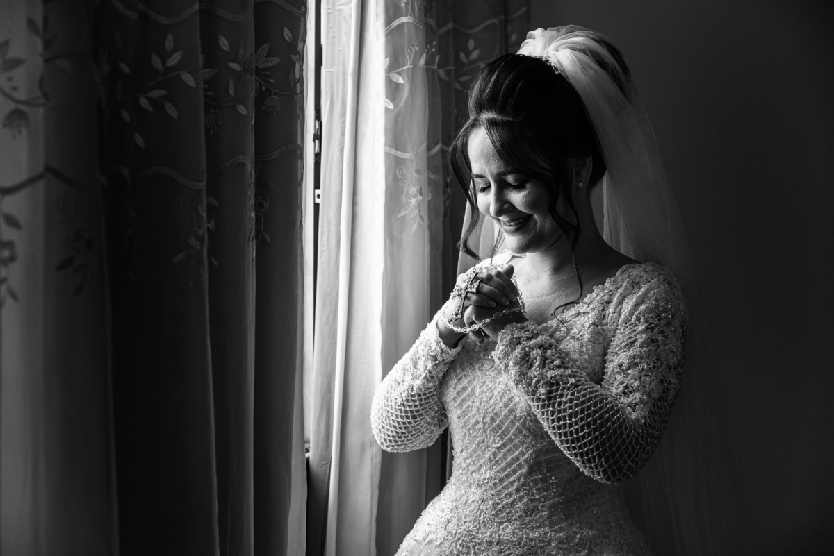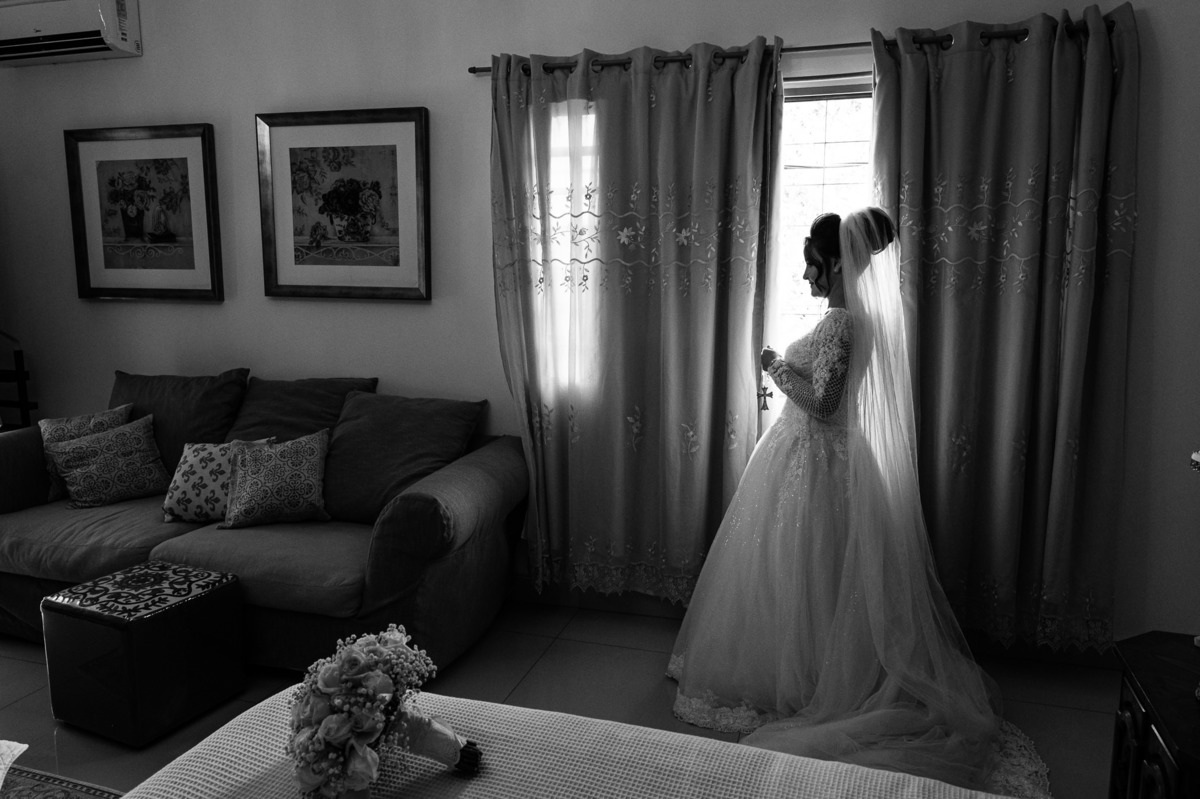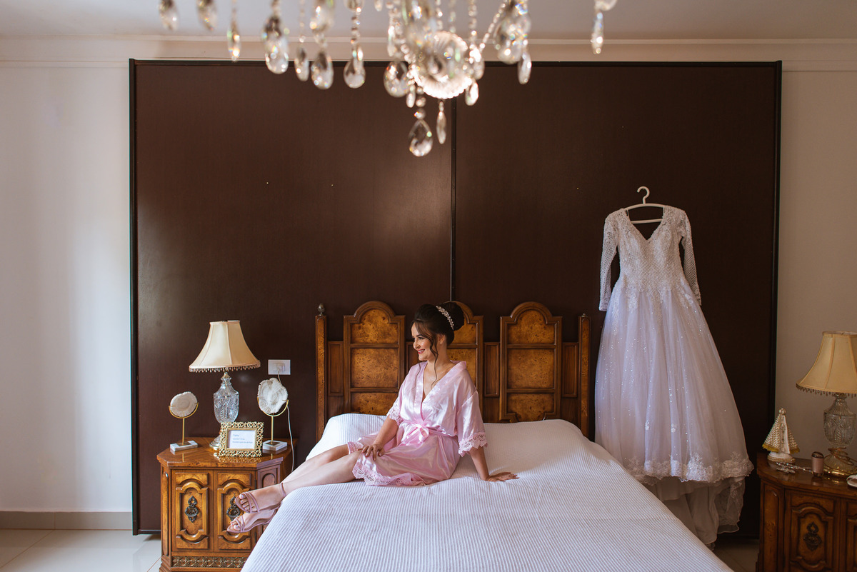 Finalizando o making of, Tiálita foi colocar seu vestido. Quando fomos chamados novamente, ficamos todos boquiabertos. O vestido, assinado pela Enlace Maison, caiu como uma luva na noiva. Ela ficou simplesmente maravilhosa. Fizemos algumas fotos e a equipe de vídeo seus takes e enfim chegava a hora de voltar o véu. A mãe da noiva tremia de medo, e eu com meu coração morrendo de medo de dar algo errado, porém confiante de que aquilo tudo fazia parte. A emoção que passamos era só pra deixar aquele momento mais emocionante. Poucos minutos depois, Tiálita estava prontinha e com seu véu colocado perfeitamente. Fizemos um book só com fotos dela de noiva, pois o conjunto estava tão lindo que não conseguia parar de fotografar.