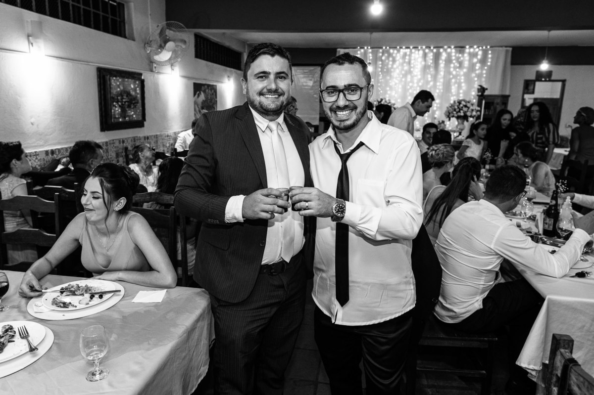 Depois de todos os cumprimentos, fizemos um mini ensaio dos noivos ali na porta mesmo. A iluminação da Igreja e da praça fizeram toda a diferença e abrilhantaram ainda mais as nossas fotos. Depois desse ensaio, fomos para o restaurante onde os convidados foram recebidos pelos noivos. Por lá, fizemos algumas fotos e acompanhamos os noivos durante um bom tempo. Depois de encerrar os trabalhos, nós ainda fomos convidados a jantar e nos unir aos amigos que por lá estavam. Encerramos nossa noite com muita gratidão aos noivos e retornamos para a cidade debaixo da graça de Deus.