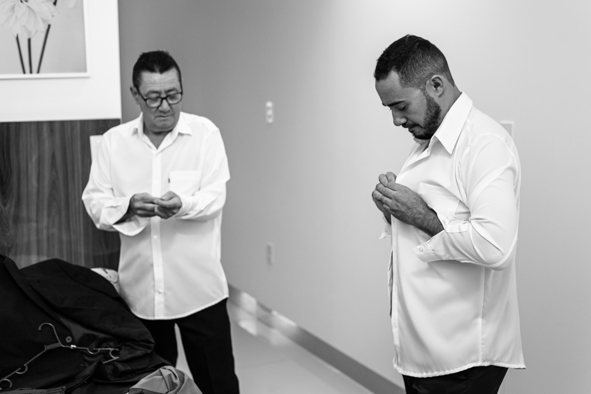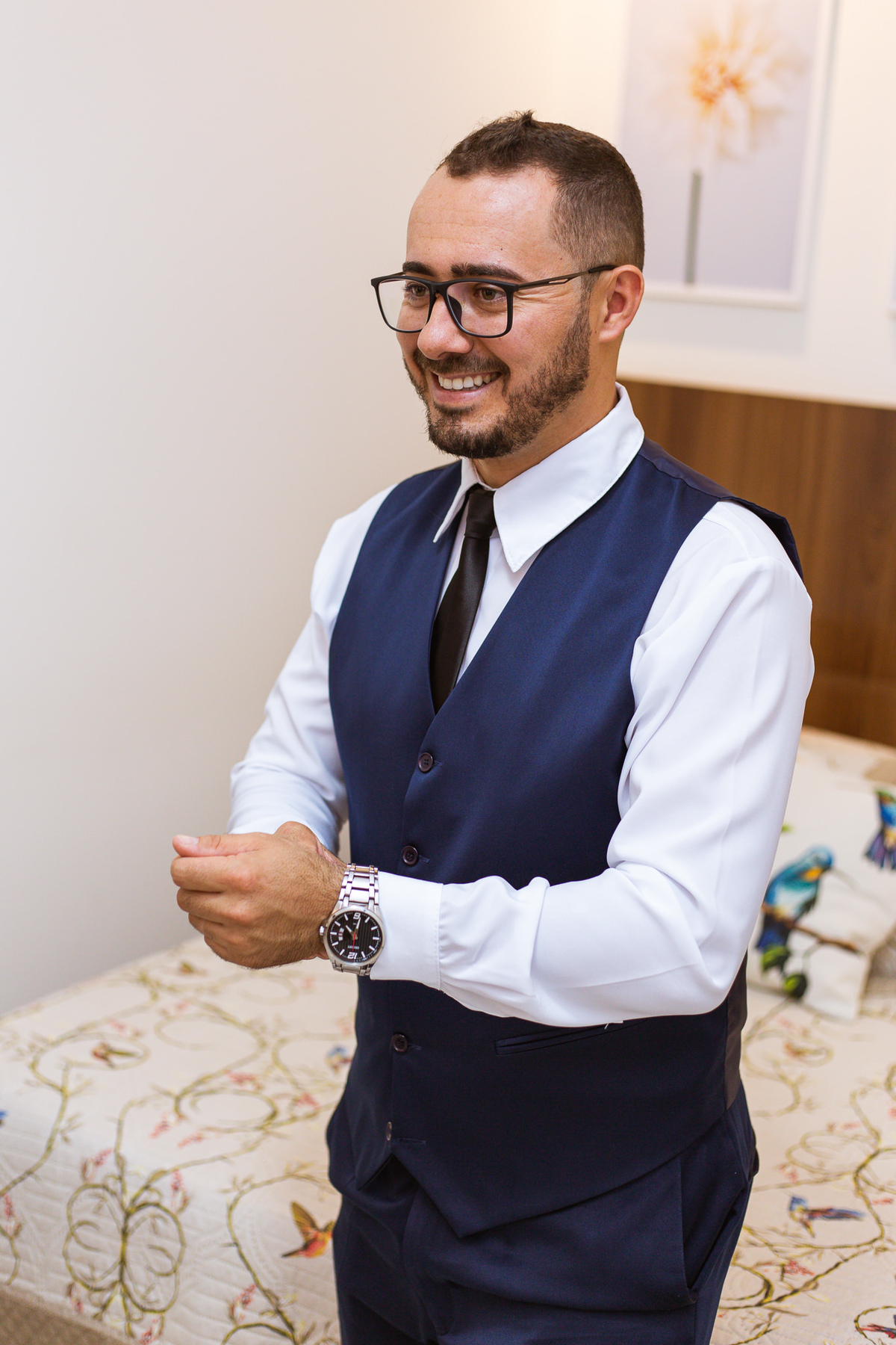 No quarto ao lado, estava Diego com seu pai se arrumando. Com a ajuda dele, Diego foi se arrumando e colocando seu terno que tanto ansiou vestir. Seu coração estava batendo forte, pois a vontade de ir pra Igreja era imensa. Pensando que seu amor estava ali do lado finalizando sua produção e que o momento de se unirem perante Deus estava chegando. Ah, não poderia deixar de comentar que a Igreja ficava a poucos metros do Hotel que estávamos, então poderíamos ir a pé de lá. E eles foram! Logo após terminar a sua produção, Diego e seu pai foram caminhando, atravessando a praça da cidade rumo ao altar.