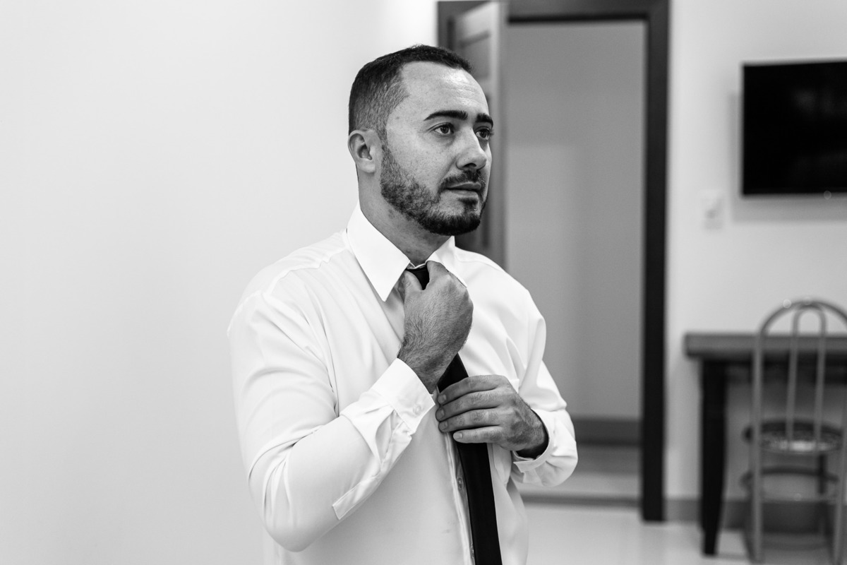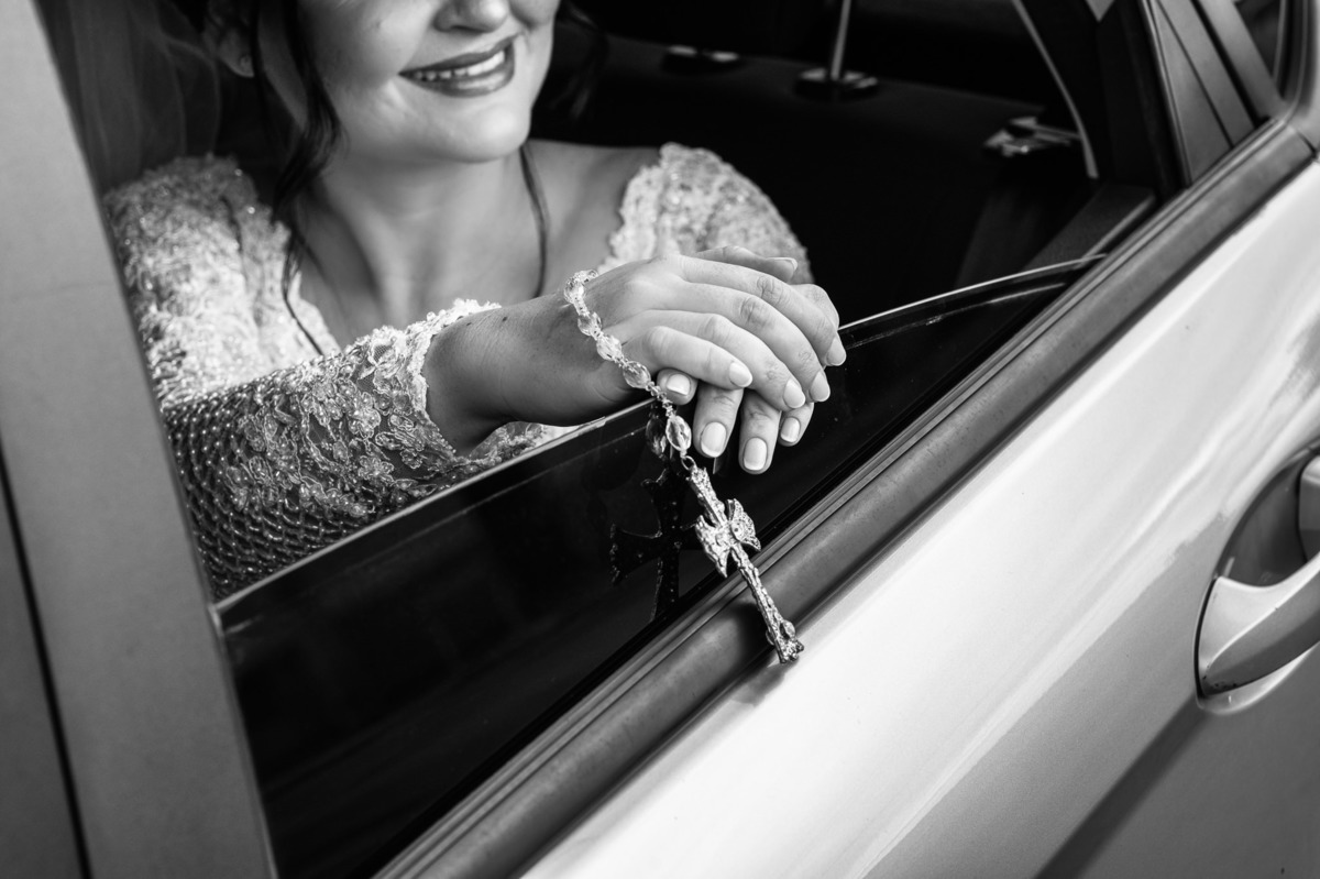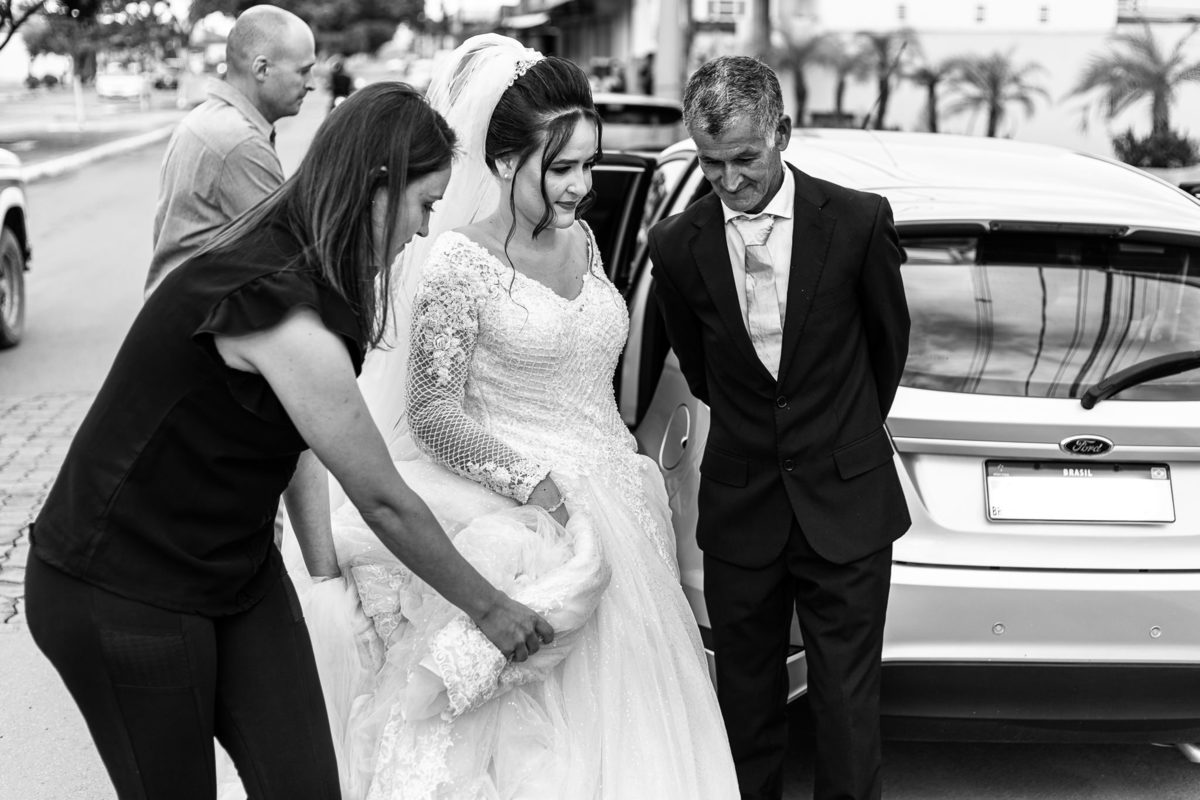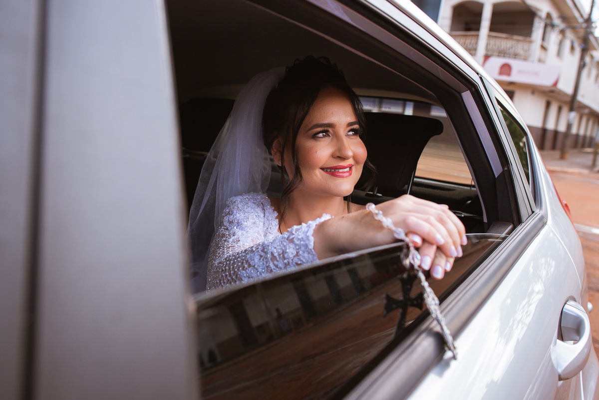 Viajamos para a cidade de Tiros - MG para fotografarmos esse casamento lindíssimo e cheio de expectativas boas. Depois de tanta espera, estávamos todos ansiosos por esse dia. Chegando na cidade, procuramos a Igreja onde a cerimônia aconteceria. Ao chegarmos na porta, demos de cara com quem? Sim, o noivo. Diego estava lá cuidando dos últimos detalhes e já bastante ansioso para voltar pra lá vestido de noivo. Enquanto isso, Tiálita já estava se preparando em seu making of. Chegamos lá e vimos uma noivinha super alegre. Ela estava prontinha inclusive já com seu véu colocado. Conversando sobre o casamento, ela me disse que queria muito fazer algumas fotos de robe, porém sem o véu. Pense na ideia! O maquiador e cabelereiro já havia saído então juntou eu e a mamãe da noiva para tirar esse véu...