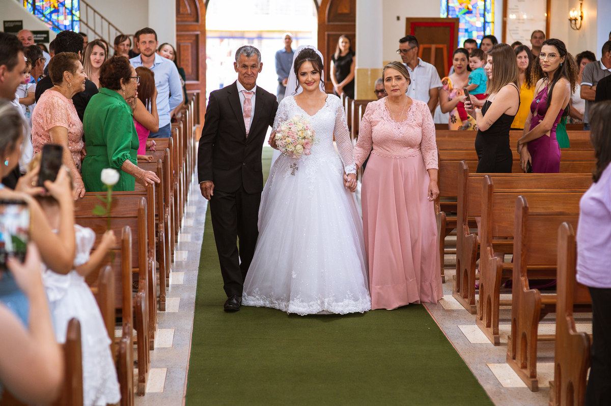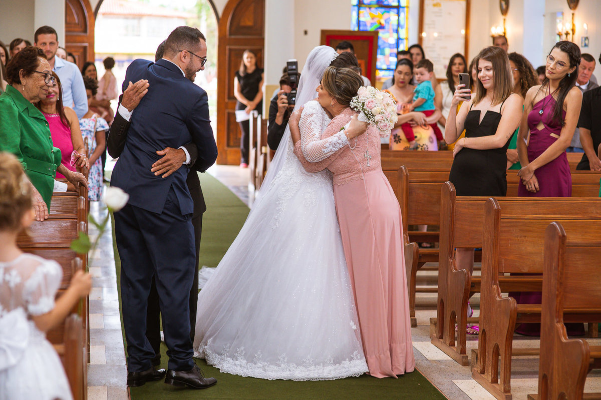 Do lado de fora, com as portas da Igreja separando os dois, Tiálita estava com seus pais se preparando para entrar. De braços dados, eles caminharam juntinhos rumo ao encontro final com Diego. Assim que as portas se abriram, todos voltaram seus olhos para ela. A noiva estava deslumbrante e Diego mal conseguia conter sua emoção. Tiálita acompanhada de seus pais, agora caminhavam por aquele corredor com um único objetivo: O encontro entre os noivos para selarem sua união. Poucos passos e eles se encontraram. Todos se abraçaram e despediram-se para que agora os noivos ficassem só. E com um beijo respeitoso, Diego recebeu sua noiva e caminharam juntos para o altar.