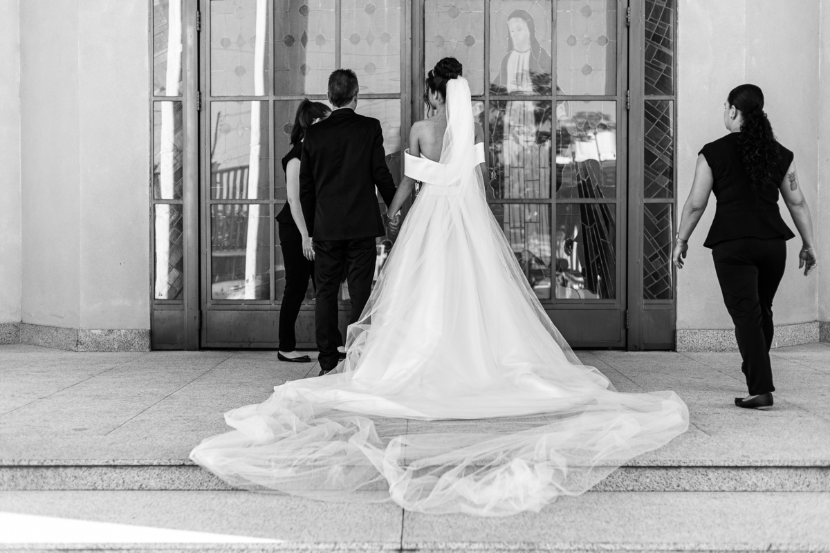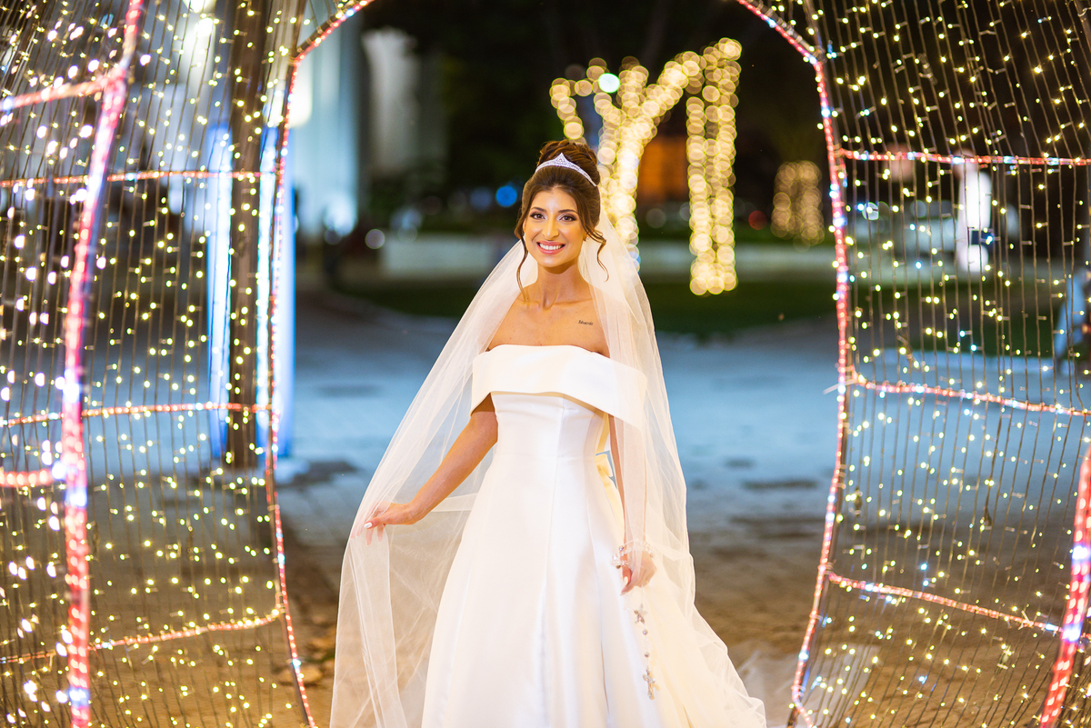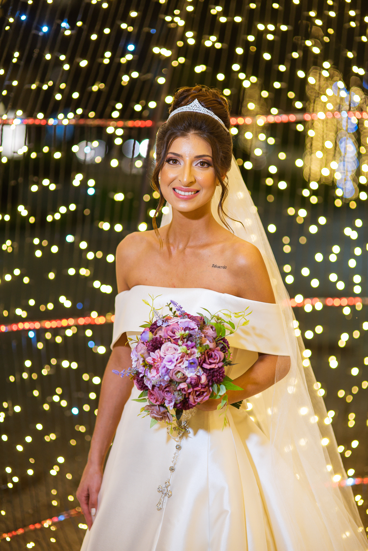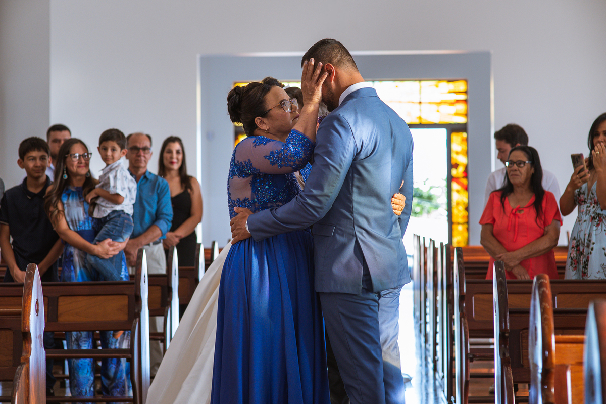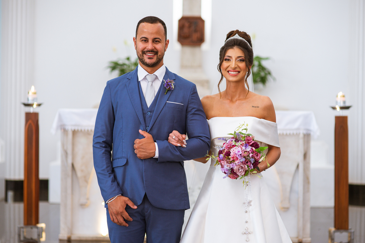 Do lado de fora, Isabella e seu pai aguardavam aqueles segundinhos para também poder entrar. A marcha nupcial já estava sendo entoada e então, as portas foram abertas, revelando para todos os convidados a beleza e exuberância da noiva e seu pai. Isabella caminhou lentamente rumo ao altar, os olhos fitos em seu noivo que estava ali, pertinho de receber sua mão. Poucos passos adiante, eles se encontraram. Os pais se cumprimentaram e despediram de seus filhos. Agora, Isabella e Luiz estavam frente e frente um com o outro. Eles posicionaram, olharam nos olhos e Isabella recebeu o beijo respeitoso em sua testa. Agora, de braços dados e juntinhos, eles caminharam rumo ao altar para receber a bênção de Deus através da palavra do padre celebrante.