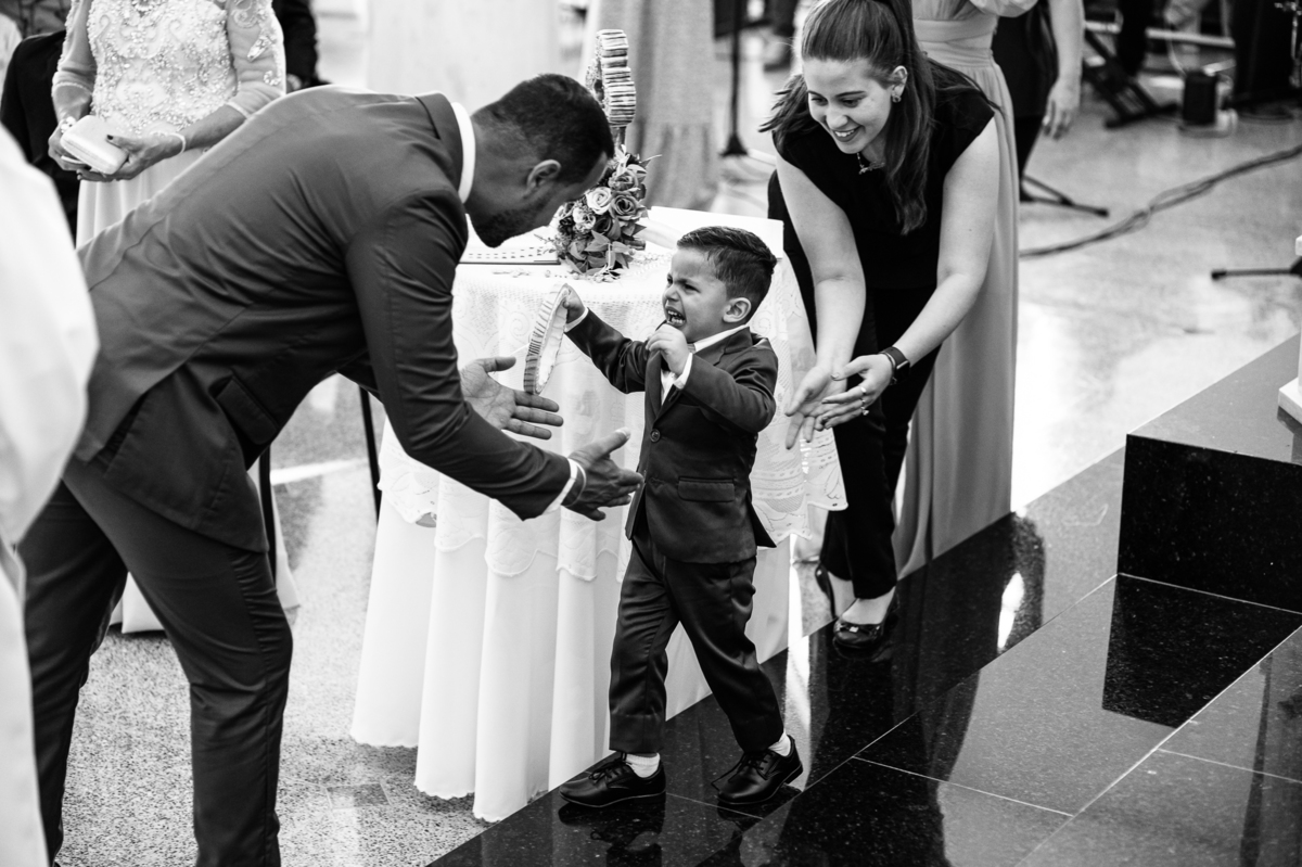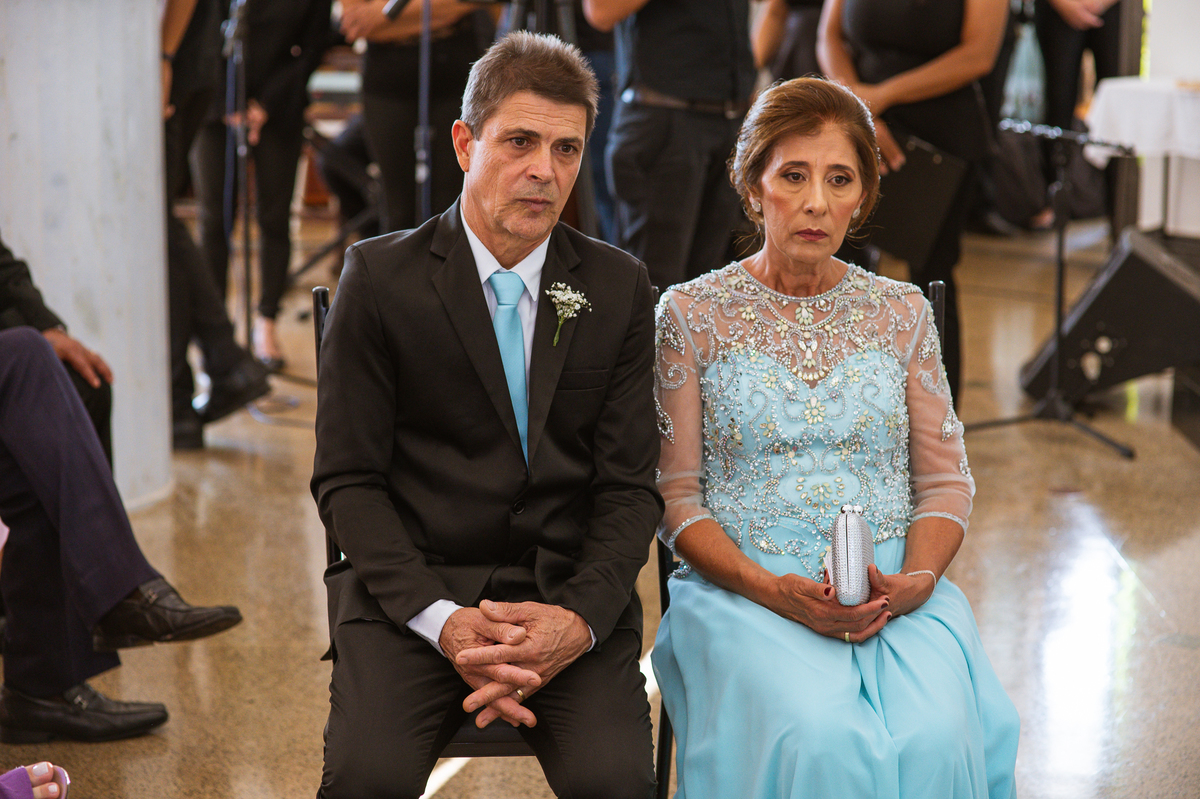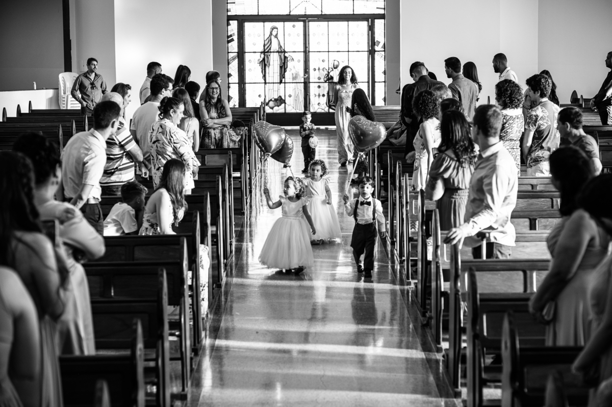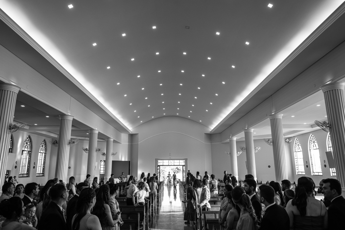 Chegando na porta, Luiz estava lá todo animado, tentando despistar a ansiedade que tomava conta do seu coração. Os padrinhos estavam prontos na fila para dar início ao casamento. Dentro de poucos minutos, tudo começaria e finalmente os dois poderiam se encontrar naquele corredor. As crianças estavam posicionadas, padrinhos já alinhados e o noivo aguardando. Faltava somente a estrela daquele dia. Sim, Isabella. A noiva chegou dentro de poucos minutos e a cerimônia teve seu início imediato. Os músicos começaram a tocar e os corações foram acelerando com o início da celebração. Fizemos algumas fotos ali no carro com a noiva e logo as portas foram fechadas. Do lado de dentro, Luiz, visivelmente emocionado, entrou de braços dados com sua mãe. Desfilou por todo o corredor e despediu dela, aguardando sozinho a entrada de sua noiva.