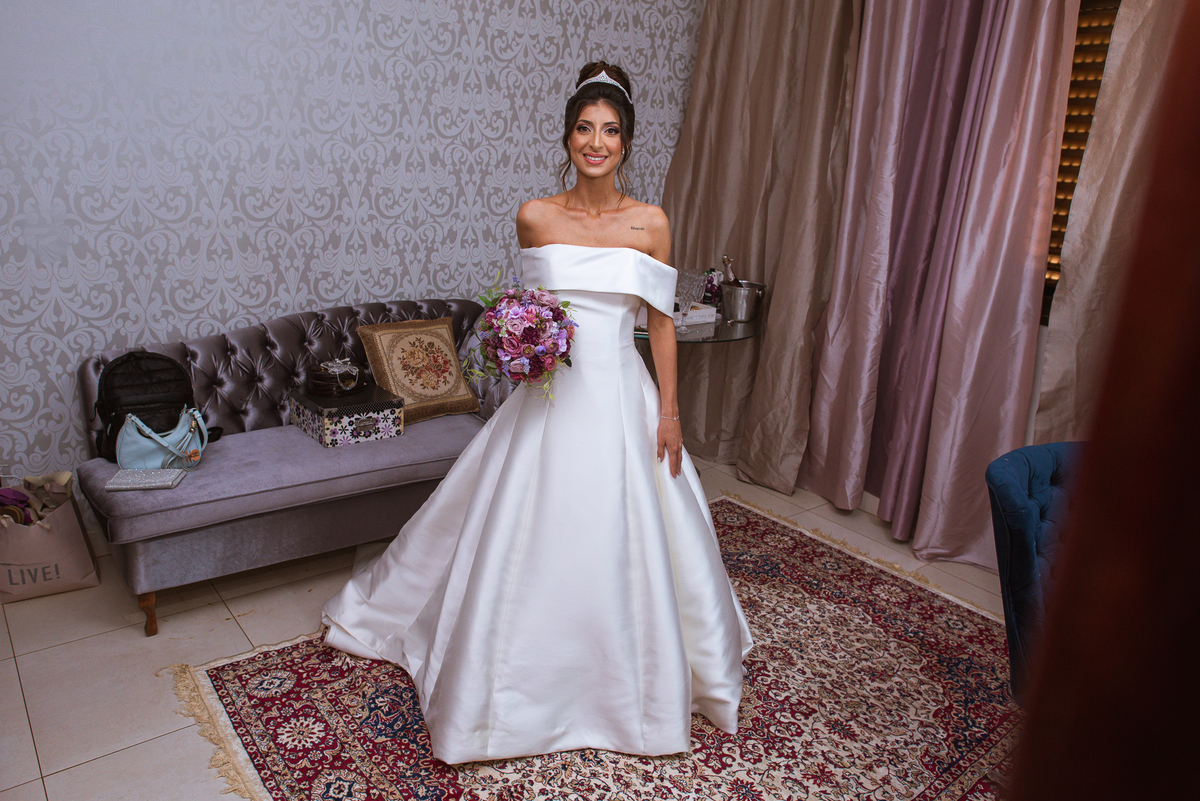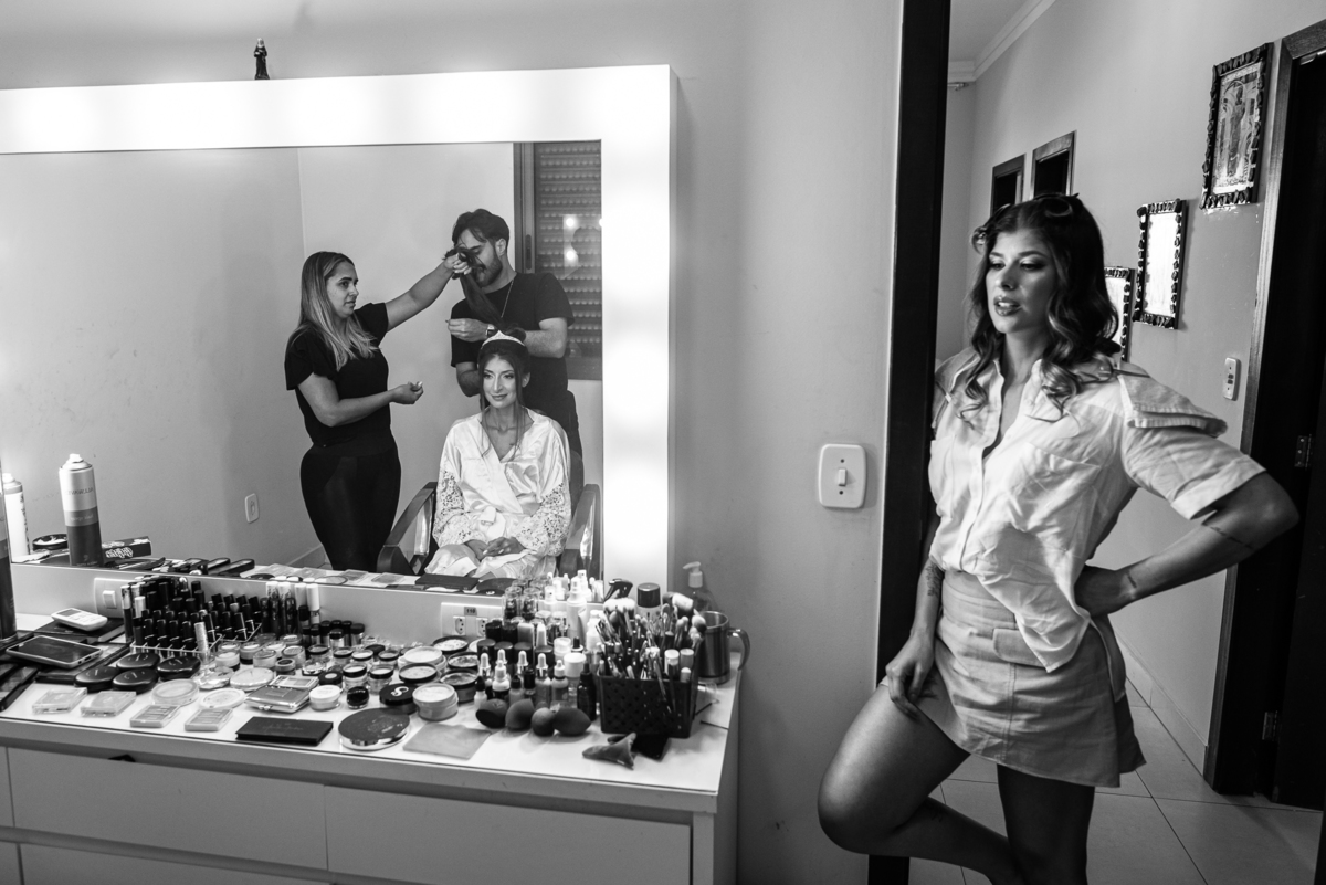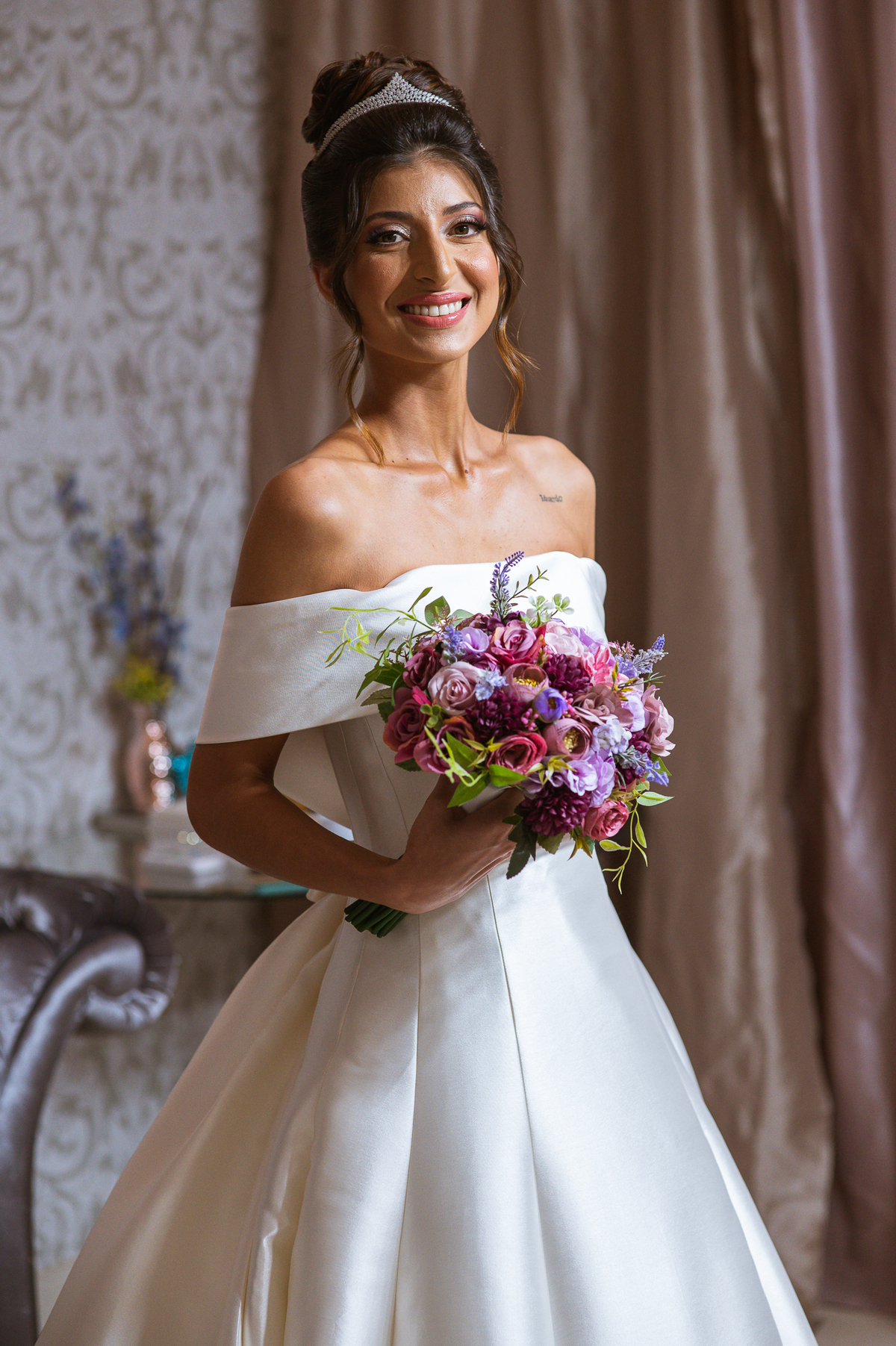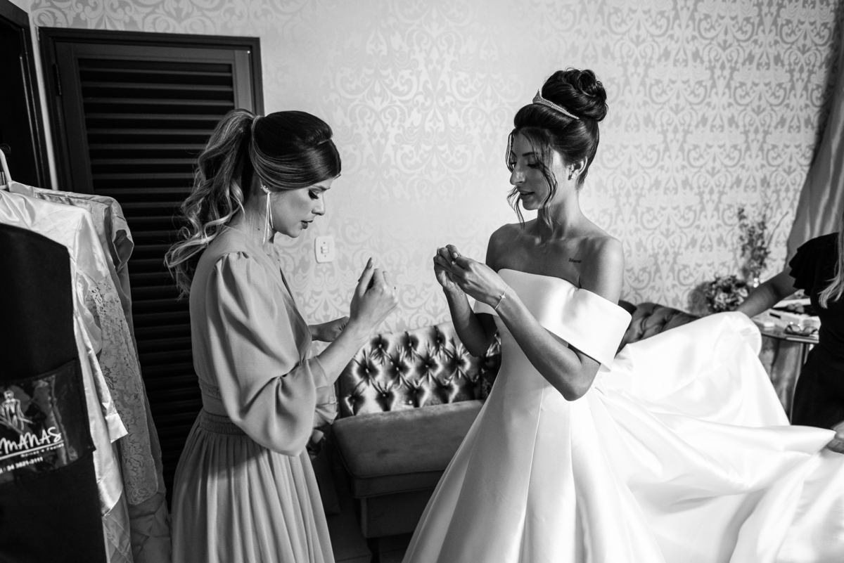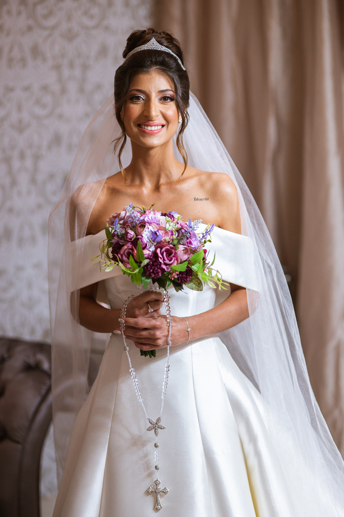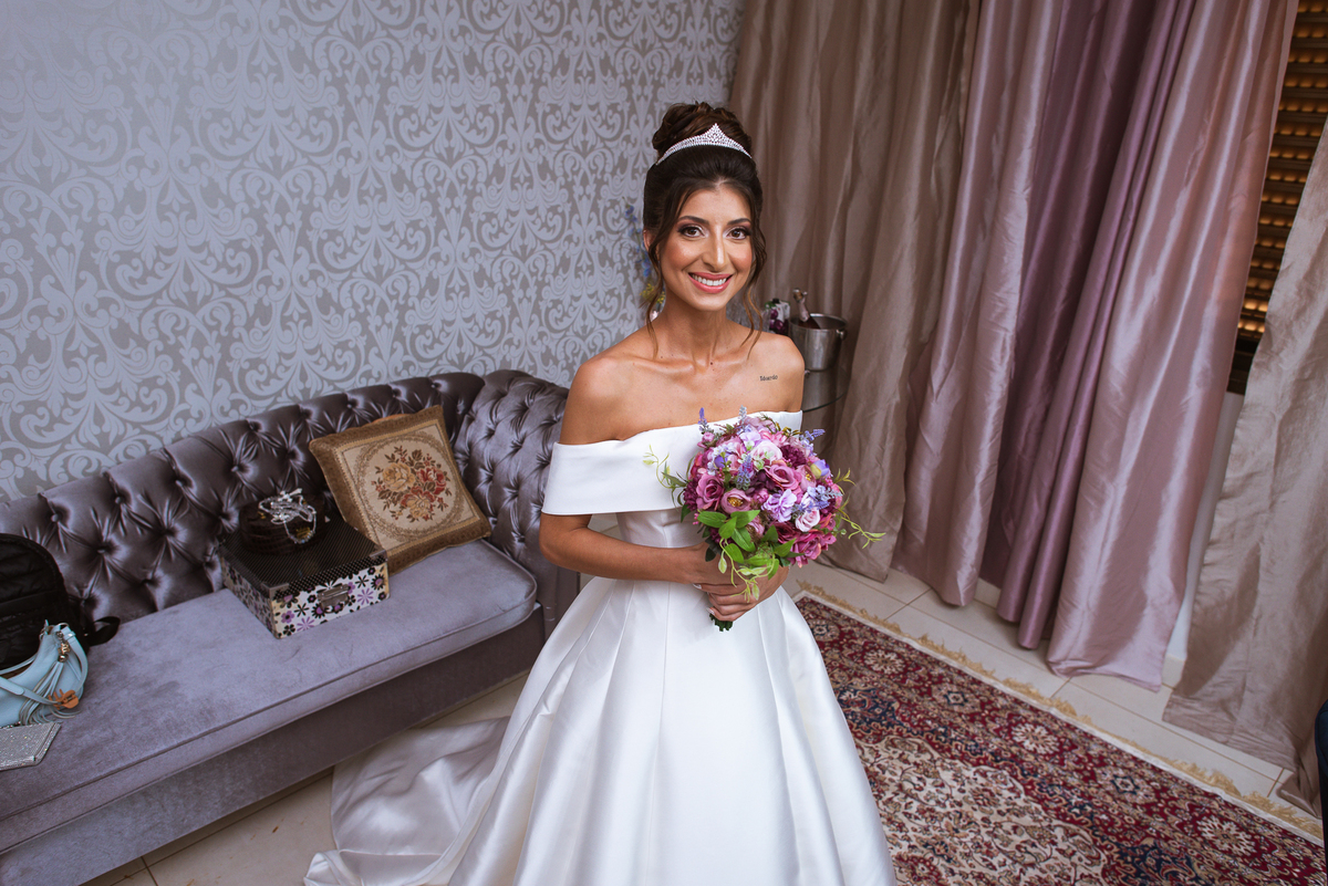 A cerimonialista Daniana, do Magnificat Cerimonial chegou toda sorridente e com o buquê da noiva em mãos. Detrás da porta, ela avisou que estava lindo e qual seria a ansiedade da noiva sobre esse buquê. Lembro direitinho que Isabella estava preparando o penteado, com a cabeça meio pra baixo por conta do cabelo e em meio ao processo ela veio com um sorriso encantador e sincero. Com as duas mãos, ela puxou duas mexas que a atrapalhavam ela contemplar a beleza do seu buquê, e assim sim o sorriso ficou ainda maior. Daniana confirmou que tudo estava organizado, o horário estava tranquilo e que ela poderia descansar e finalizar sua produção com toda tranquilidade...