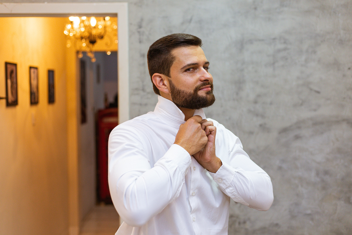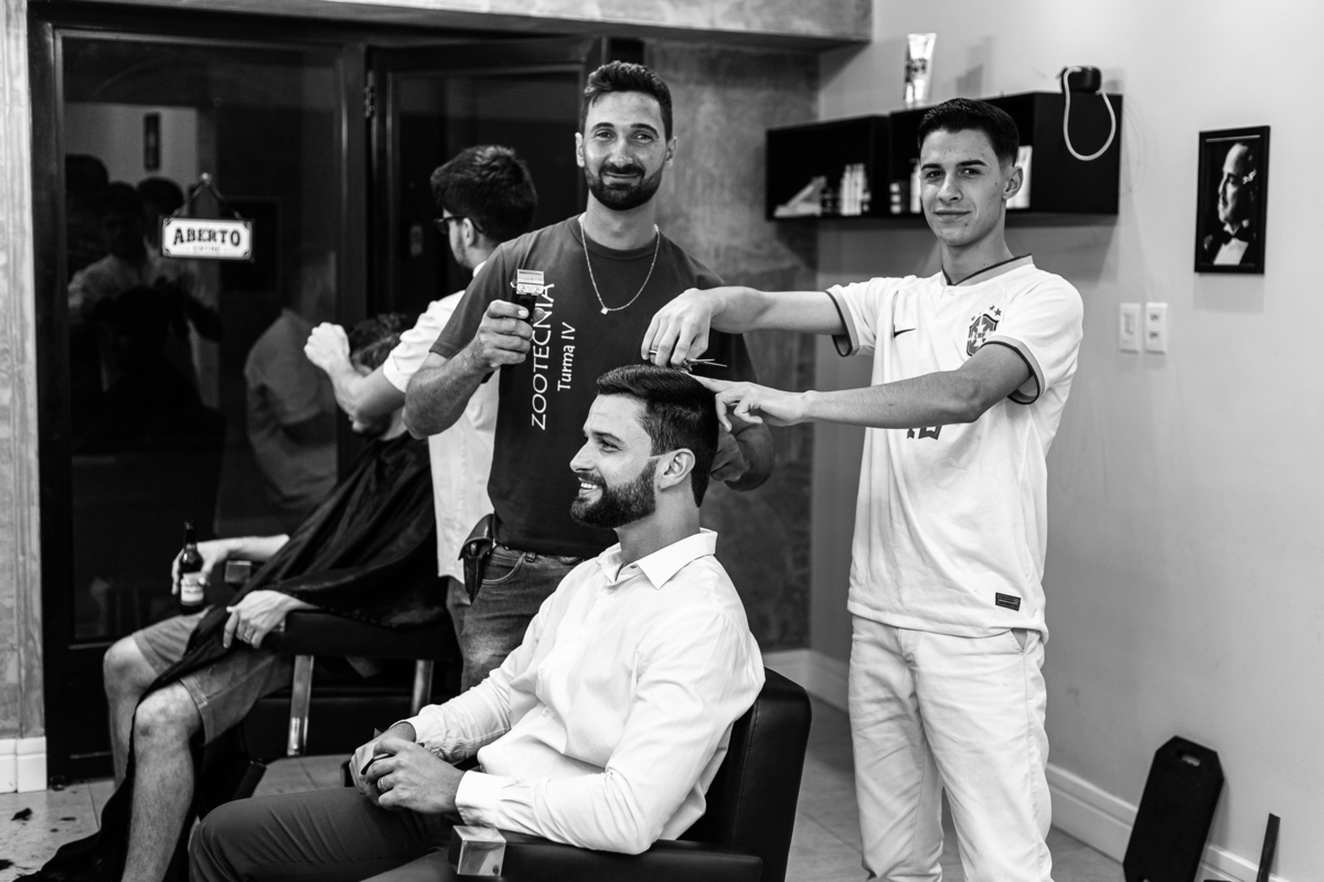 João Paulo fez seu making of na barbearia Club Retrô e junto com seu pai e alguns padrinhos, eles fizeram uma farra. Assistindo o jogo da Argentina e bebendo uma cerveja de hora em hora. Os amigos fizeram a graça e tentaram de todo jeito cortar seu cabelo e ajudar o barbeiro a fazer seu trabalho, mas em vão. Ainda bem né. João vestiu seu terno e finalizou sua produção, pois estava ansiosíssimo para chegar na Igreja. Depois de finalizar toda a produção dos outros companheiros, eles partiram para a cerimônia.