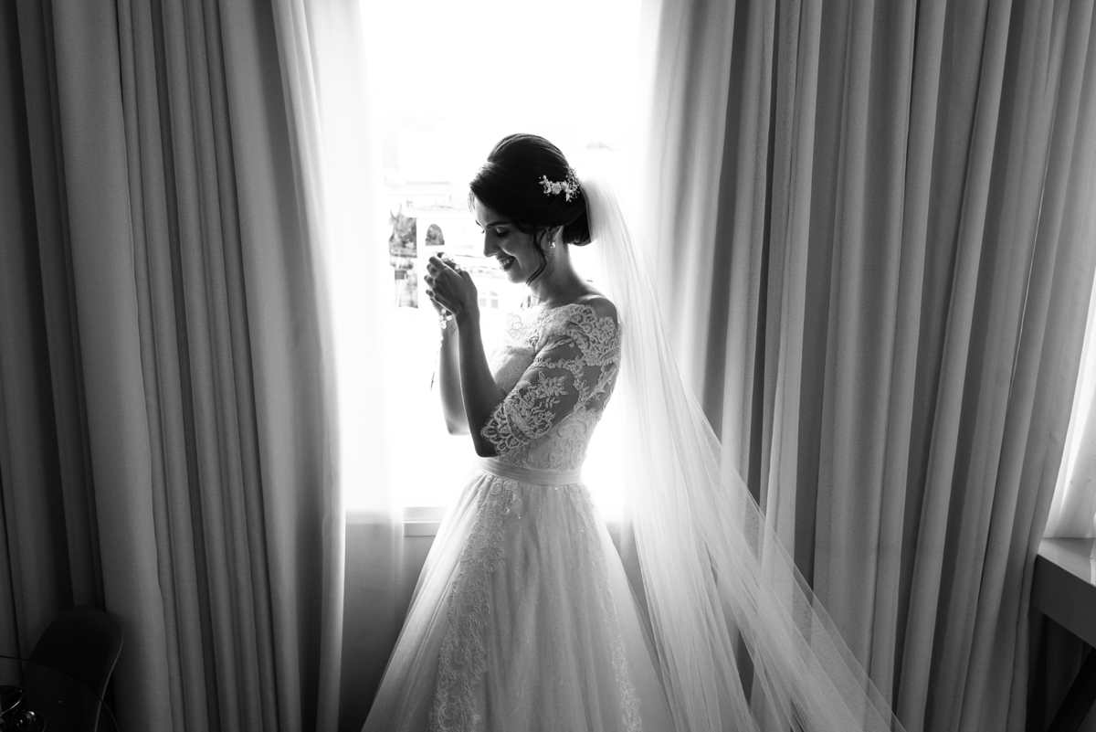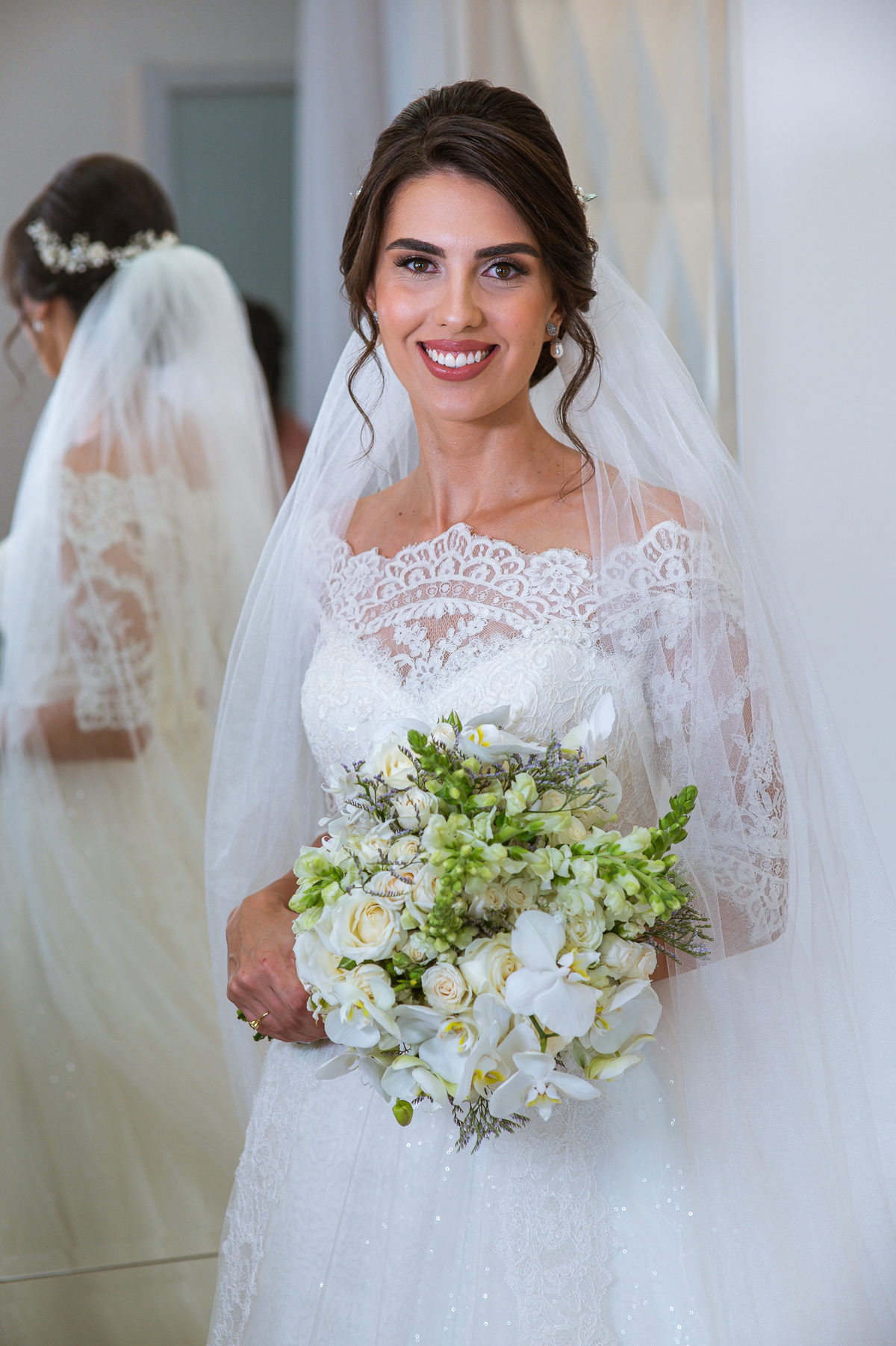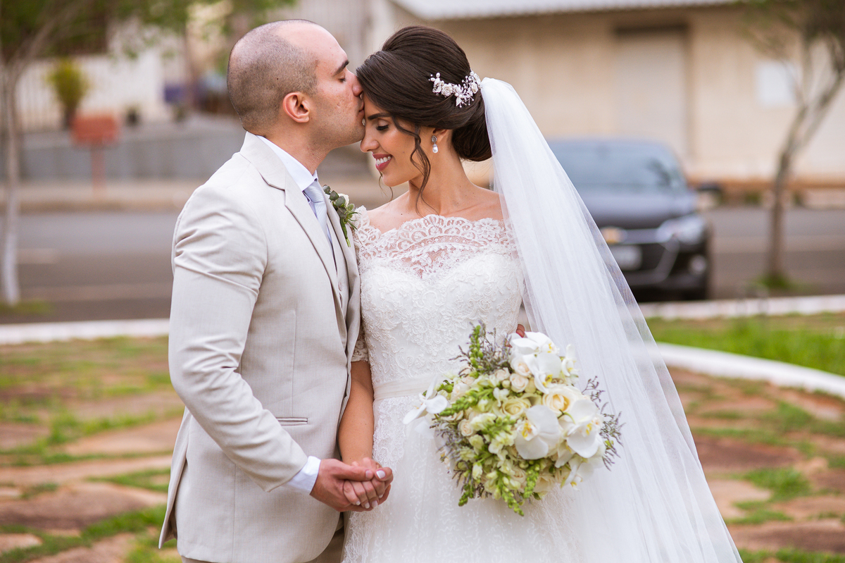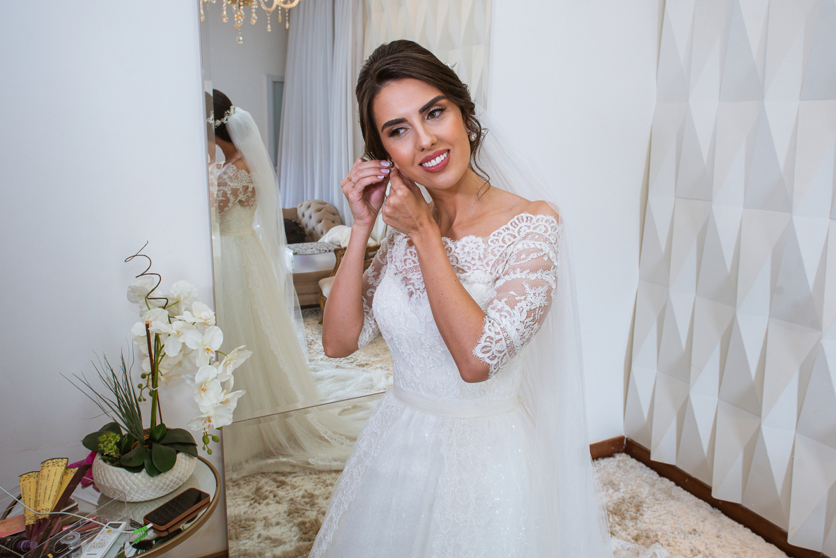 Enfim, vamos ao que interessa. A cidade de Presidente Olegário - MG é onde eles residem. E lá, estava marcada a cerimônia. Começamos o making of aqui em Patos de Minas, local escolhido pela noiva para se produzir. Chegando lá, me deparo com uma noiva esplêndida, com seus retoques finais na produção. O vestido maravilhoso assinado pelo Espaço WM estava lá também, emoldurando toda aquela cena. Milleny estava acompanhada de sua mãe, que assistia todo o processo e dividia com ela a emoção de estarem ali juntinhas para o seu grande dia. Enquanto finalizava sua produção, fizemos algumas fotos. Posiciona aqui, volta pra lá e todo cantinho que clicávamos, as fotos ficavam maravilhosas. Desde a medalhinha que estava nas suas mãos, presente da sua avó que havia falecido, até o buquê lindíssimo, tudo compunha uma cena mais linda que a outra.