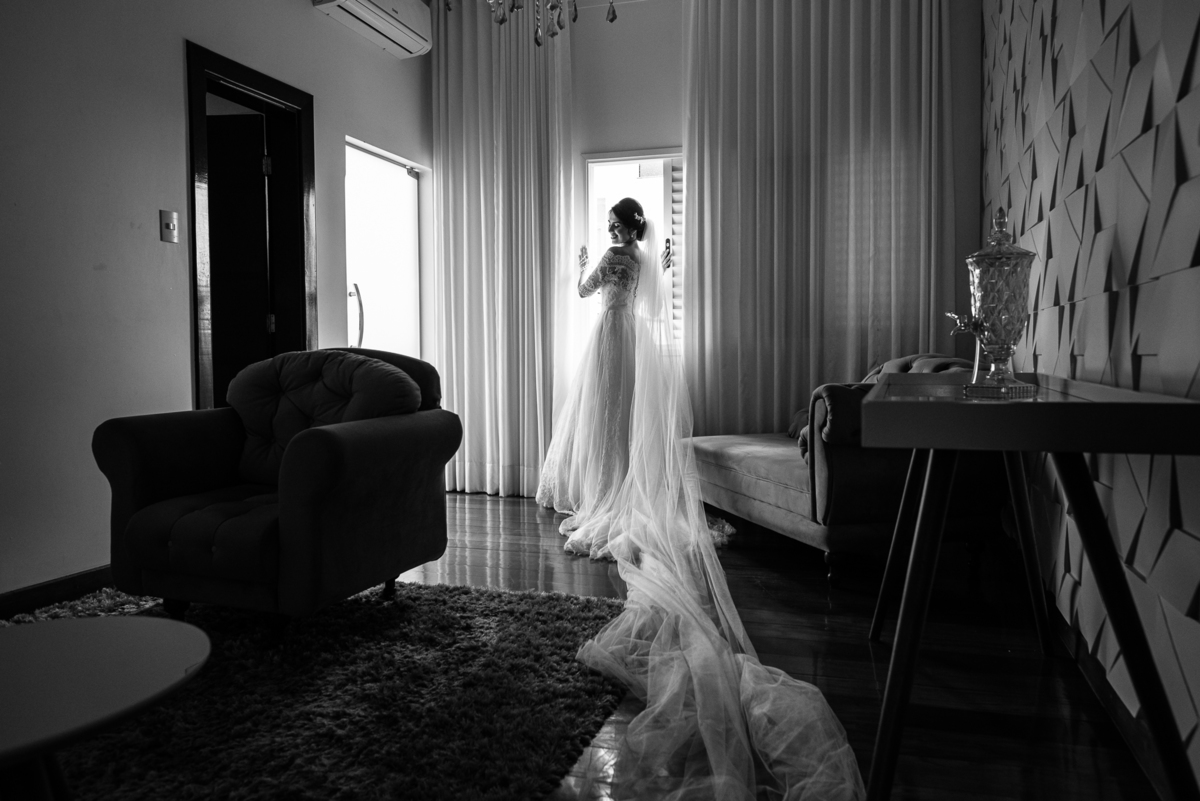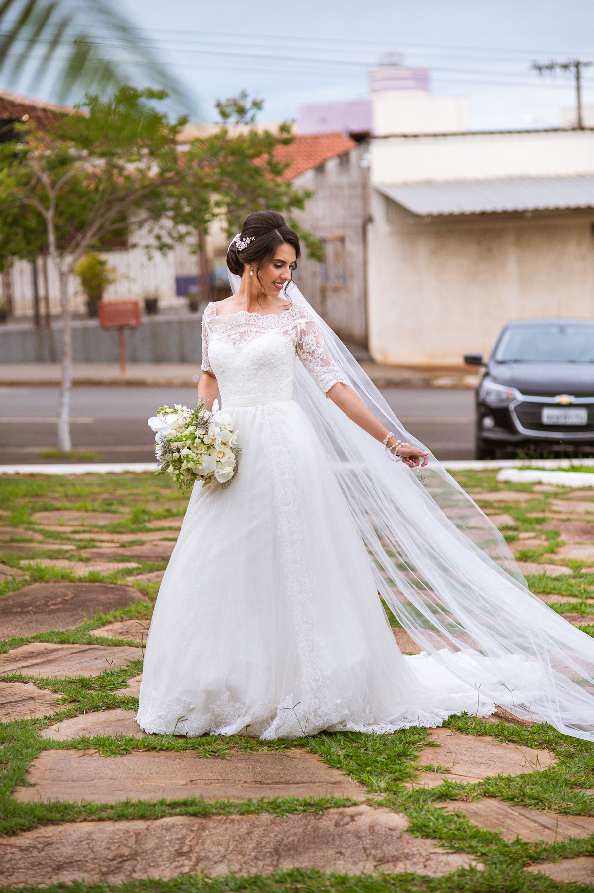Quando a noiva colocou seu vestido, aí sim o coração bateu mais forte. A produção estava sendo finalizada enquanto os detalhes do vestido iam sendo acertados. Estava tudo maravilhosamente perfeito. Sabe quando não precisa fazer nada, até a luz do dia ajuda? Pois é, assim foi. E eu admiro demais a fé em que Milleny estava firmada. Digo isso porque em todo o momento que estivemos lá, a chuva rodeava a cidade. E em pouco tempo, ela desceu fortemente. A noiva? Estava tranquila, descansando em Deus. Finalizamos as fotografias com belas imagens que ficarão para sempre em minha memória. Tudo aconteceu de uma forma sobrenatural. Eu parti para Presidente Olegário debaixo de forte chuva. Em meu coração eu já previa que aconteceria isso. Mas, bastaram alguns quilômetros rodados para que o céu se abrisse, como se Deus dissesse: "Eu estou abrindo esse céu para abençoar esse casamento..."