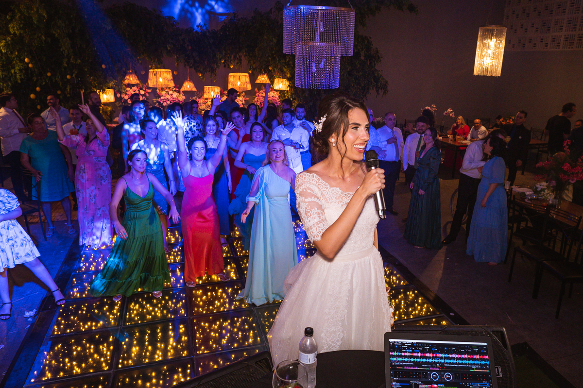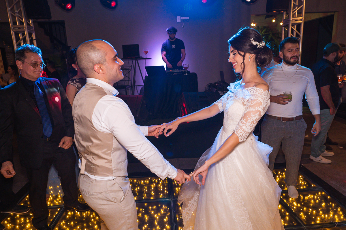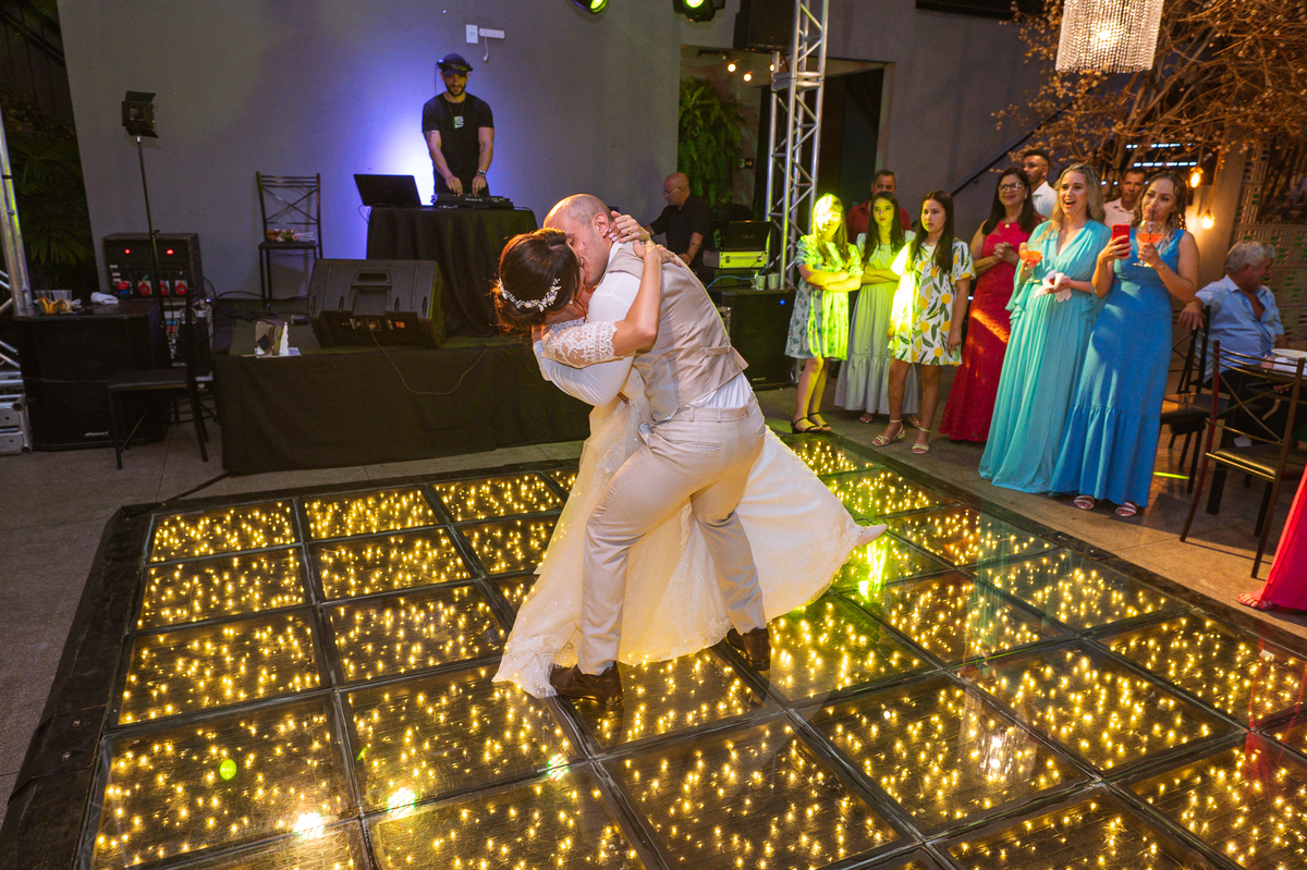 Nós partimos rumo ao local e lá fizemos a foto que eles desejavam. Lembro bem que ao lado existe uma quadra e tinha muitos meninos jogando bola e alguns brincando. Imaginem a cena: Uma noiva descendo do carro junto com seu noivo e caminhando para o banco da praça. Todos os olhares se voltaram pra eles. Finalizamos a foto desejada e partimos para a recepção. O local escolhido por eles é o Bangalô, lindo por sinal. Os convidados estavam aguardando a chegada dos noivos. O cantor estava animando a galera enquanto Milleny e Luciano se alimentavam antes de entrar. Feita a entrada, eles foram recepcionados com muita festa. A decoração estava impecável. Fizemos todas as fotos que eles desejaram e a festa teve seu início. Os noivos curtiram muito a noite inteira. Comemoravam com seus amigos e parentes e festejaram esse dia que ficará para sempre em nossos corações.