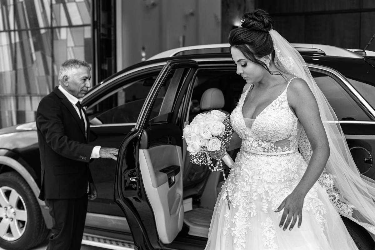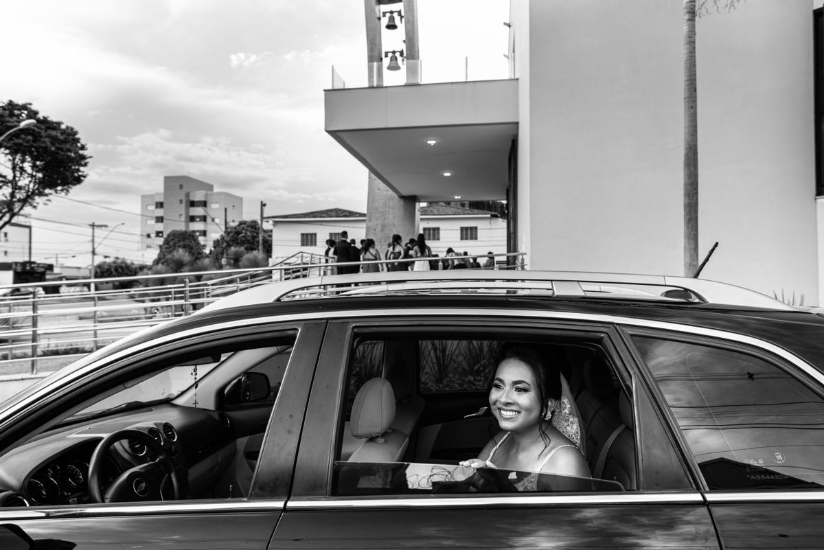 Um detalhe que me chamou a atenção foi que a vovó da noiva quis ficar lá junto com ela até o último instante em que podia. Fizemos as fotos com a avó e a mãe da noiva junto com as madrinhas e as liberamos para a cerimônia. Enquanto elas se deslocavam, finalizamos o ensaio da noiva que por sinal ficou maravilhosa. A produção e o vestido ficaram impecáveis. Nathalia estava deslumbrante e seu sorriso contava o quanto ela também estava feliz com seu dia. Depois de finalizarmos, partimos para a celebração. Em minutos já estávamos na porta da belíssima Igreja. Fizemos as tradicionais fotos no carro, juntamente com seu avô. Detalhe: A noiva tem seu avô como um pai, a pessoa que a criou desde pequena. Ela é muito apegada a ele. Pra terem uma ideia do quanto, a sua tatuagem no braço é a assinatura do vovô.