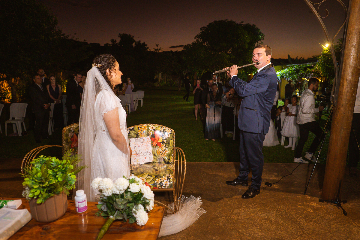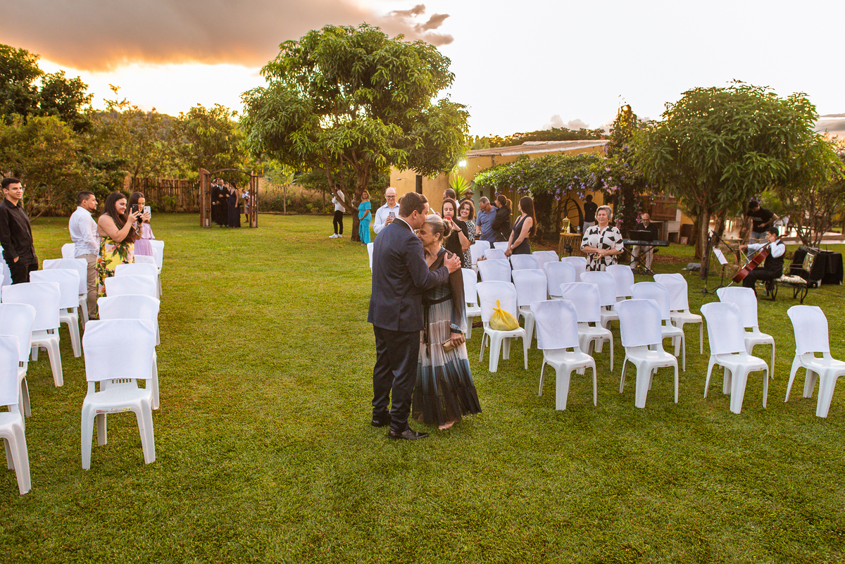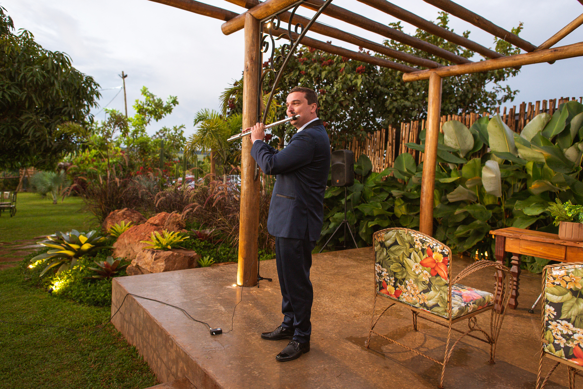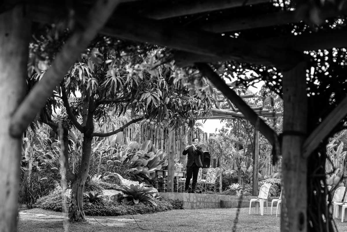 Todo casamento tem sua história e suas particularidades. No caso de Holmes e Ellen não foi nada diferente. Eles prepararam um "mini Wedding" para celebrar o seu amor e dizer sim perante Deus. O local escolhido foi o Recanto Marieta, que por si só já é um lugar super charmoso e aconchegante. Quando cheguei ao sítio, já encontrei os músicos finalizando o ensaio dos instrumentos. Holmes que é músico, então estava ensaiando com sua flauta também. O dia estava lindo, porém a chuva rodeava a cidade. Uma nuvem pesada estava sobre a cidade e assustava quem subiria ao altar naquele dia.
