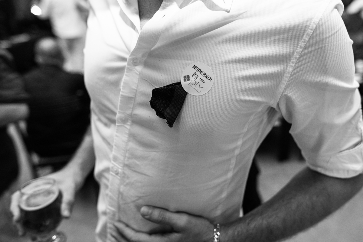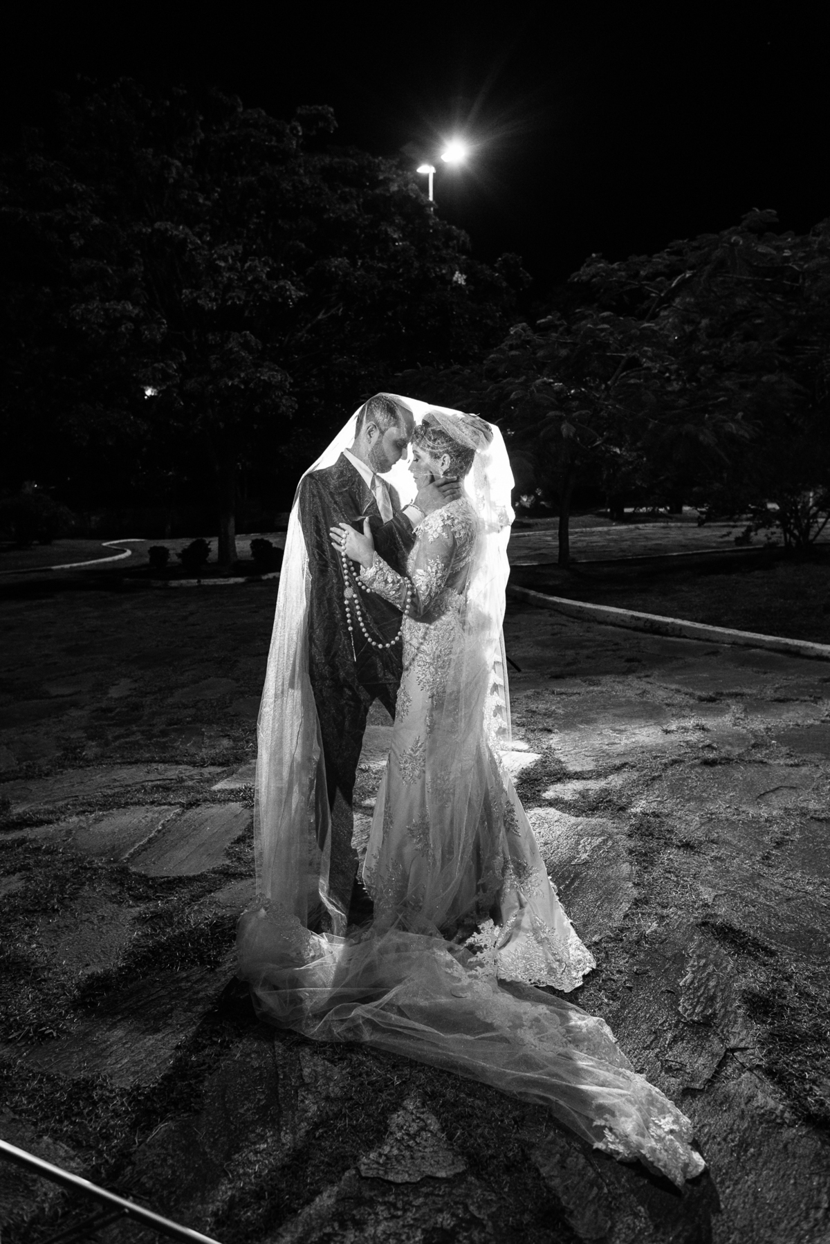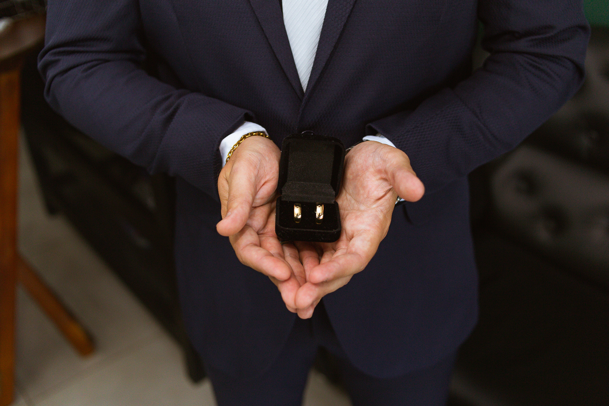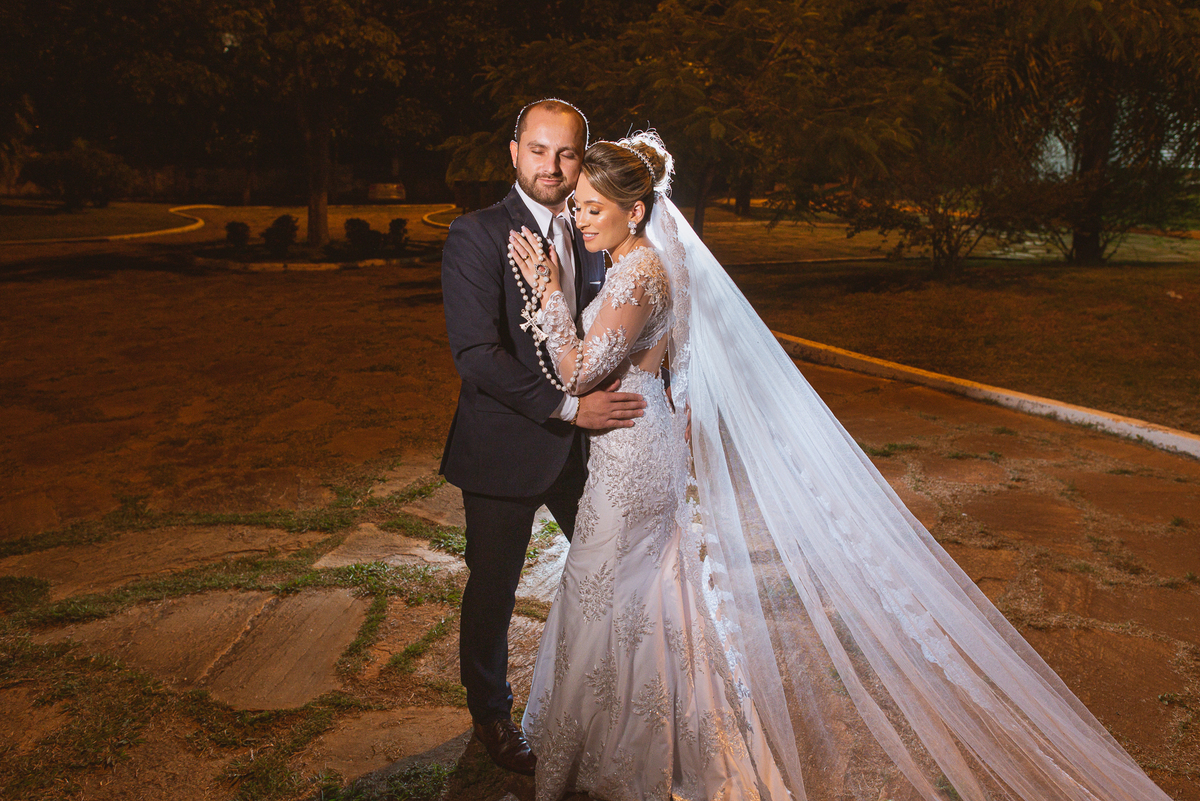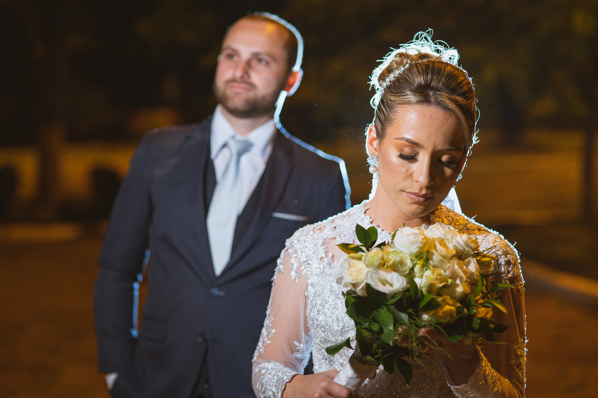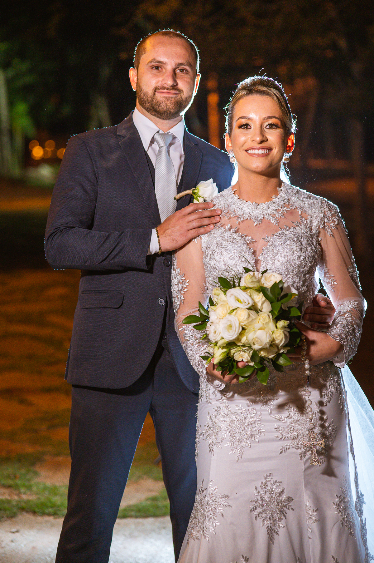 O padre realizou uma cerimônia repleta de momentos divertidos em que os noivos sorriram muito. Ao mesmo tempo, os fez relembrar da fé e de sempre rezarem juntos. Fez questão também de fazer os noivos pedir a bênção e agradecer aos seus pais e aos sogros. Um momento bem divertido foi quando o avô do noivo, do alto dos seus 96 anos de idade, me cutucou com a bengala e me disse: "Esse menino ai é meu neto." Achei tão bonitinho da parte dele. Fazer questão de mostrar o quanto estava feliz com aquele momento. Enfim, os noivos foram abençoados, declarados casados e trocaram as alianças. Após toda a celebração tivemos a saída dos noivos rumo à recepção. Do lado de fora da Igreja, os padrinhos alinhados comemoravam muito a conquista dos recém-casados.