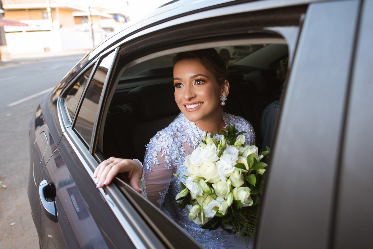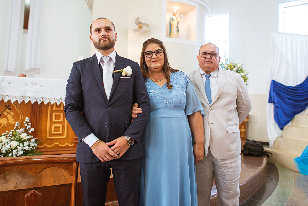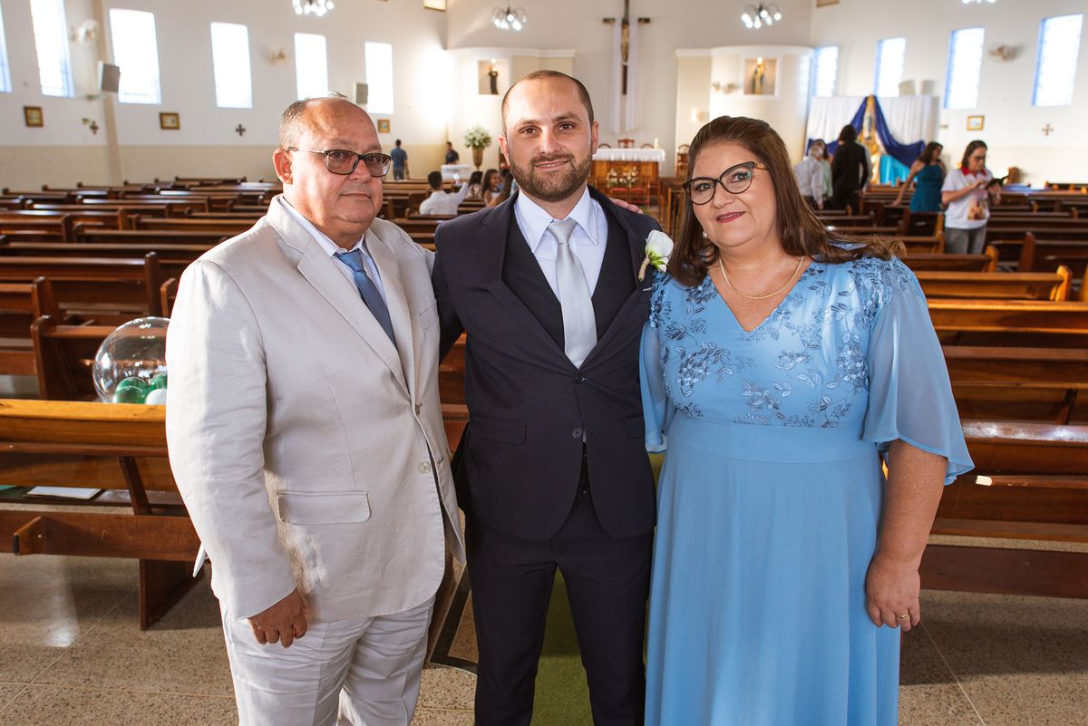 Na barbearia, Kessy também não perdeu tempo e fez todas as fotos que poderia. Brindou com os amigos, bebeu e comemorou muito com todos eles. Vestiu seu traje e ficou pronto para ir para a cerimônia. Com os minutos contados, eles partiram para a Igreja Matriz de Presidente Olegário. Na porta, Kessy recebeu os cumprimentos e carinho de todos os convidados. Estava ansioso para que a celebração se iniciasse e pudesse em fim ver sua noiva. Tudo estava pronto. O carro da noiva se posicionou na porta da Igreja e fizemos as tradicionais fotos da noiva no carro. Enfim, agora estava tudo pronto. A música já tinha começado e os padrinhos todos estavam alinhados. A cerimônia teve seu início naquele instante.