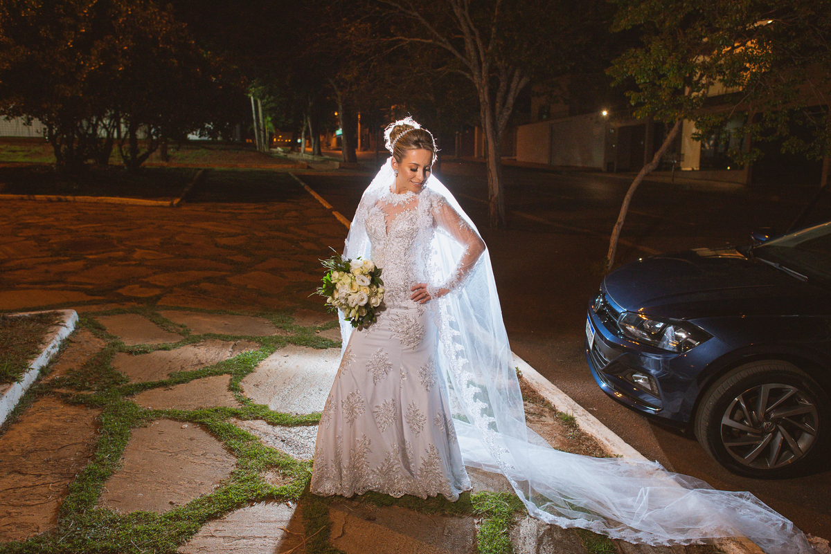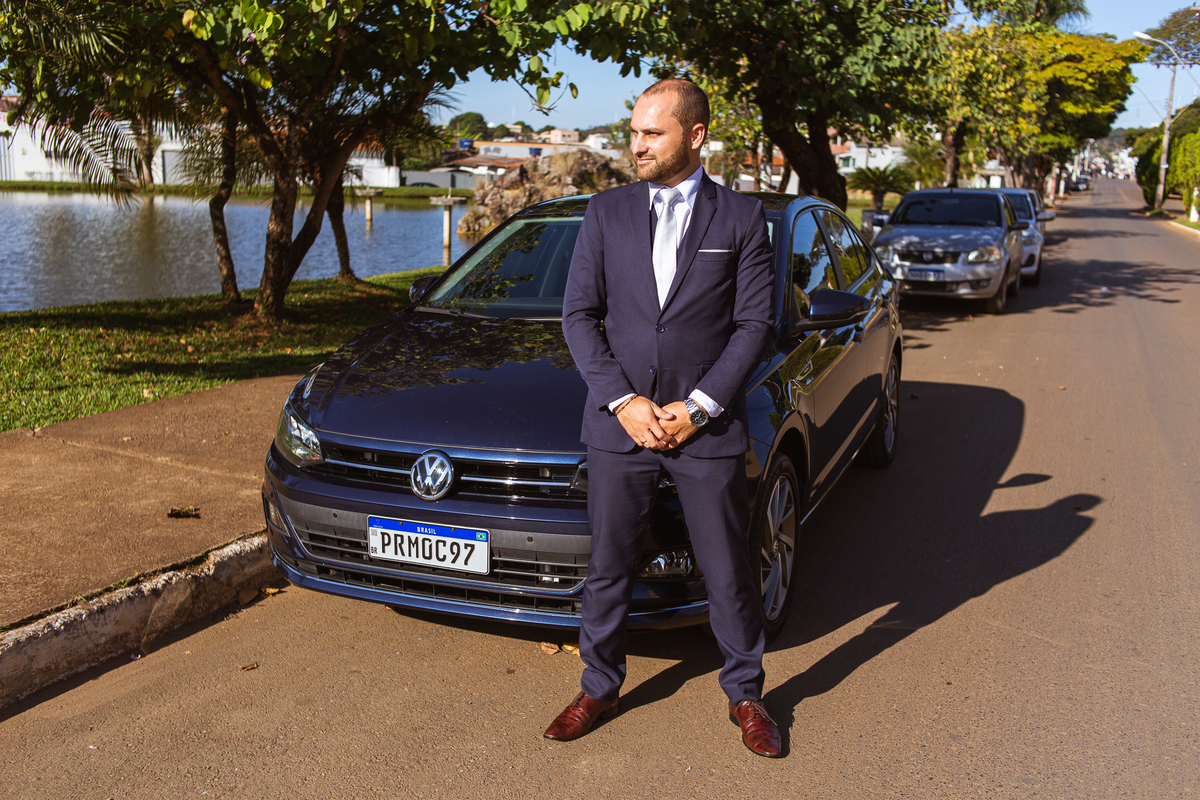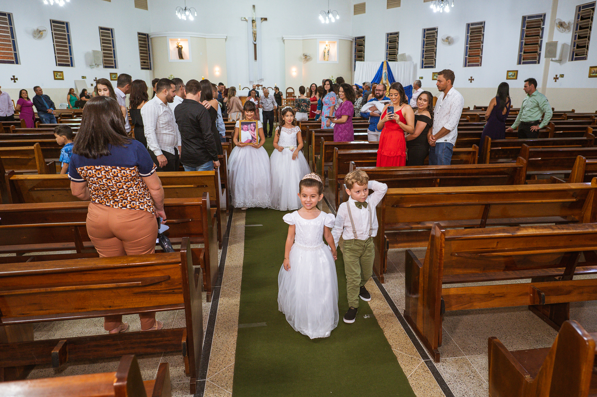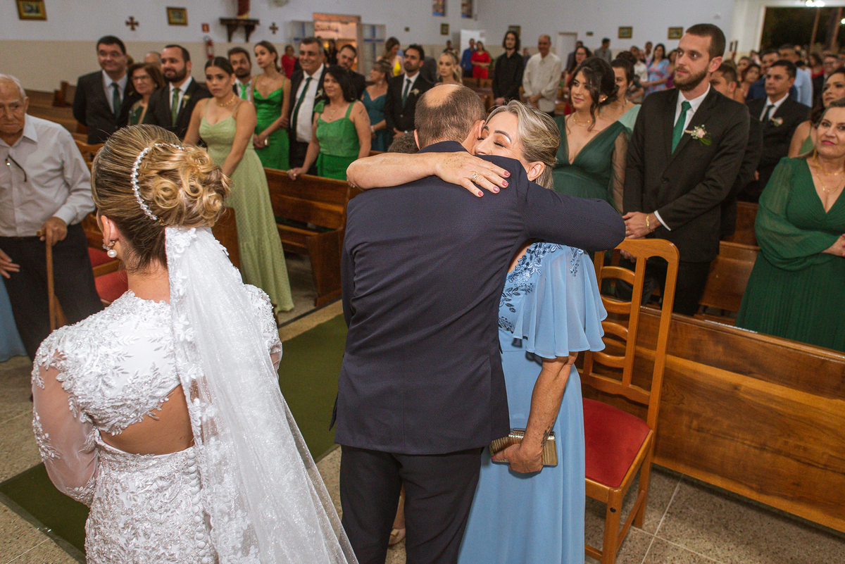 Na barbearia, Kessy também não perdeu tempo e fez todas as fotos que poderia. Brindou com os amigos, bebeu e comemorou muito com todos eles. Vestiu seu traje e ficou pronto para ir para a cerimônia. Com os minutos contados, eles partiram para a Igreja Matriz de Presidente Olegário. Na porta, Kessy recebeu os cumprimentos e carinho de todos os convidados. Estava ansioso para que a celebração se iniciasse e pudesse em fim ver sua noiva. Tudo estava pronto. O carro da noiva se posicionou na porta da Igreja e fizemos as tradicionais fotos da noiva no carro. Enfim, agora estava tudo pronto. A música já tinha começado e os padrinhos todos estavam alinhados. A cerimônia teve seu início naquele instante.