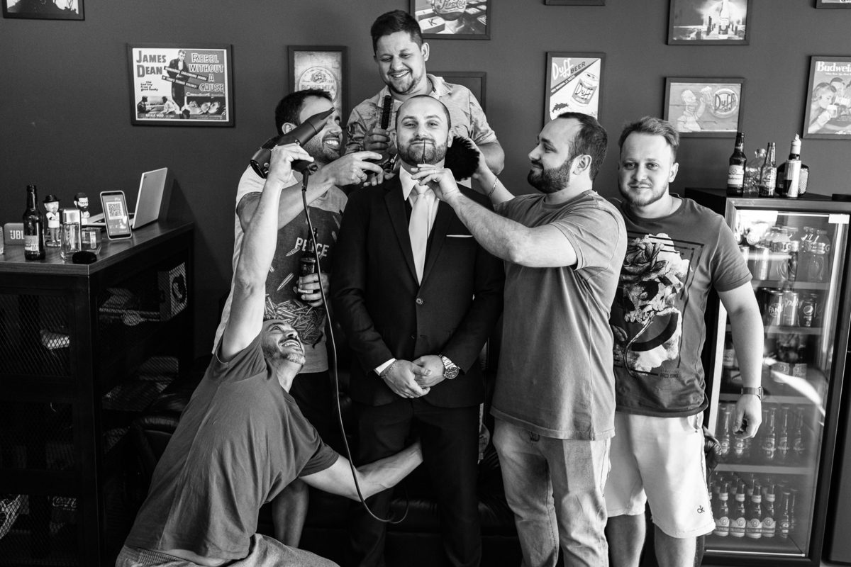 Hoje é aquele dia feliz em que eu posto uma prévia de um casamento. Os noivos ficam felizes e eu fico ainda mais com o resultado. E com o deles, Karyna e Kessy não seria diferente. Nós fomos contratados para registrar esse casamento na cidade de Presidente Olegário - MG. Chegando na barbearia onde o noivo estava, tinha uma farra acontecendo. Como assim Lizandro? Sim, os padrinhos e amigos do noivo estavam todos reunidos na maior comemoração. Kessy, claro, estava junto com eles curtindo. Já no salão onde a noiva estava, o clima era de paz. Karyna estava toda plena e maravilhosa, recebendo todos os cuidados para realçar sua beleza.
