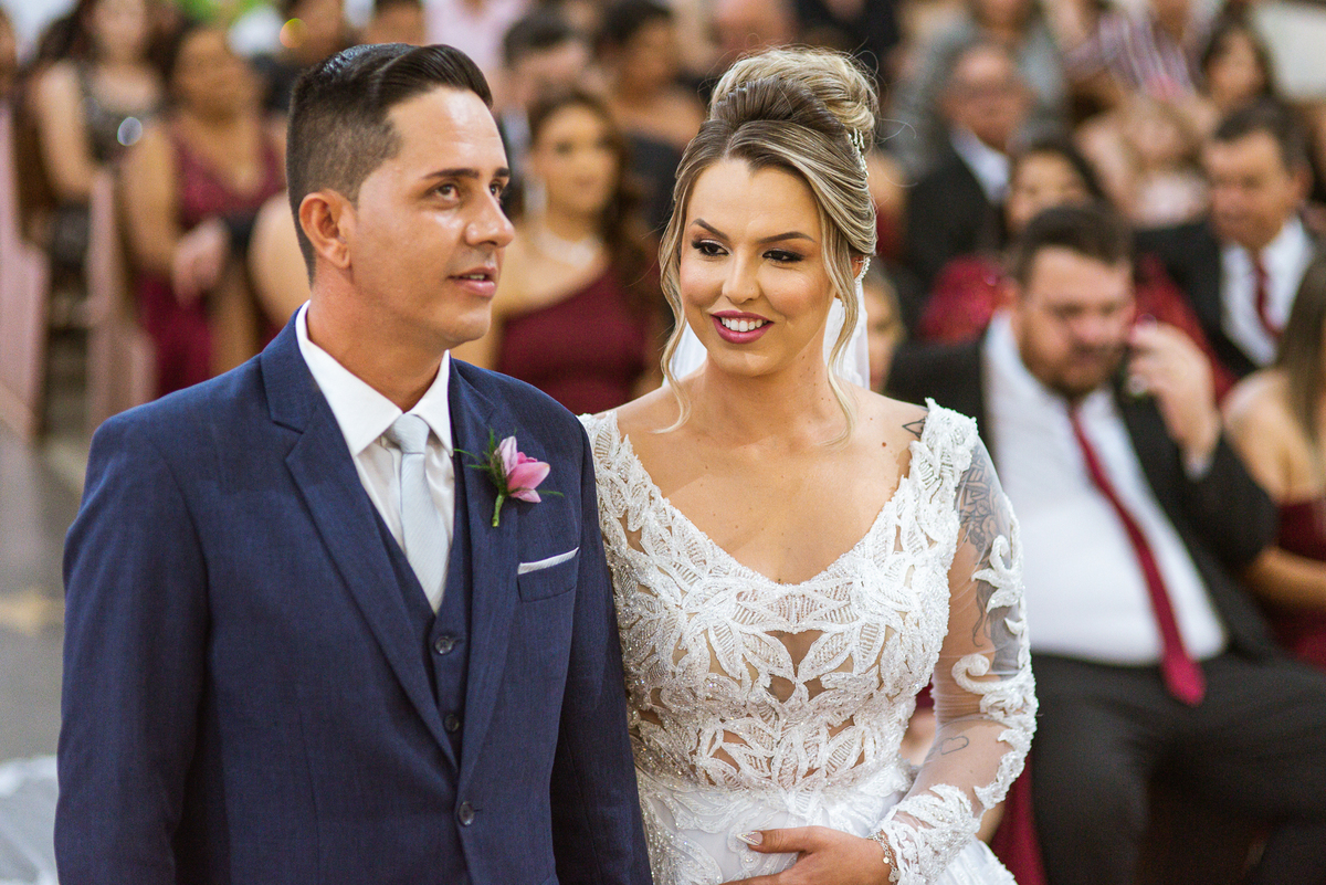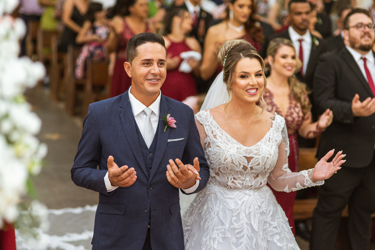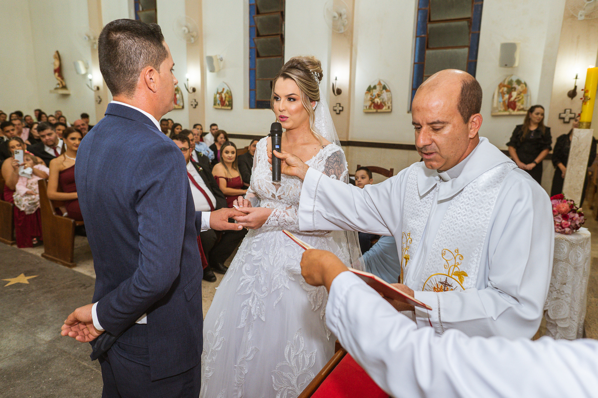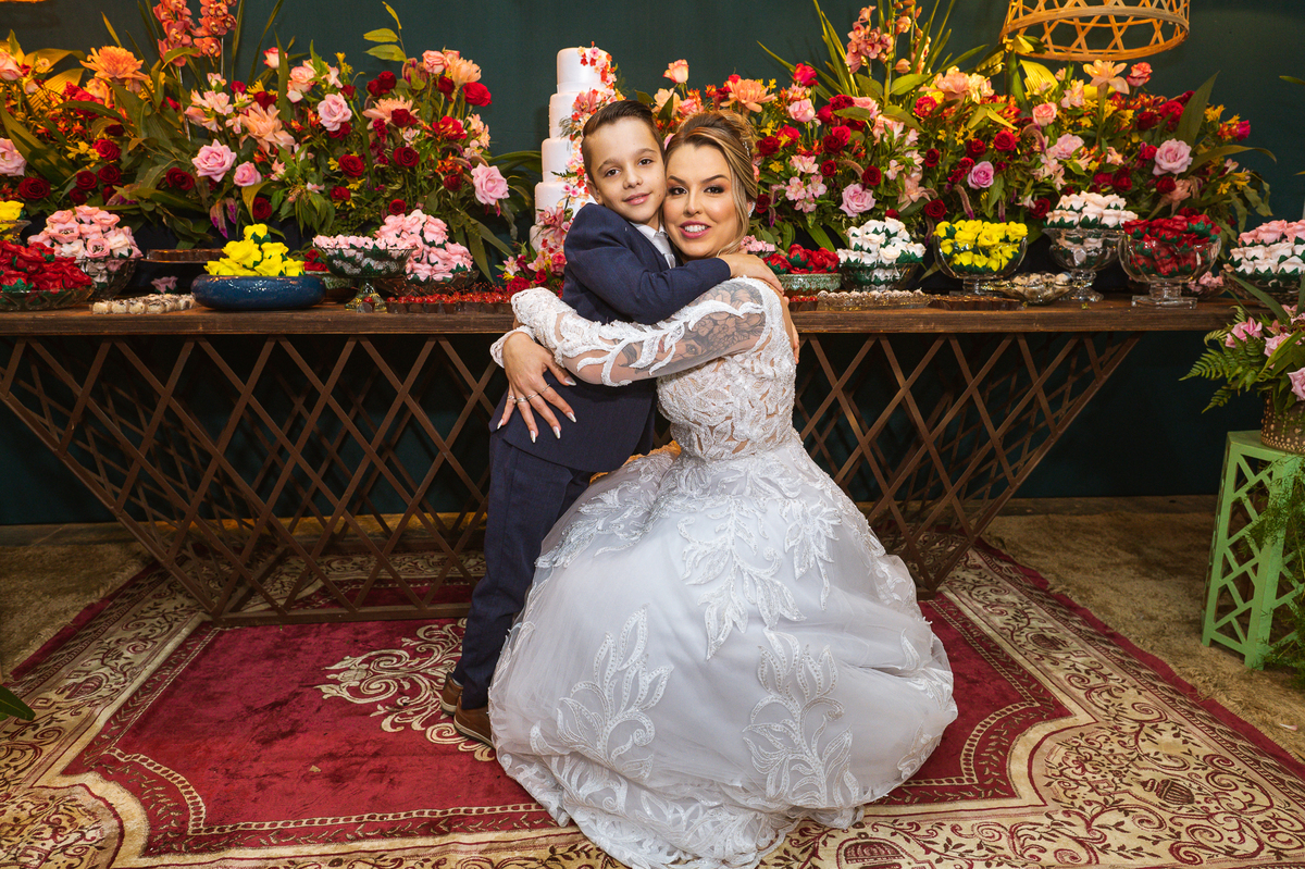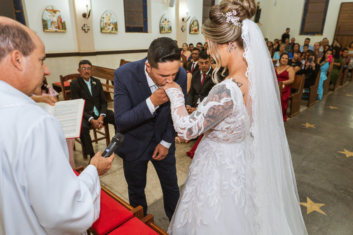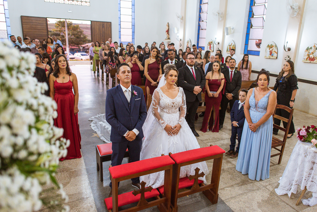 Bruna, agora de mãos dadas com seu filho, caminhou rumo ao encontro do seu noivo. Os dois caminharam lentamente, desfilando e curtindo aquele momento super especial. Agora, frente a frente com Edwards, ele fez questão de cumprimentar seu enteado, despedir-se dele e só depois receber a mão de sua noiva. Após um beijo respeitoso na testa, os dois caminharam juntinhos rumo ao altar, para receber ali a bênção de Deus sobre o casamento dos dois. A celebração foi rápida e edificante. Os noivos fizeram seus votos e juras de amor, tiveram as alianças abençoadas e também foram abençoados, trocaram as alianças e foram declarados casados perante Deus e as testemunhas que ali estavam.