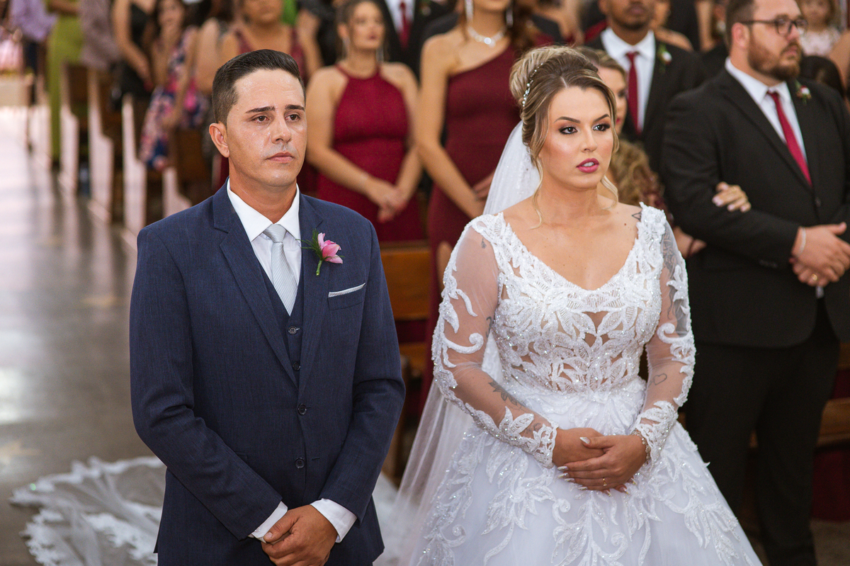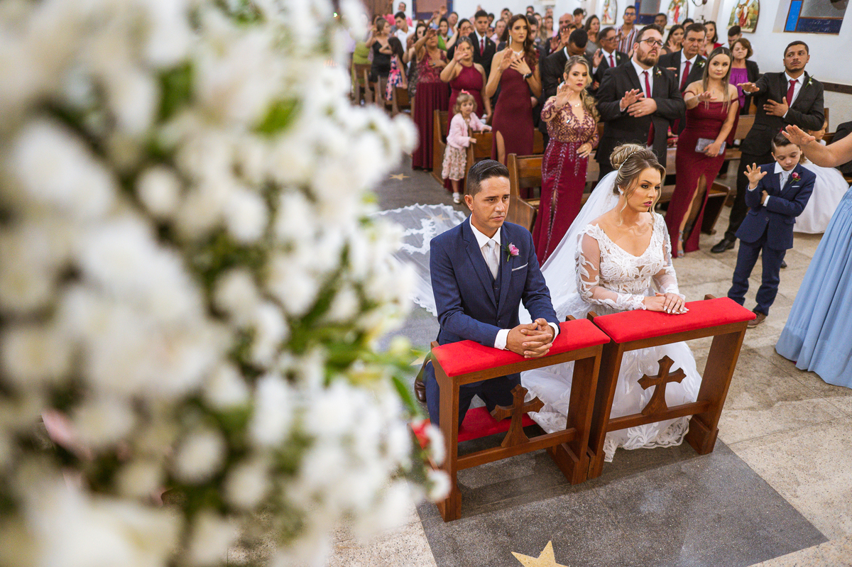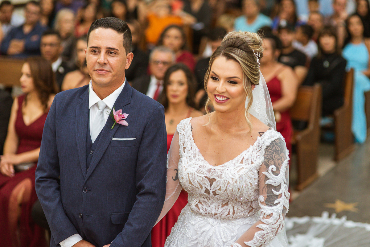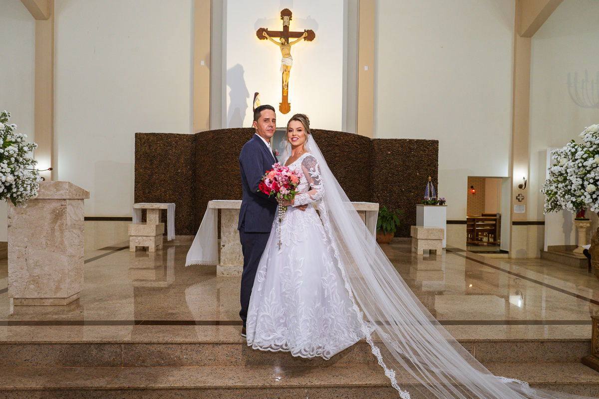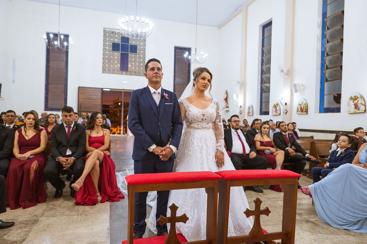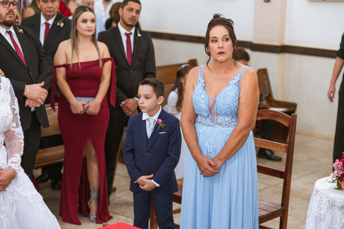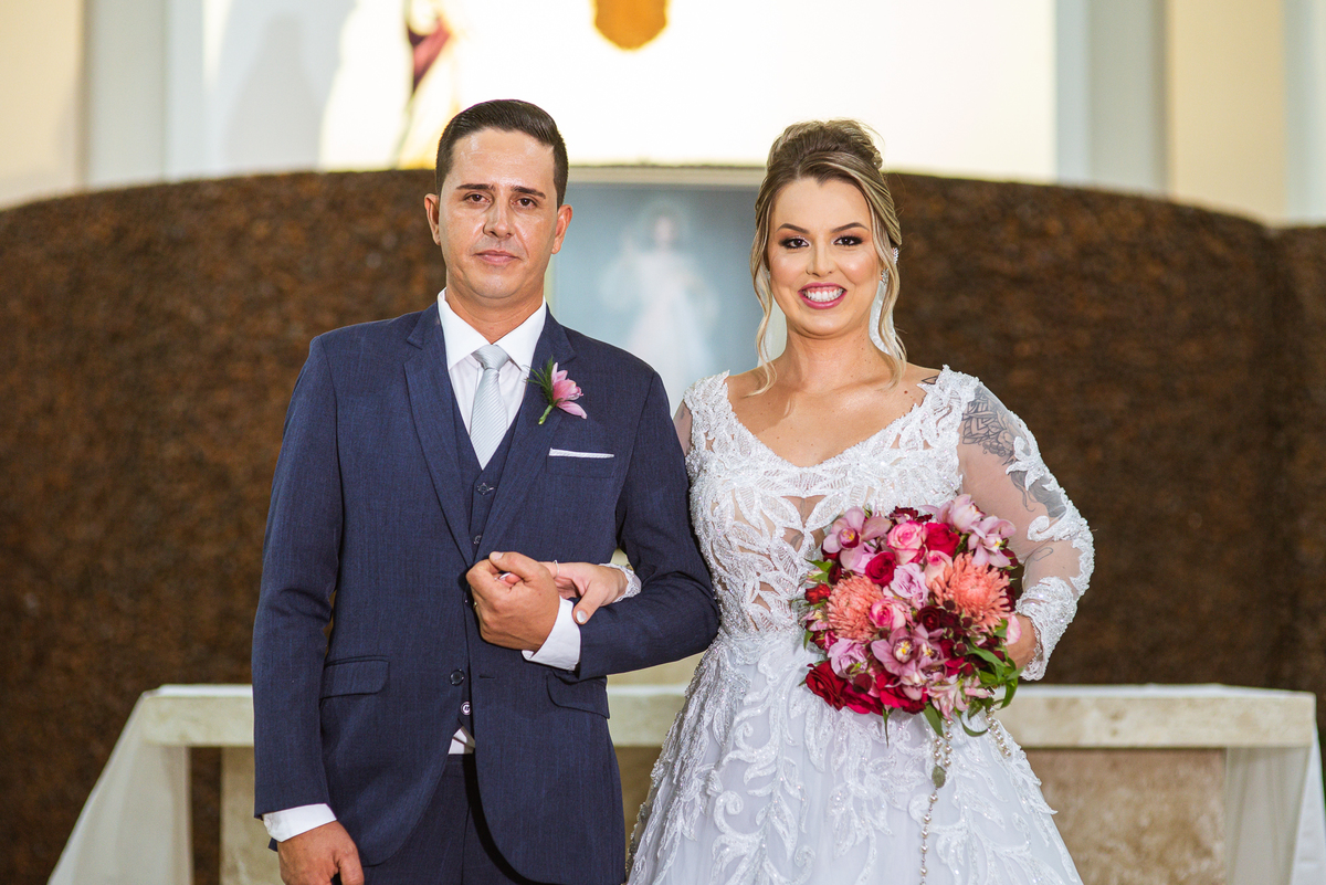 Bruna, agora de mãos dadas com seu filho, caminhou rumo ao encontro do seu noivo. Os dois caminharam lentamente, desfilando e curtindo aquele momento super especial. Agora, frente a frente com Edwards, ele fez questão de cumprimentar seu enteado, despedir-se dele e só depois receber a mão de sua noiva. Após um beijo respeitoso na testa, os dois caminharam juntinhos rumo ao altar, para receber ali a bênção de Deus sobre o casamento dos dois. A celebração foi rápida e edificante. Os noivos fizeram seus votos e juras de amor, tiveram as alianças abençoadas e também foram abençoados, trocaram as alianças e foram declarados casados perante Deus e as testemunhas que ali estavam.