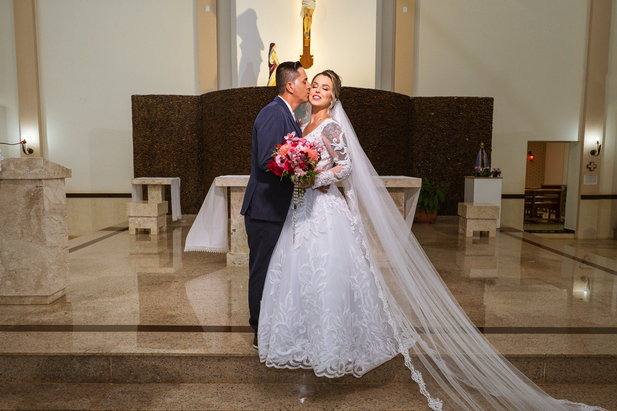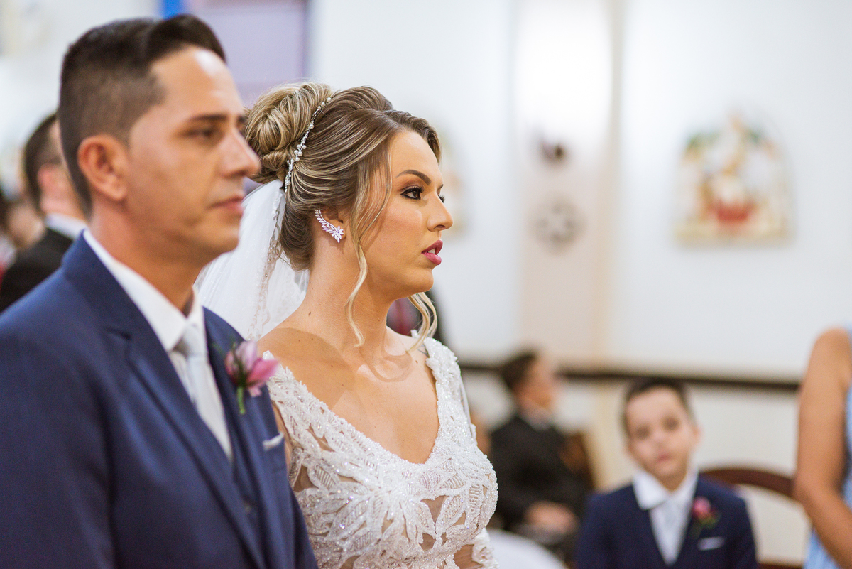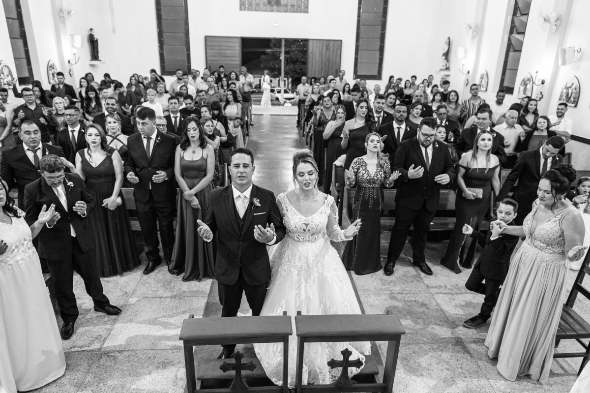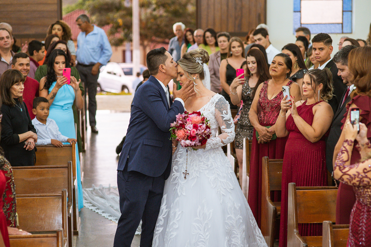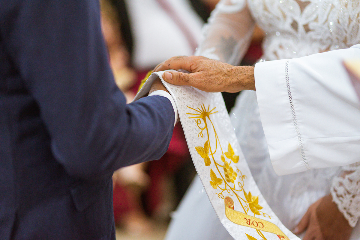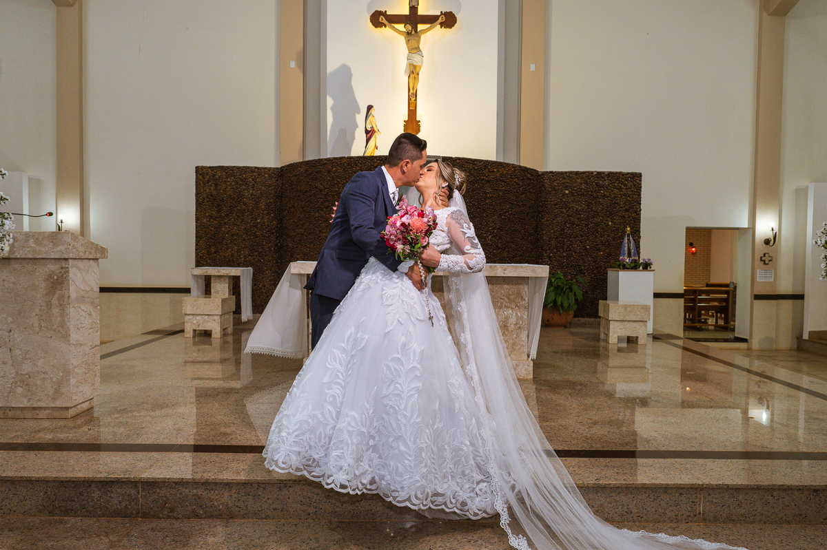 Bruna, agora de mãos dadas com seu filho, caminhou rumo ao encontro do seu noivo. Os dois caminharam lentamente, desfilando e curtindo aquele momento super especial. Agora, frente a frente com Edwards, ele fez questão de cumprimentar seu enteado, despedir-se dele e só depois receber a mão de sua noiva. Após um beijo respeitoso na testa, os dois caminharam juntinhos rumo ao altar, para receber ali a bênção de Deus sobre o casamento dos dois. A celebração foi rápida e edificante. Os noivos fizeram seus votos e juras de amor, tiveram as alianças abençoadas e também foram abençoados, trocaram as alianças e foram declarados casados perante Deus e as testemunhas que ali estavam.